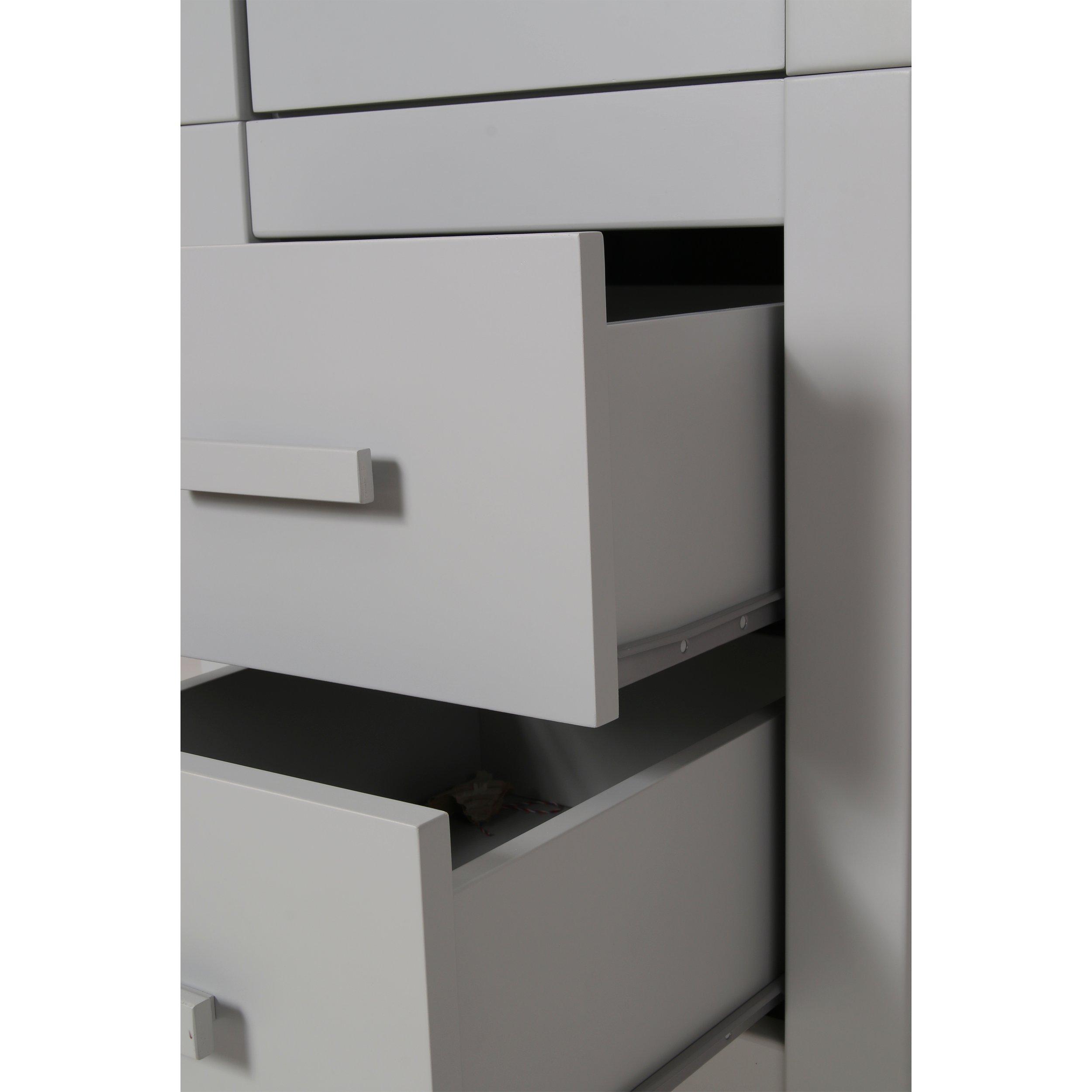 This classically styled wardrobe is made from solid beech with contemporary grey finish.