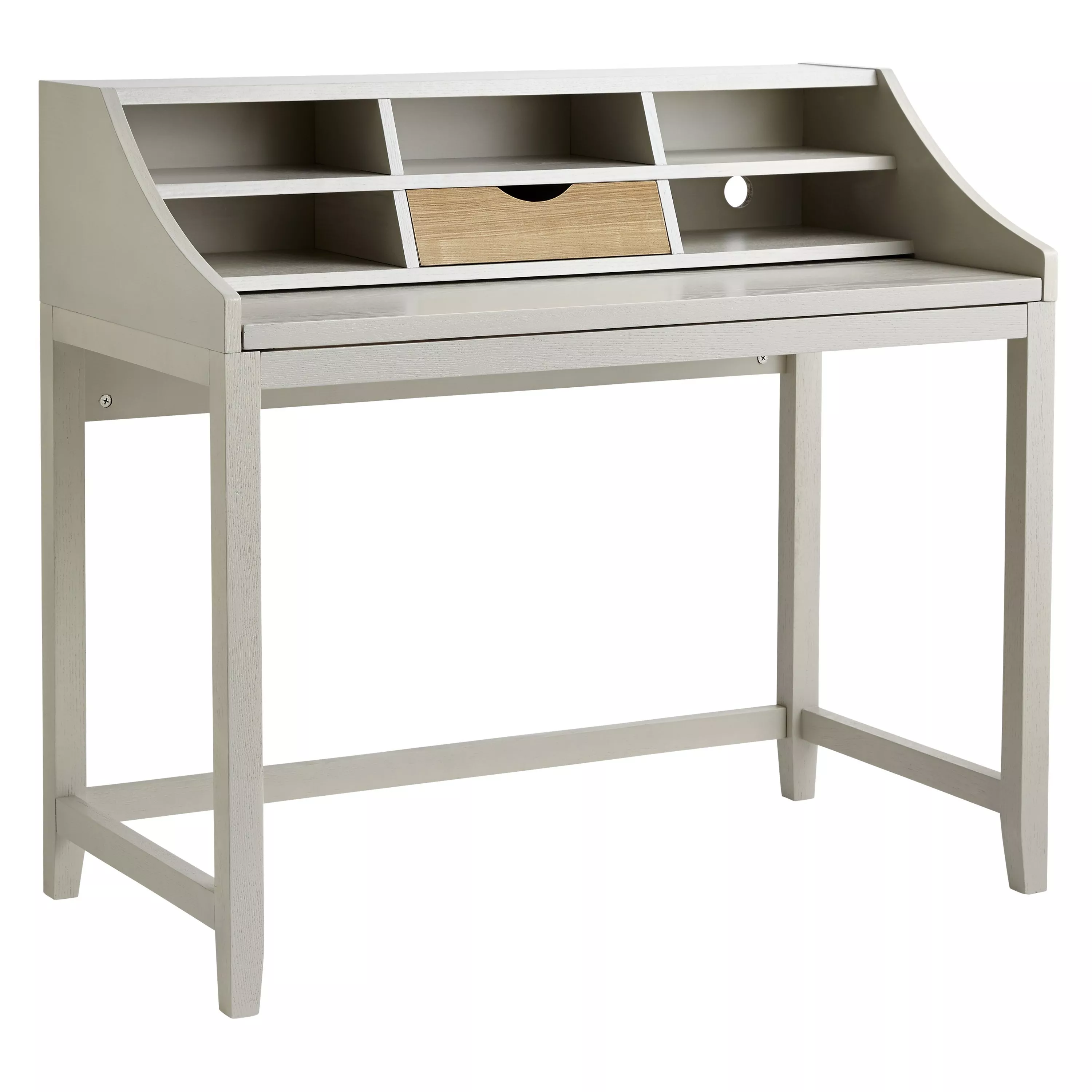 This practical desk fits neatly into any home office. Made from painted ash wood, it's designed with organised compartments to keep your work space clutter free and a hole at the back ensures that computer cables can be kept in order.