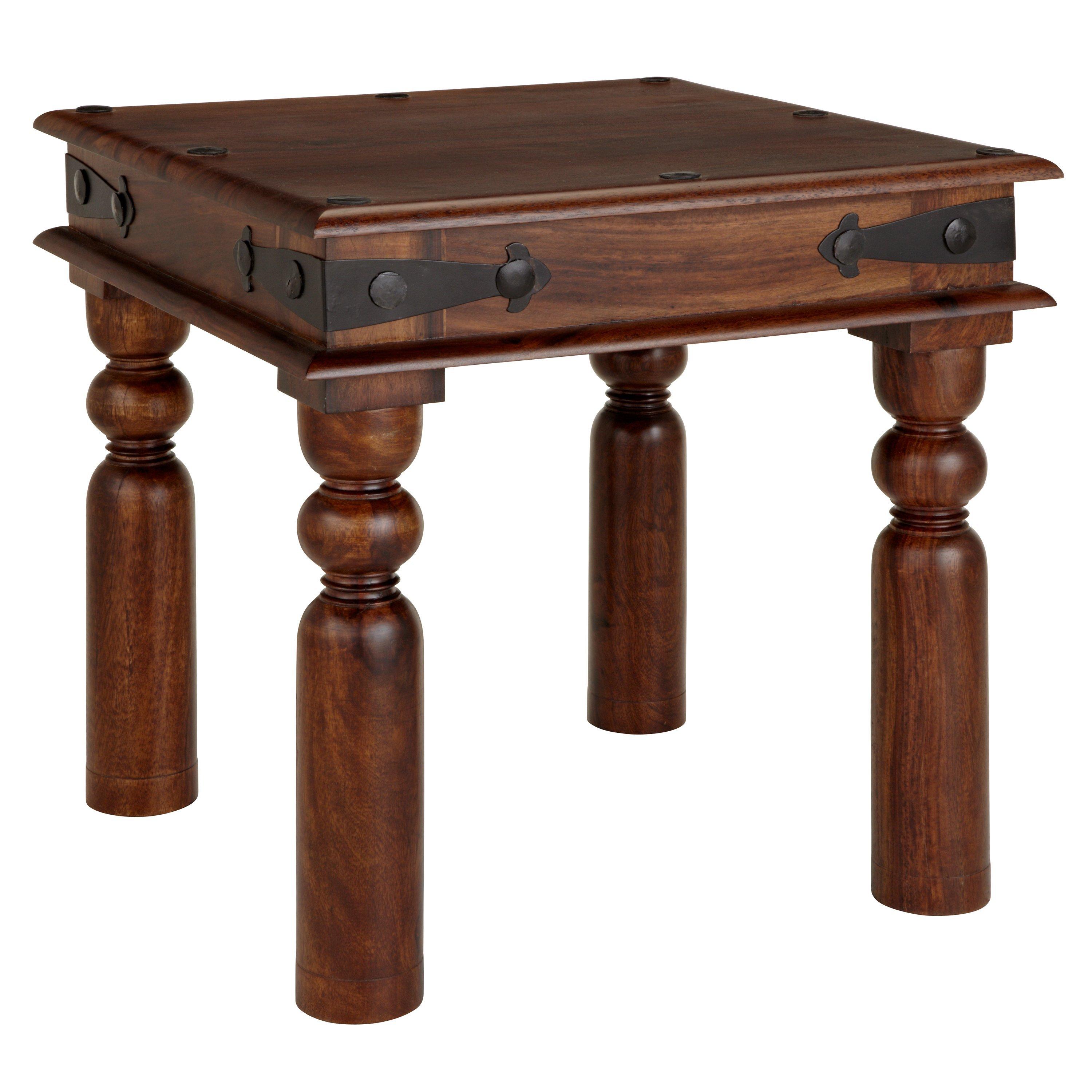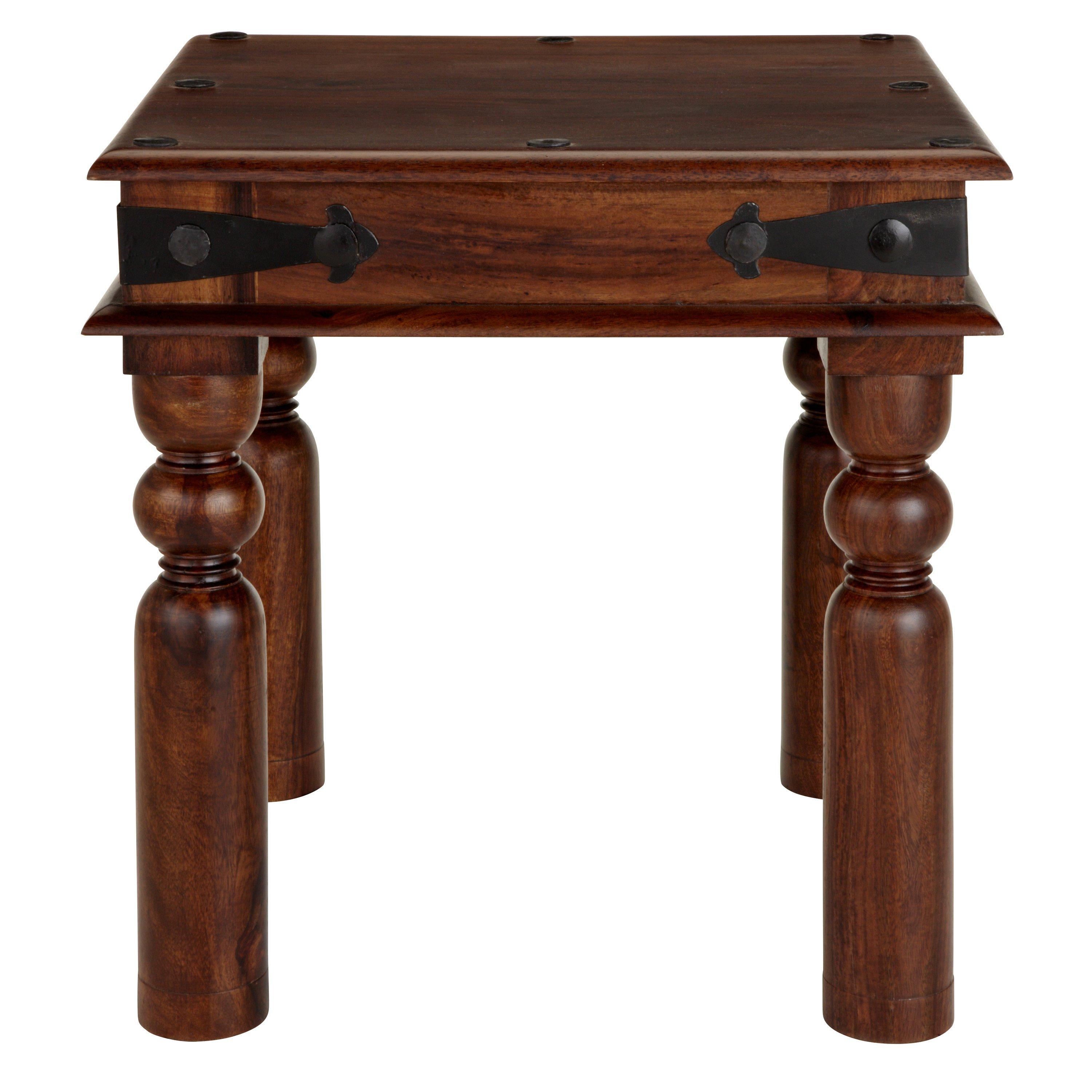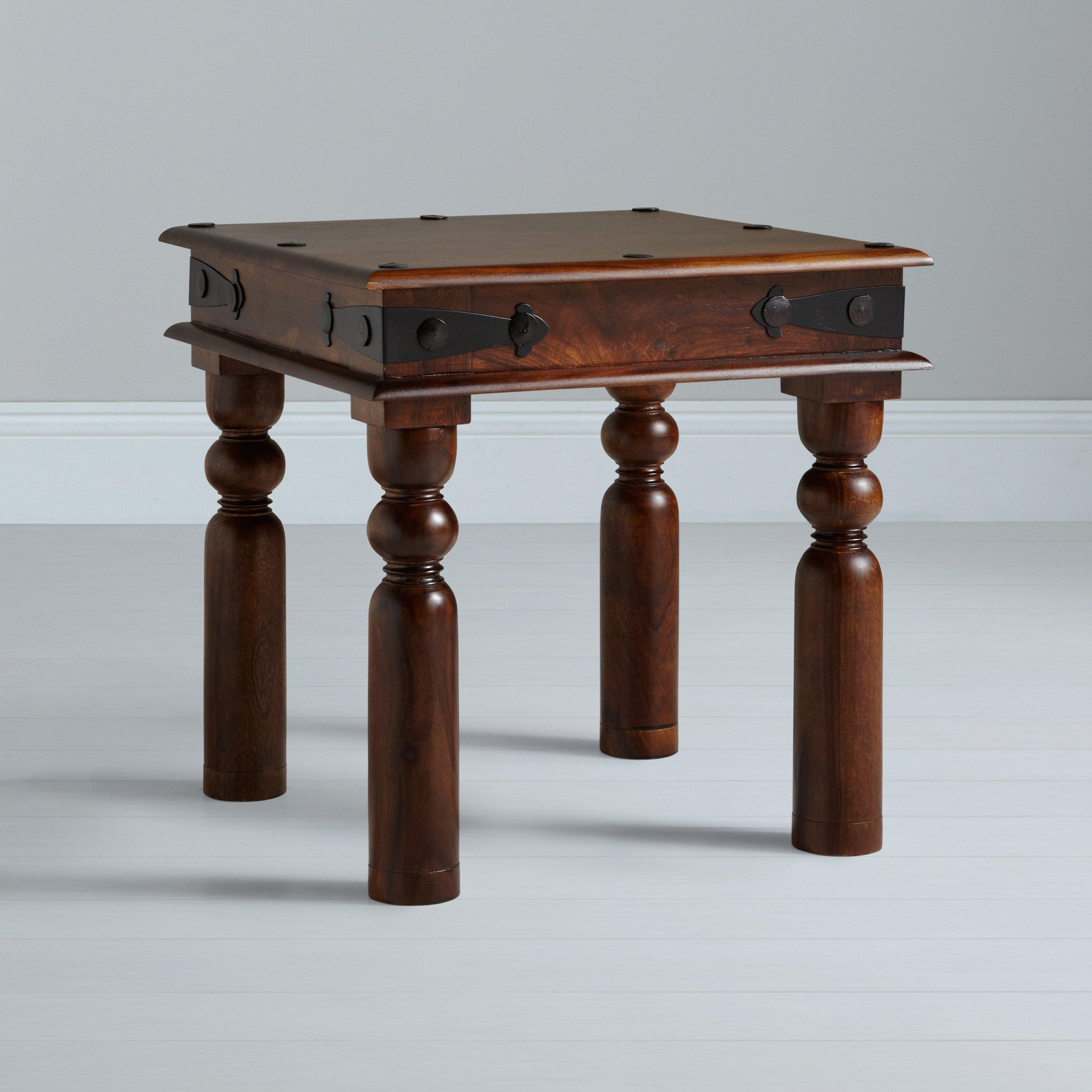Solid lamp table, part of the Maharani range of furniture. Based on traditional Indian Thakat styling and combining quality sheesham wood and iron fittings for a look that betters with age.