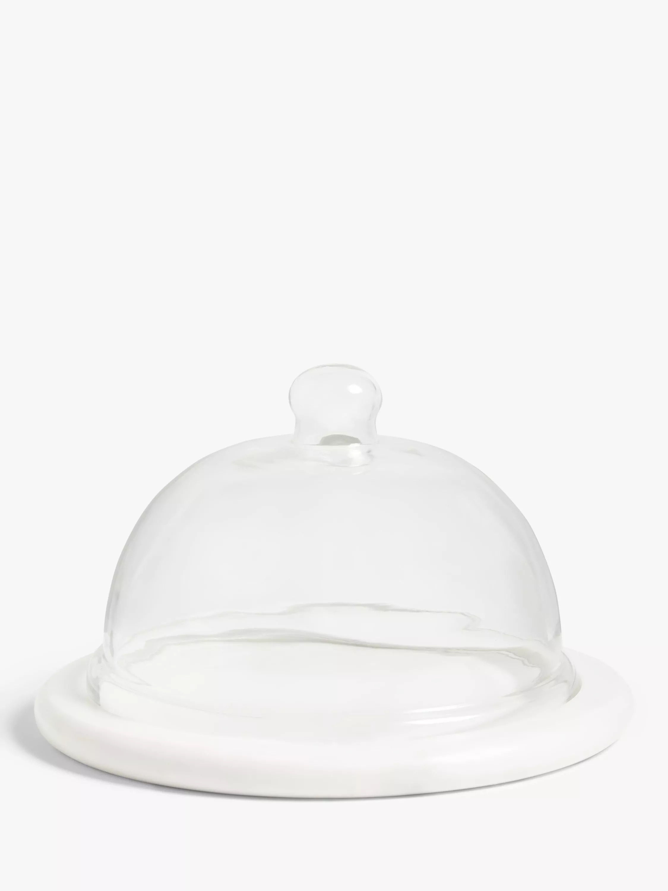 John Lewis & Partners Marble & Glass Cheese Dome, 29cm, White/Clear