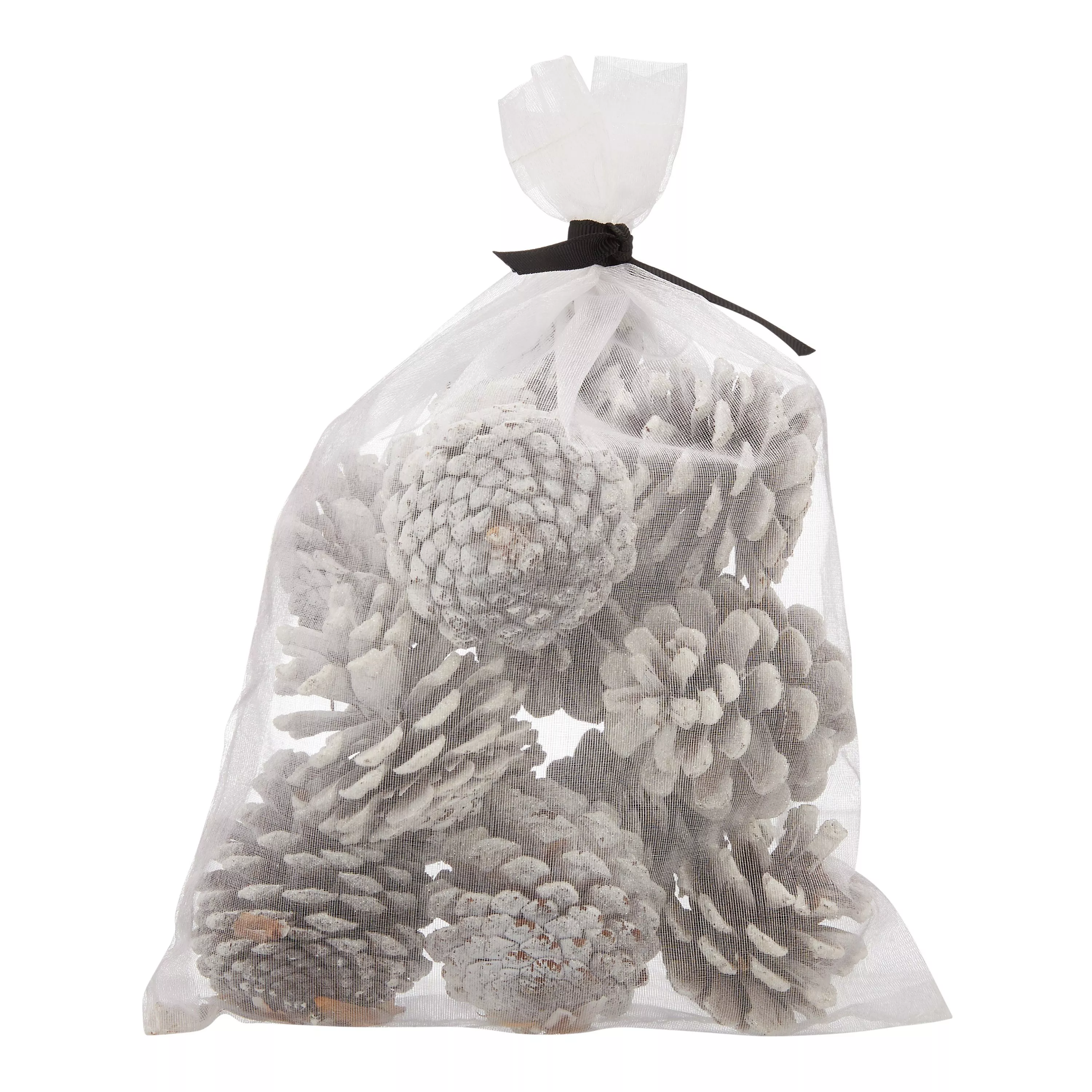 Lend a festive feel to your home with this bag of pinecones in a wintry finish.