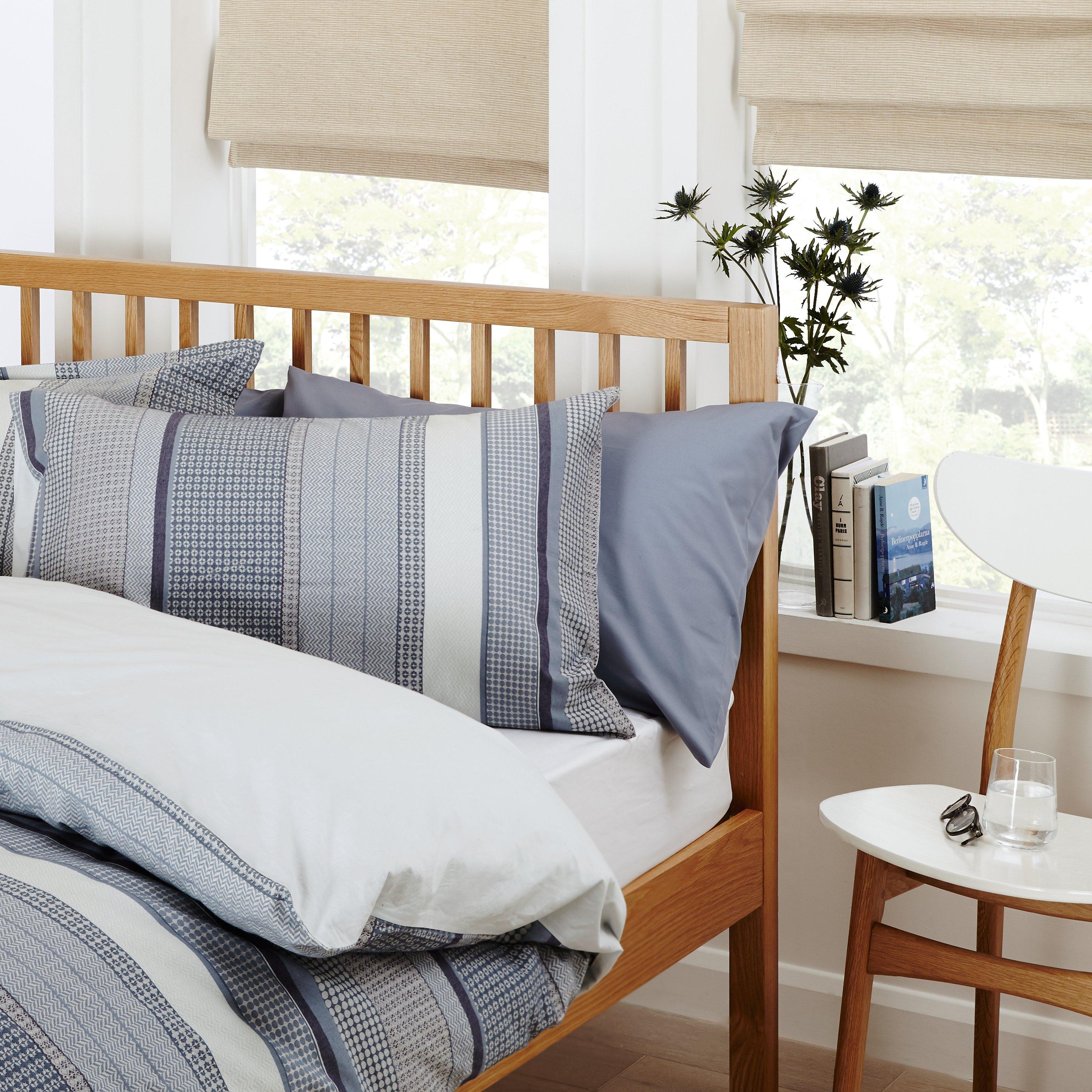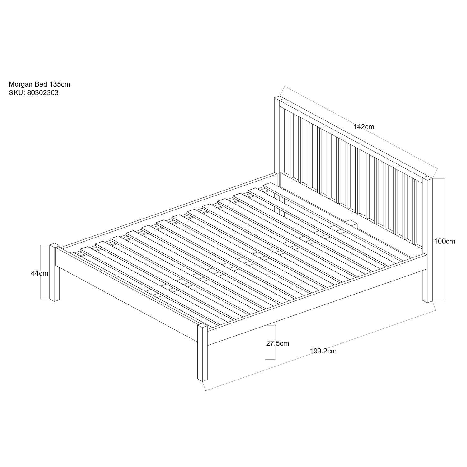 The Morgan bedstead is made from solid oak, which offers both its durability and beautiful grain to create a visually impressive finish. Its clean lines and modern look are complemented by a square slatted headboard, which helps to make a statement in any bedroom. The static pine slat system provides support for your mattress, helping you work towards a comfortable night's sleep.