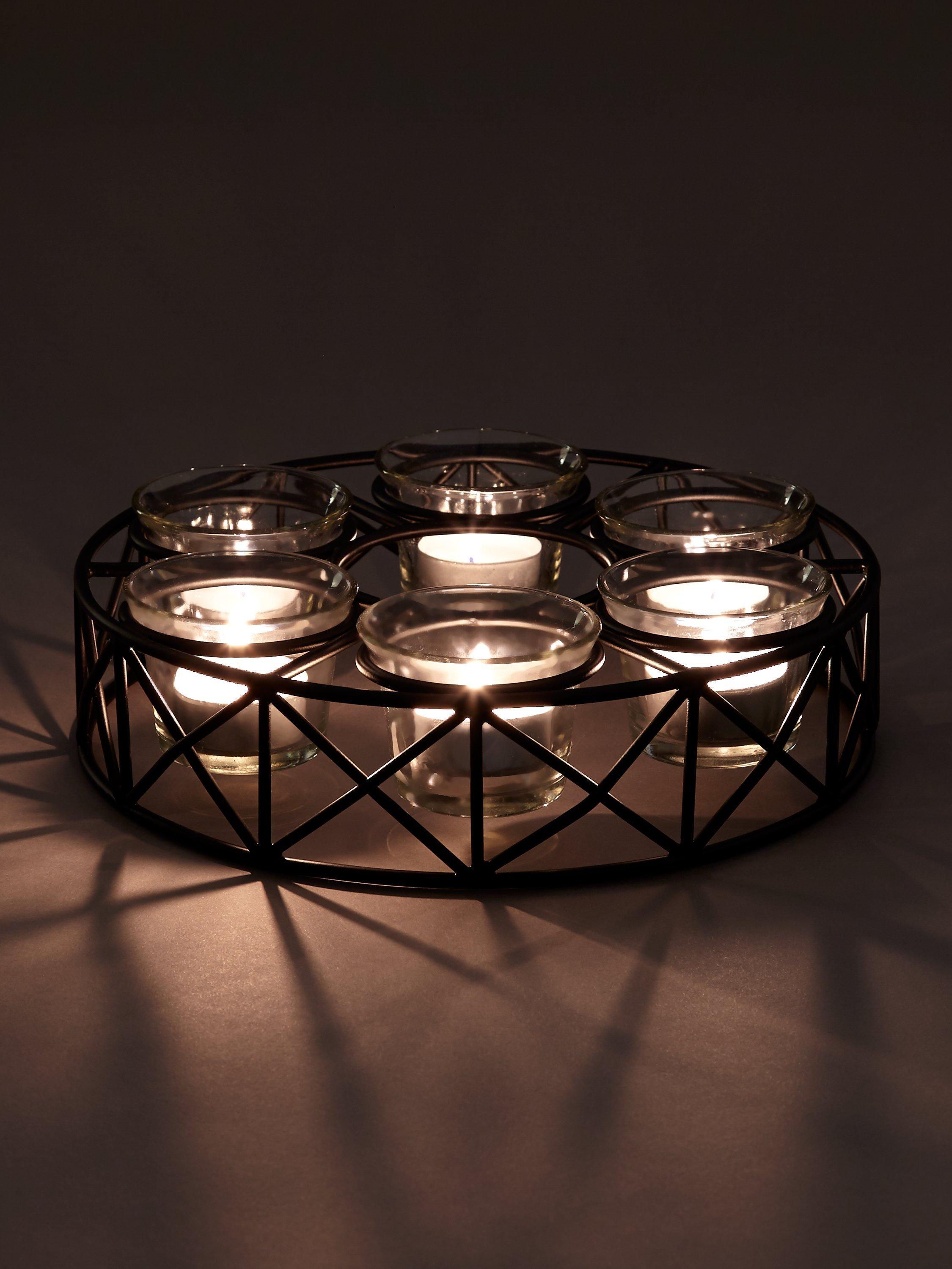 This handy black tealight holder is the perfect garden accessory. It fits neatly around your garden parasol, perfect when entertaining during long summer evenings.
