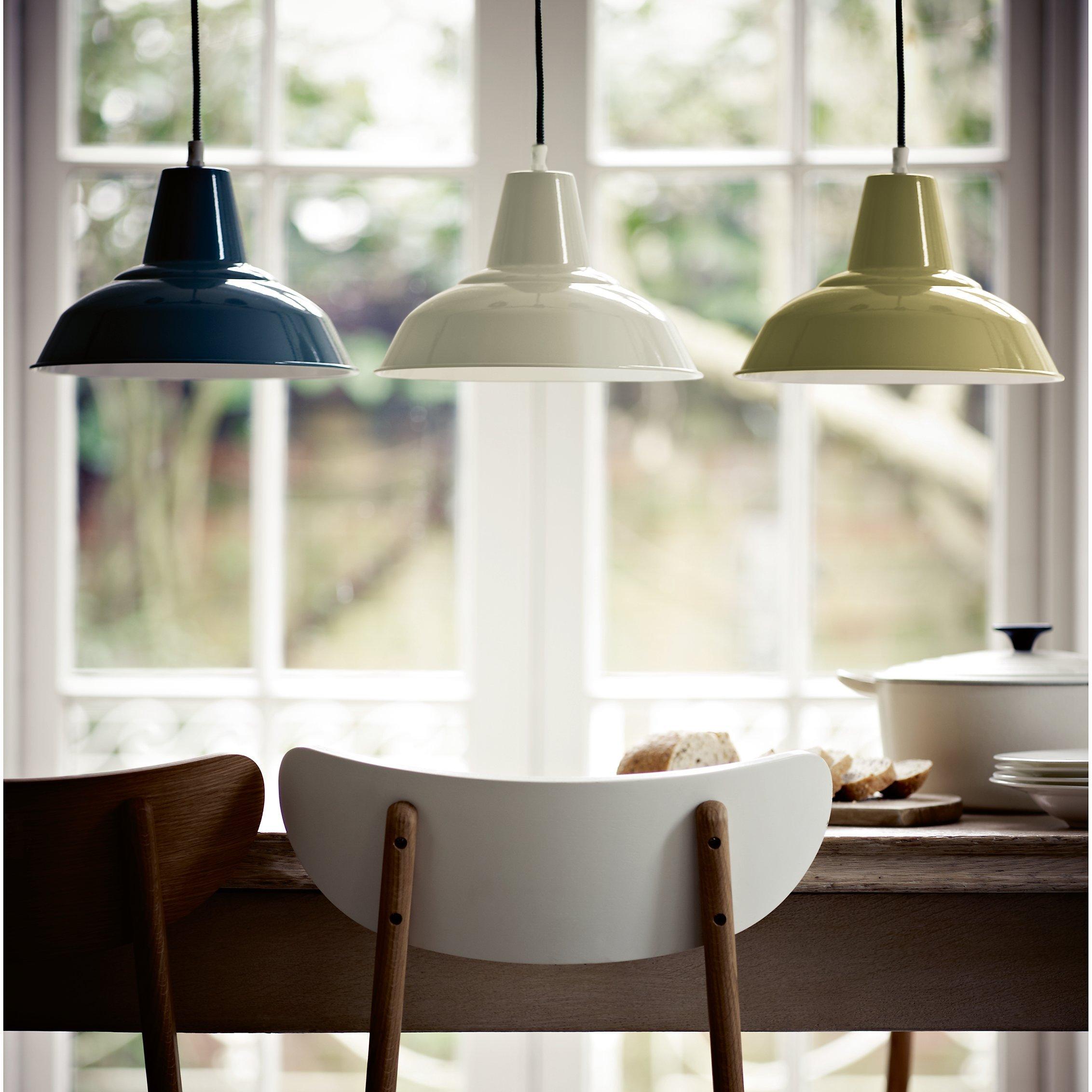 This timless light is brought to life by its pastel colour. Painted in white on the inside, it features a braided fabric flex and an adjustable drop.