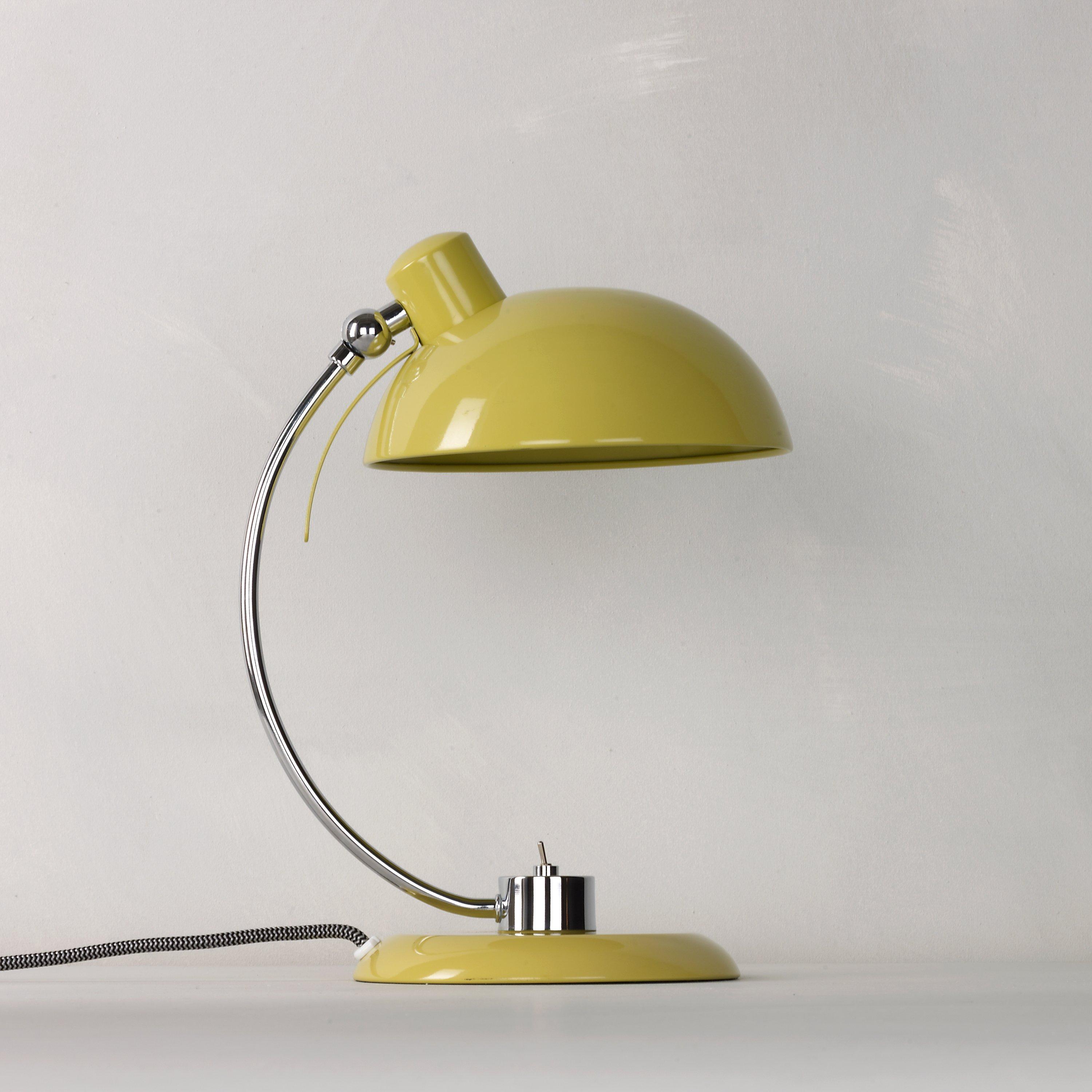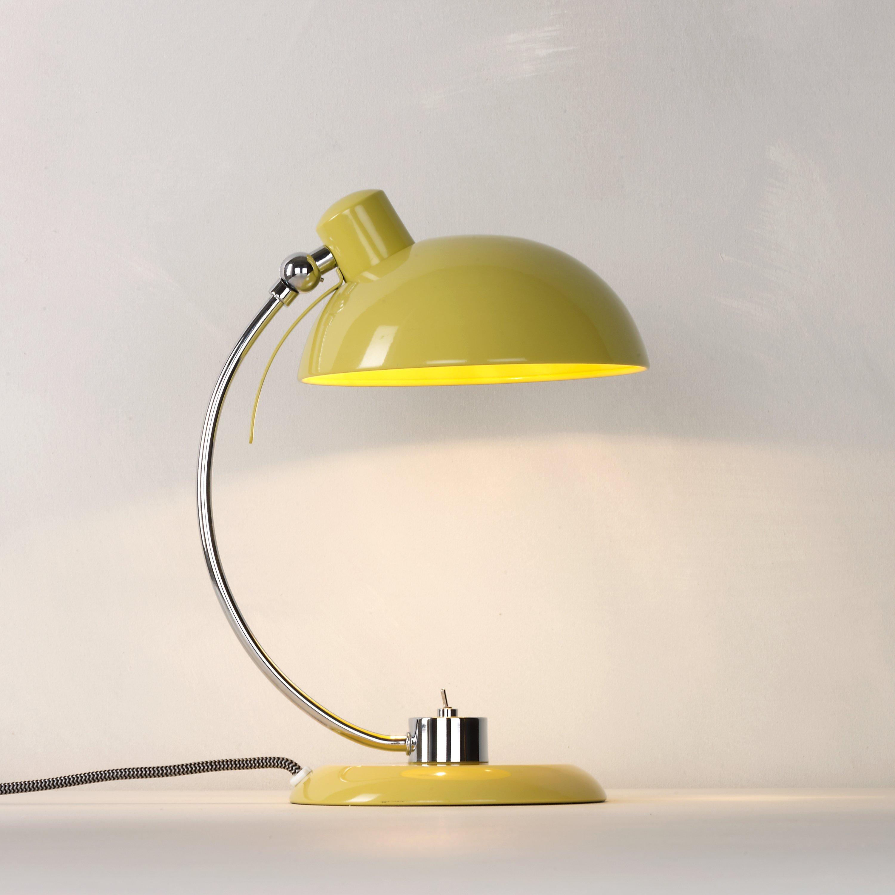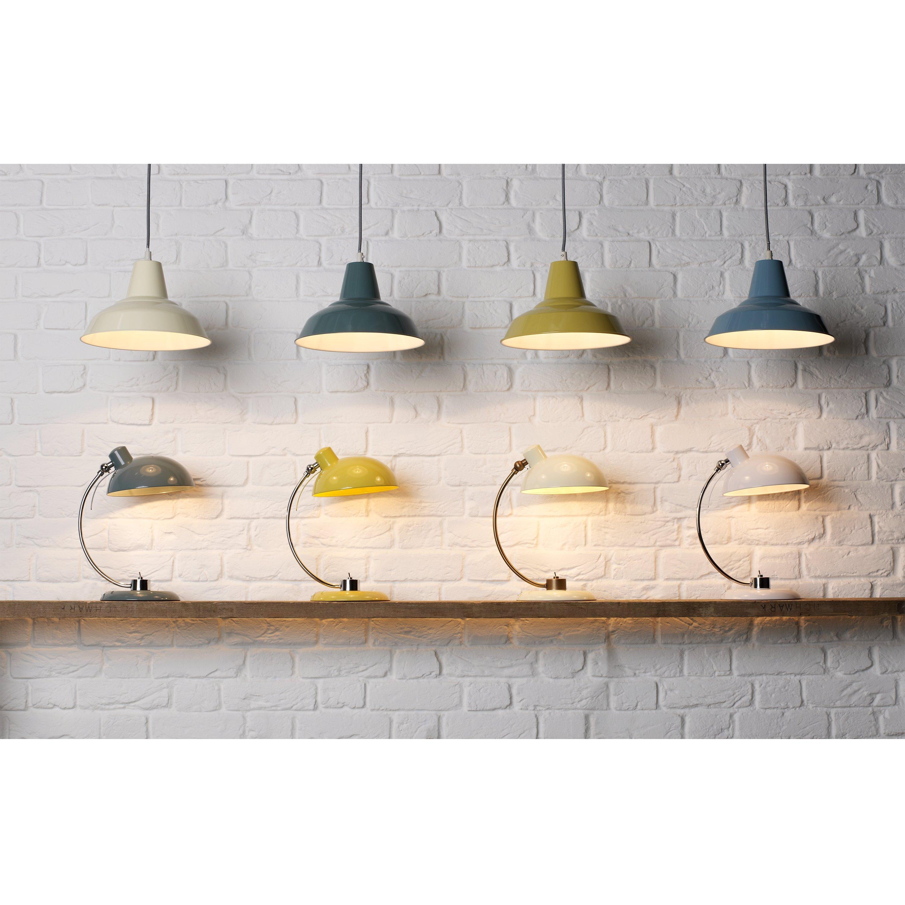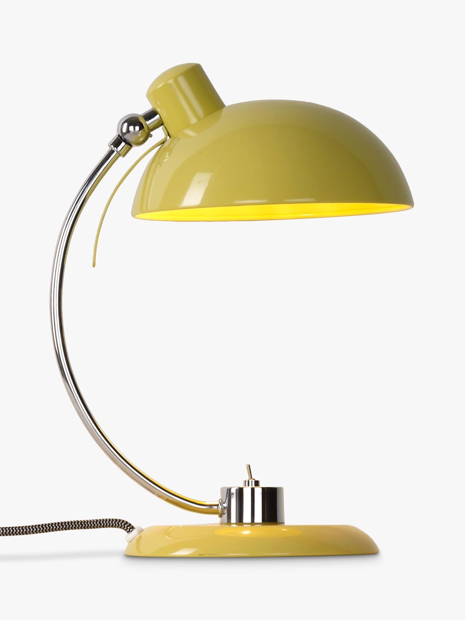 A retro take on a table lamp, this lamp features a curved metal stem which joins the metal shade head to the sturdy base.