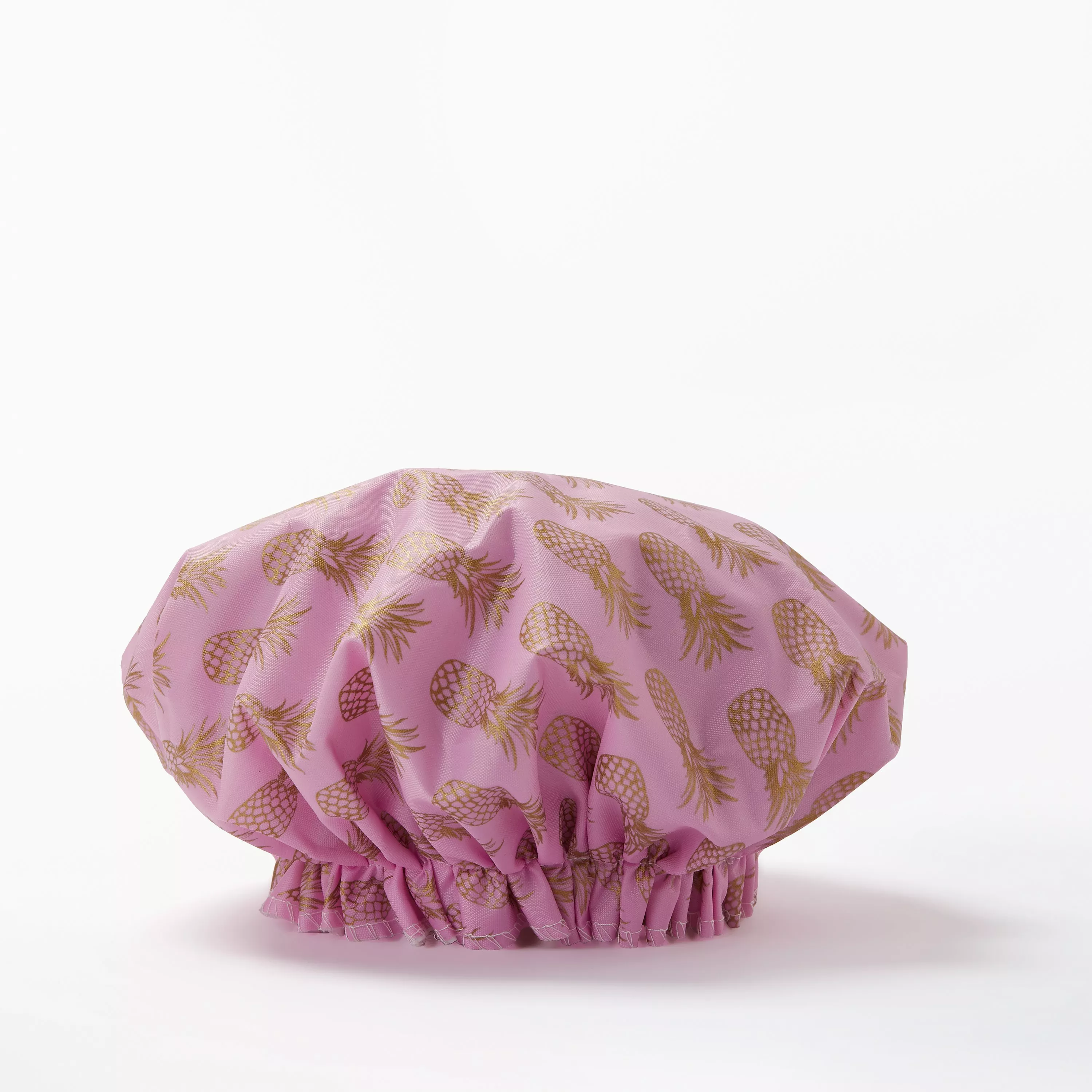 Shower in style with this pineapple print shower cap. Made from nylon, it protects hair from moisture, maintaining a fresh blowout or up-do for an extra few days. The elastic band wears comfortably and securely on the head, keeping hair in place.
