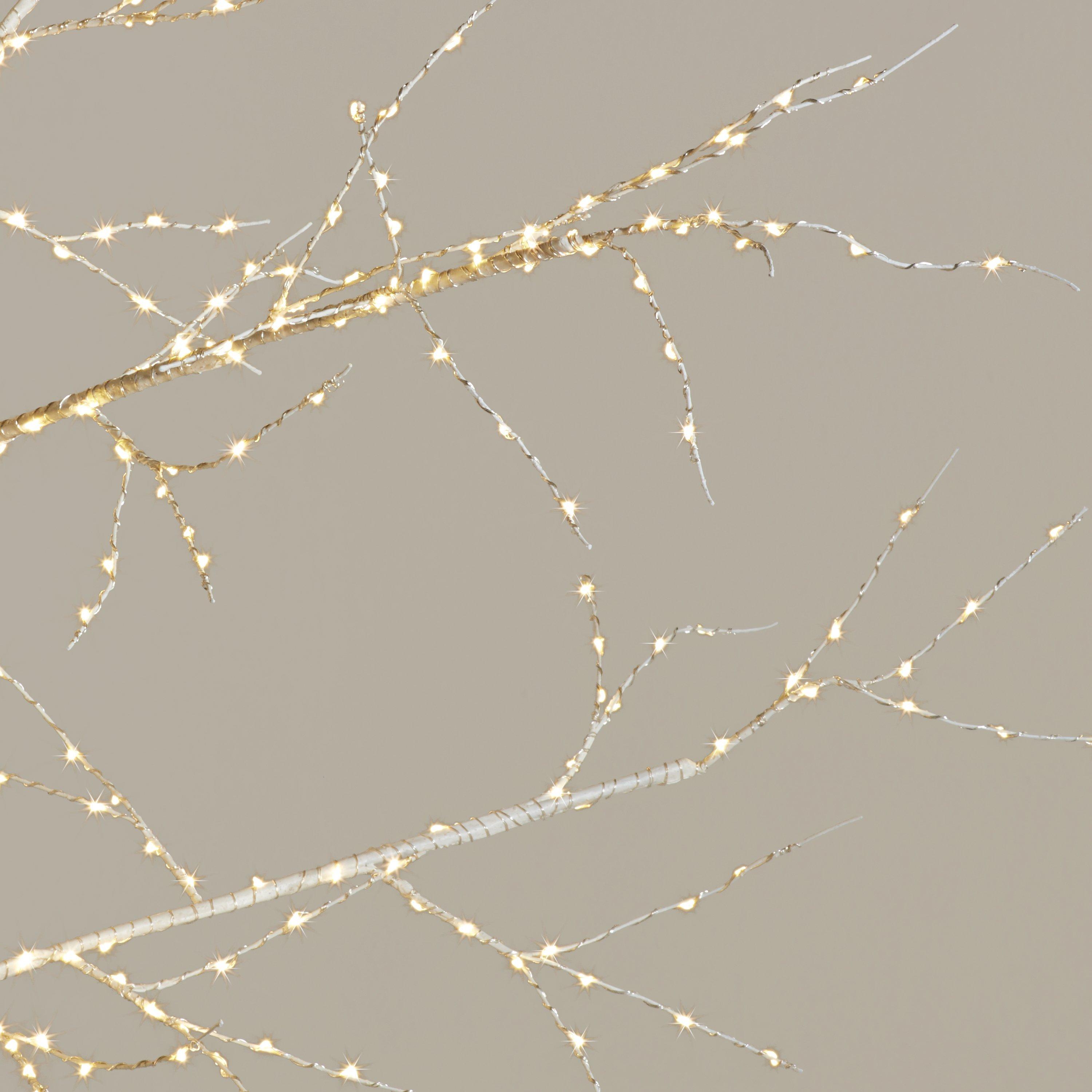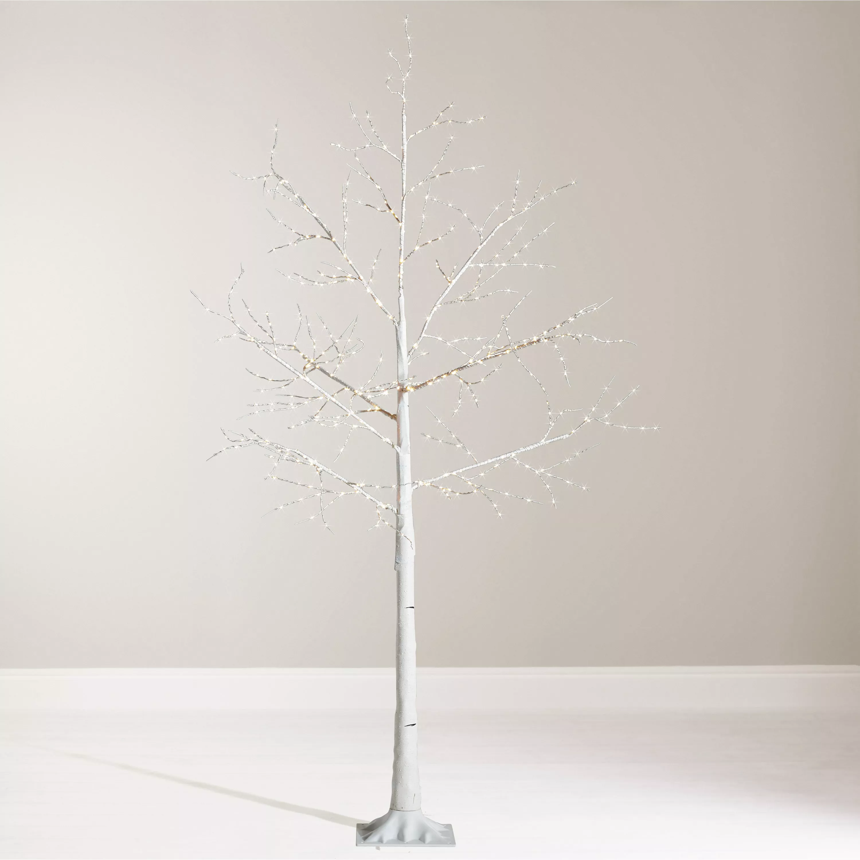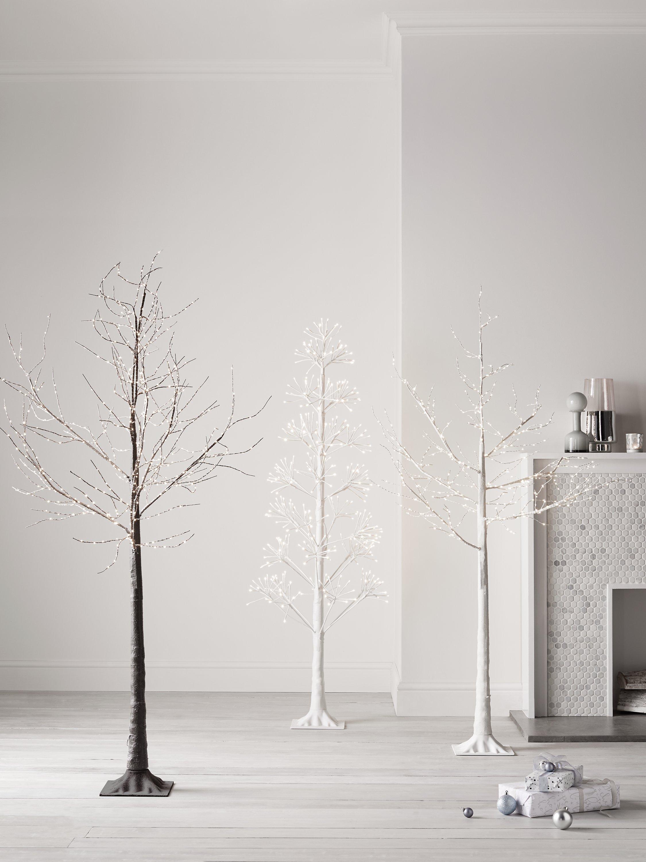 A contemporary artificial white or brown birch tree, pre-lit with 600 pure white micro LEDs on a silver wire on the white tree, or copper wire on the brown tree. Simple to set up, just "tweak" the branches.