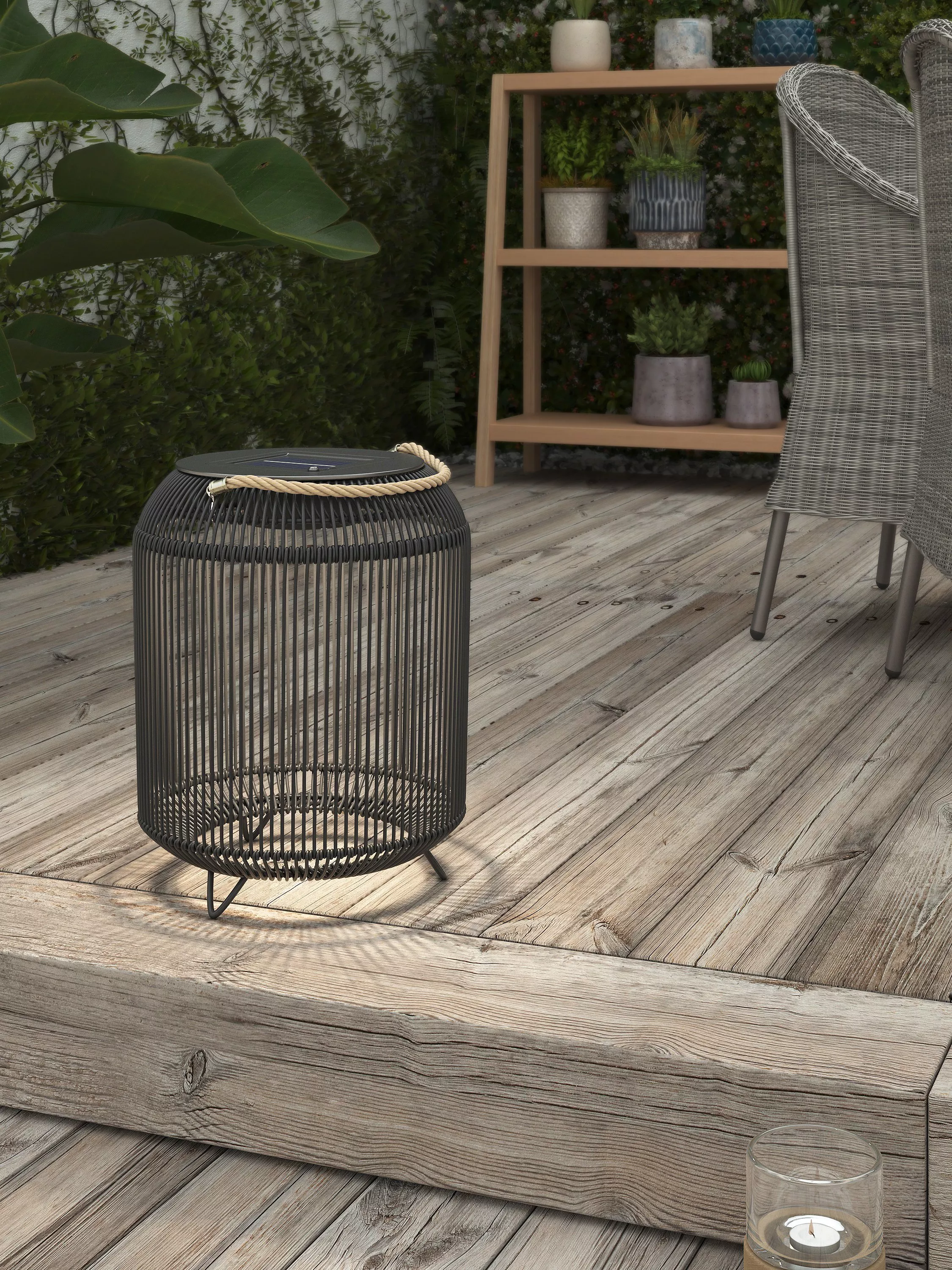 Our freestanding solar-powered garden lantern has a contemporary shape and rattan-effect design, suiting our rattan-effect garden furniture ranges.