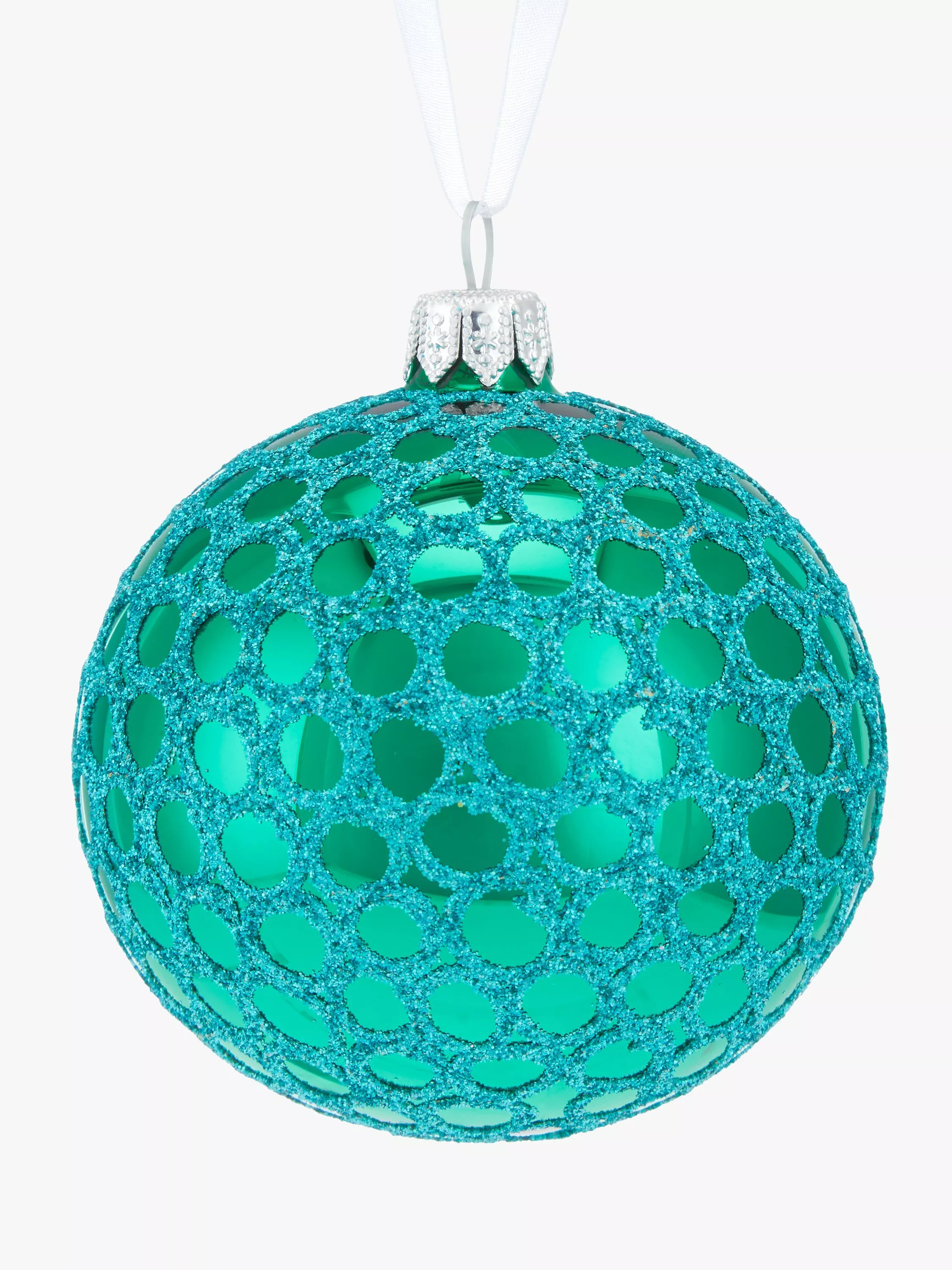 John Lewis & Partners Sapphire Glittered Mesh Bauble, Blue
