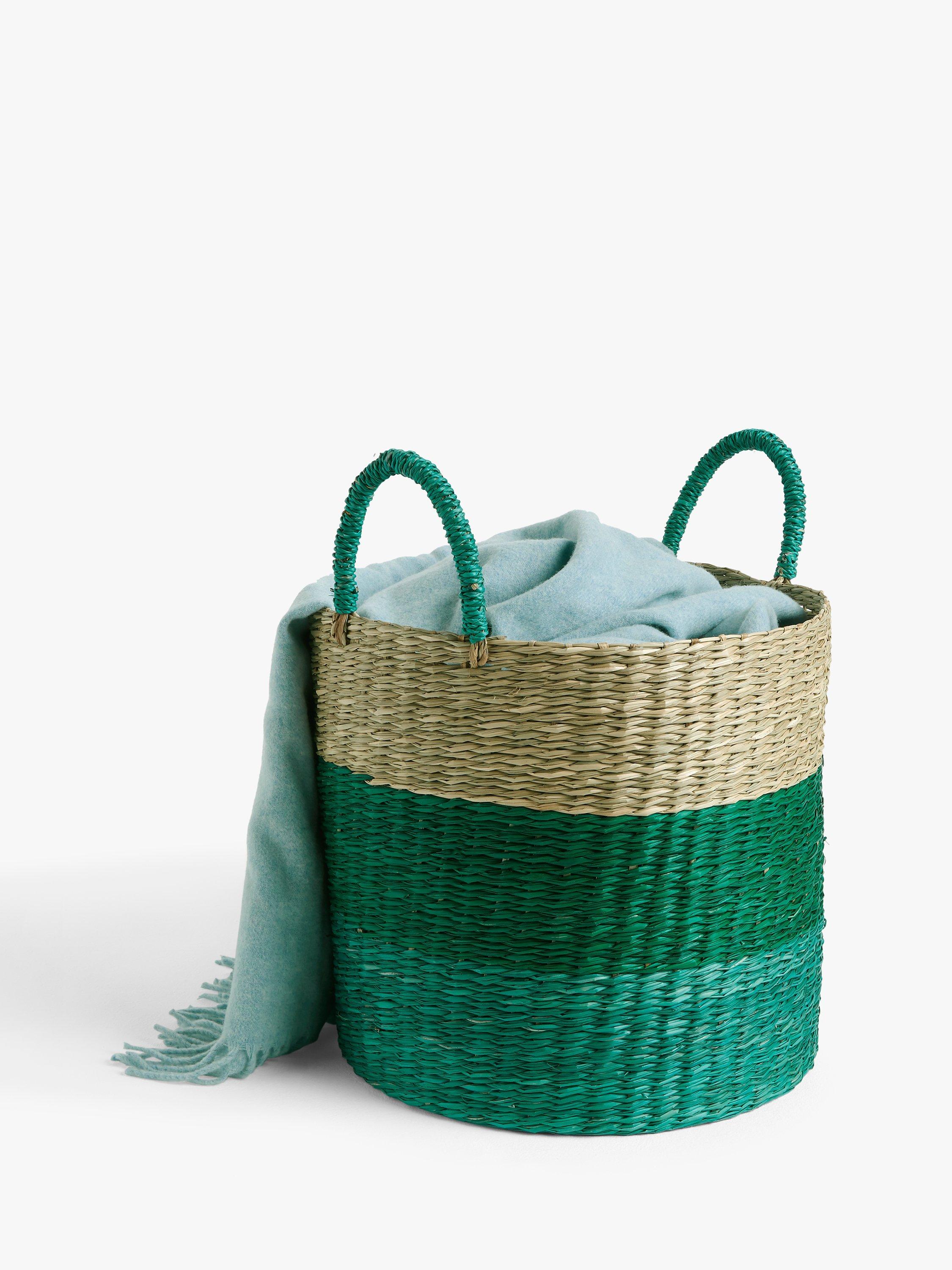 John Lewis & Partners Seagrass Basket, Medium, Green/Blue