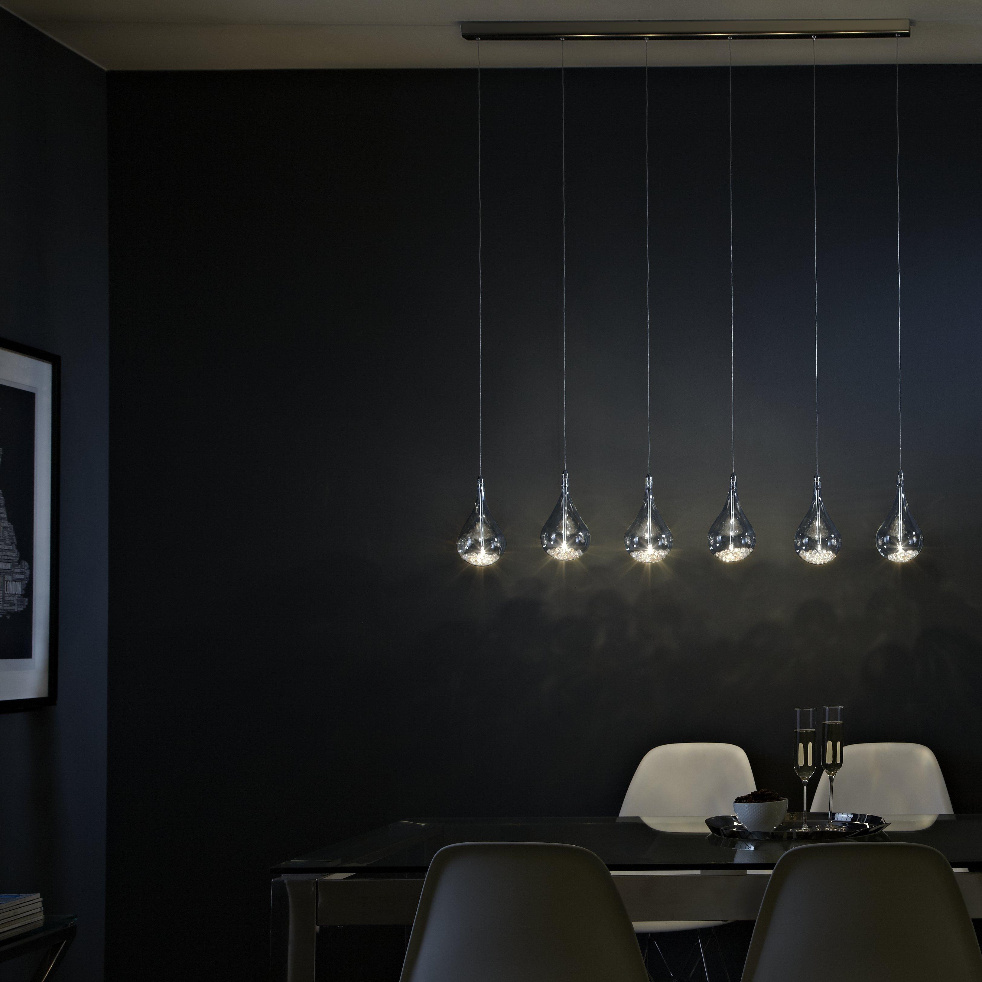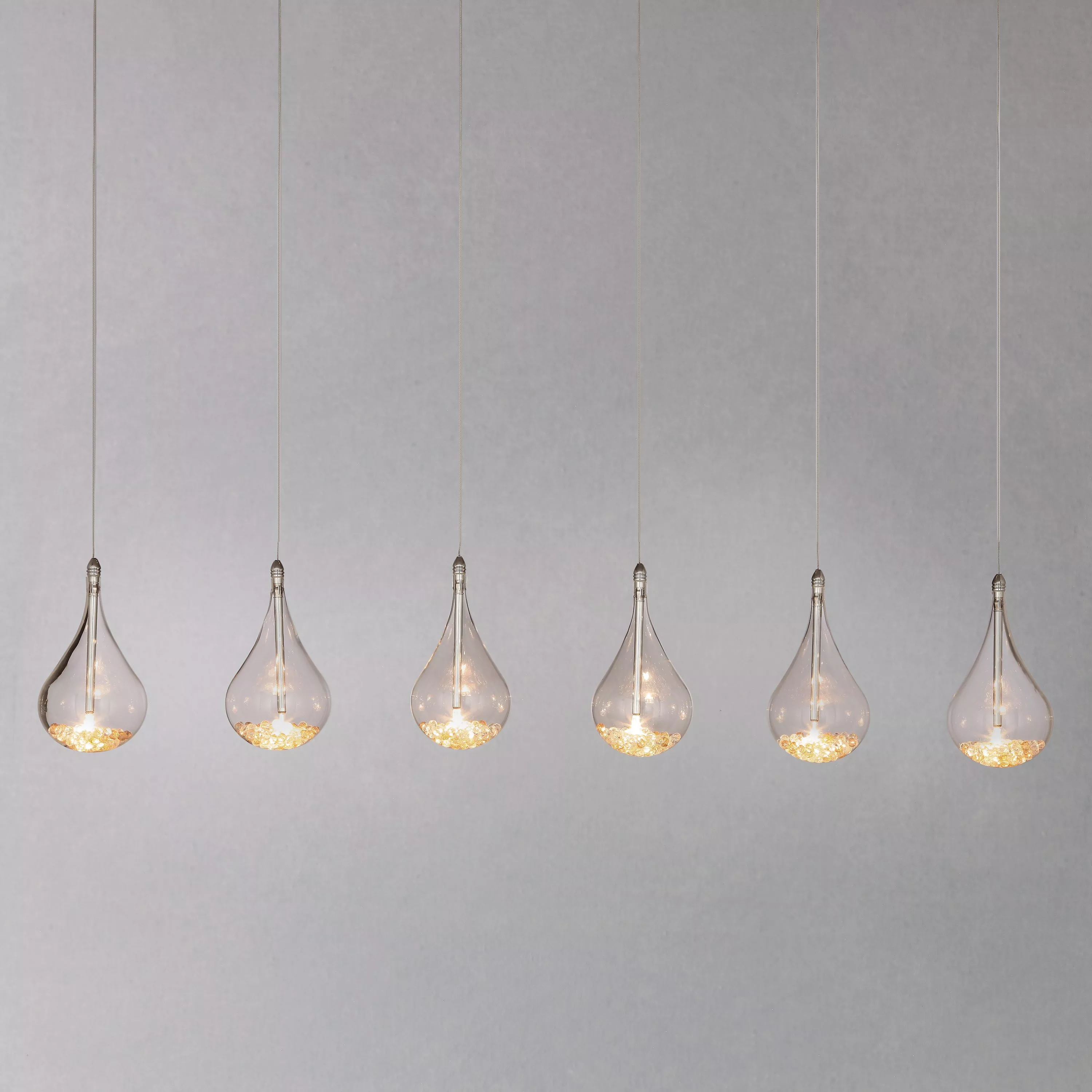 The light cracks through the beads and reflects the golden colouring. Each droplet has an adjustable height, so you can position them in the ideal shape for your location. They're perfect for suspending over a breakfast or dining table.