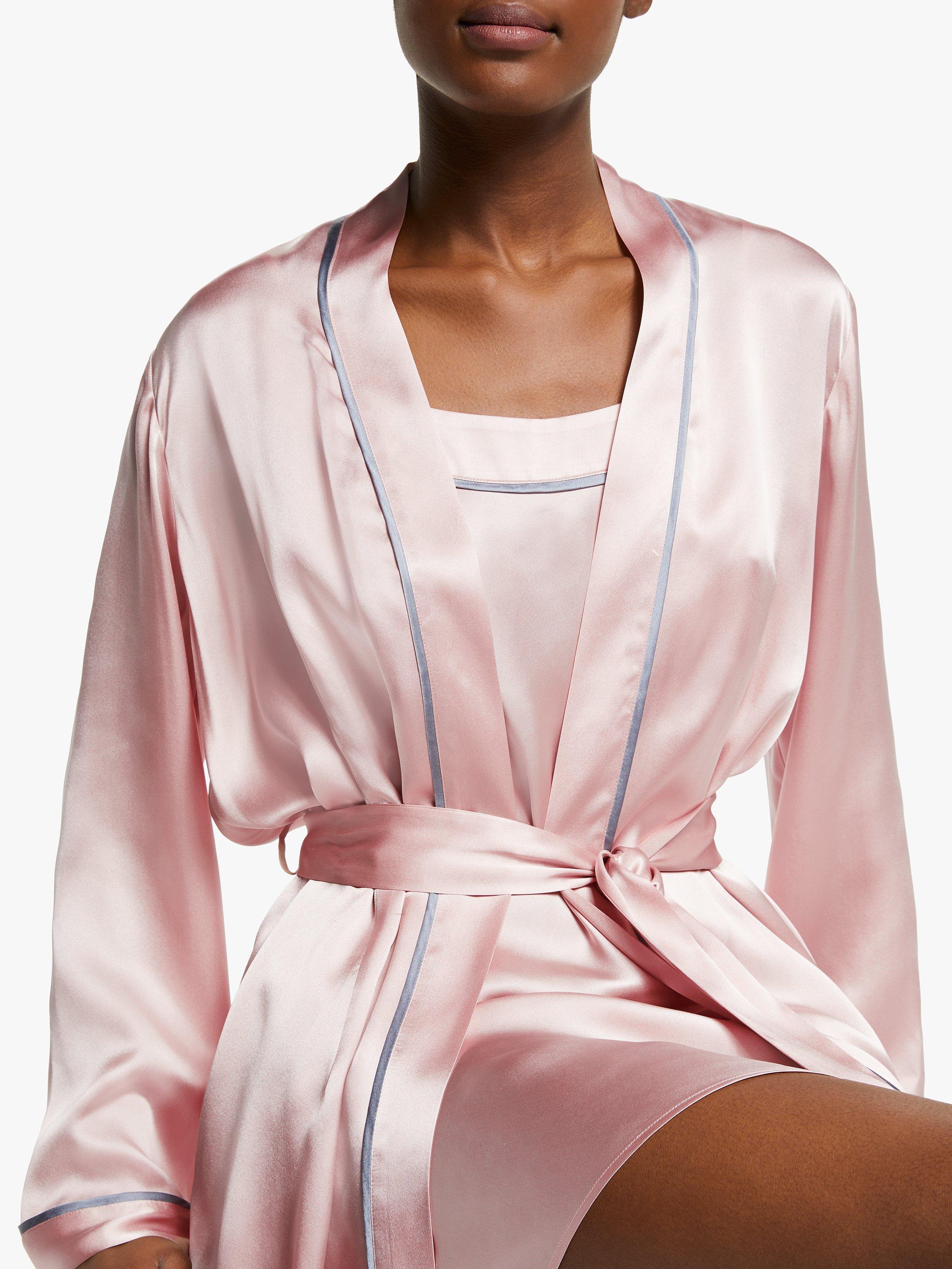 John Lewis & Partners Silk Piped Dressing Gown, Pink