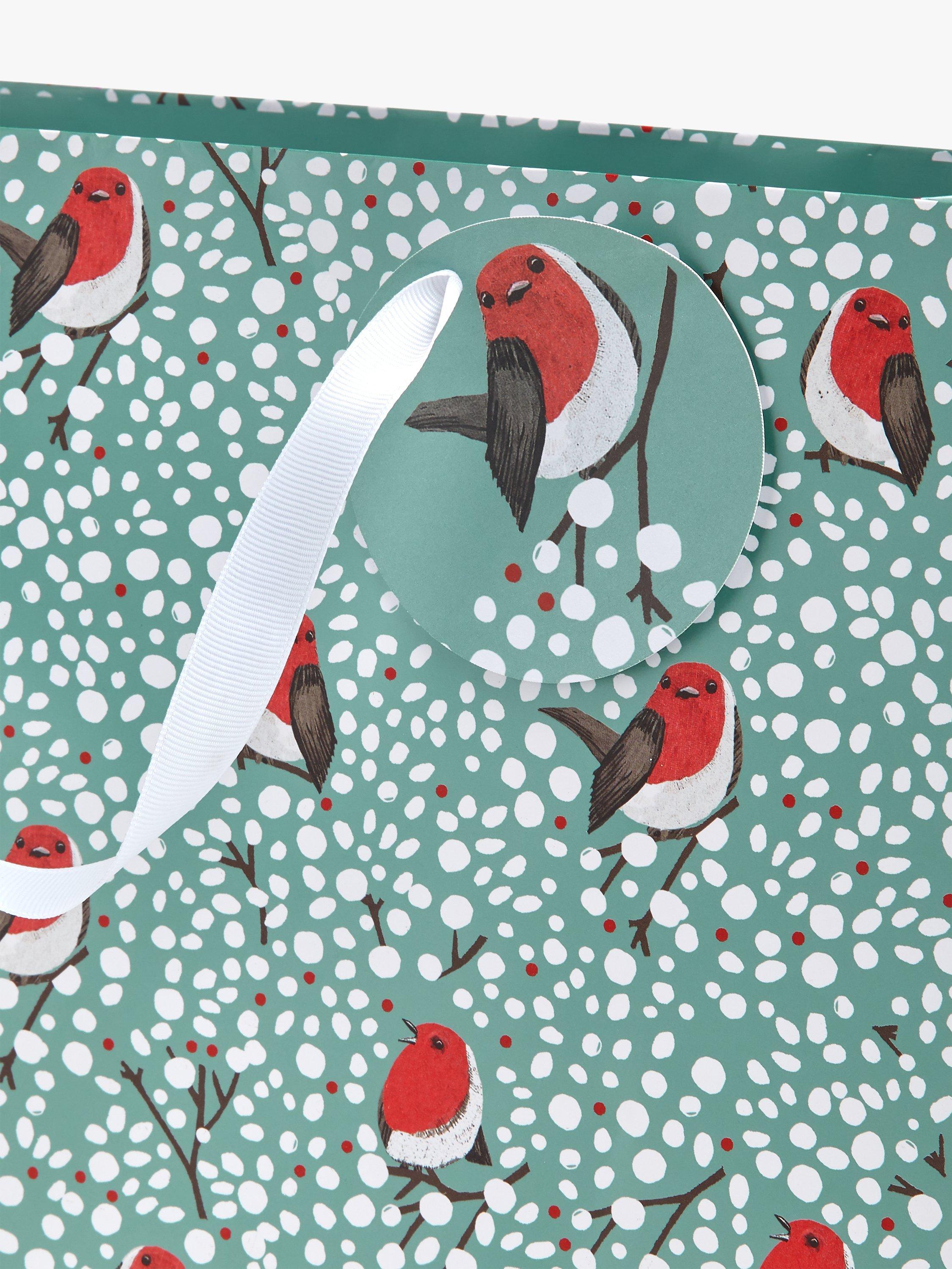 John Lewis & Partners Snowscape Robin Gift Bag, Medium