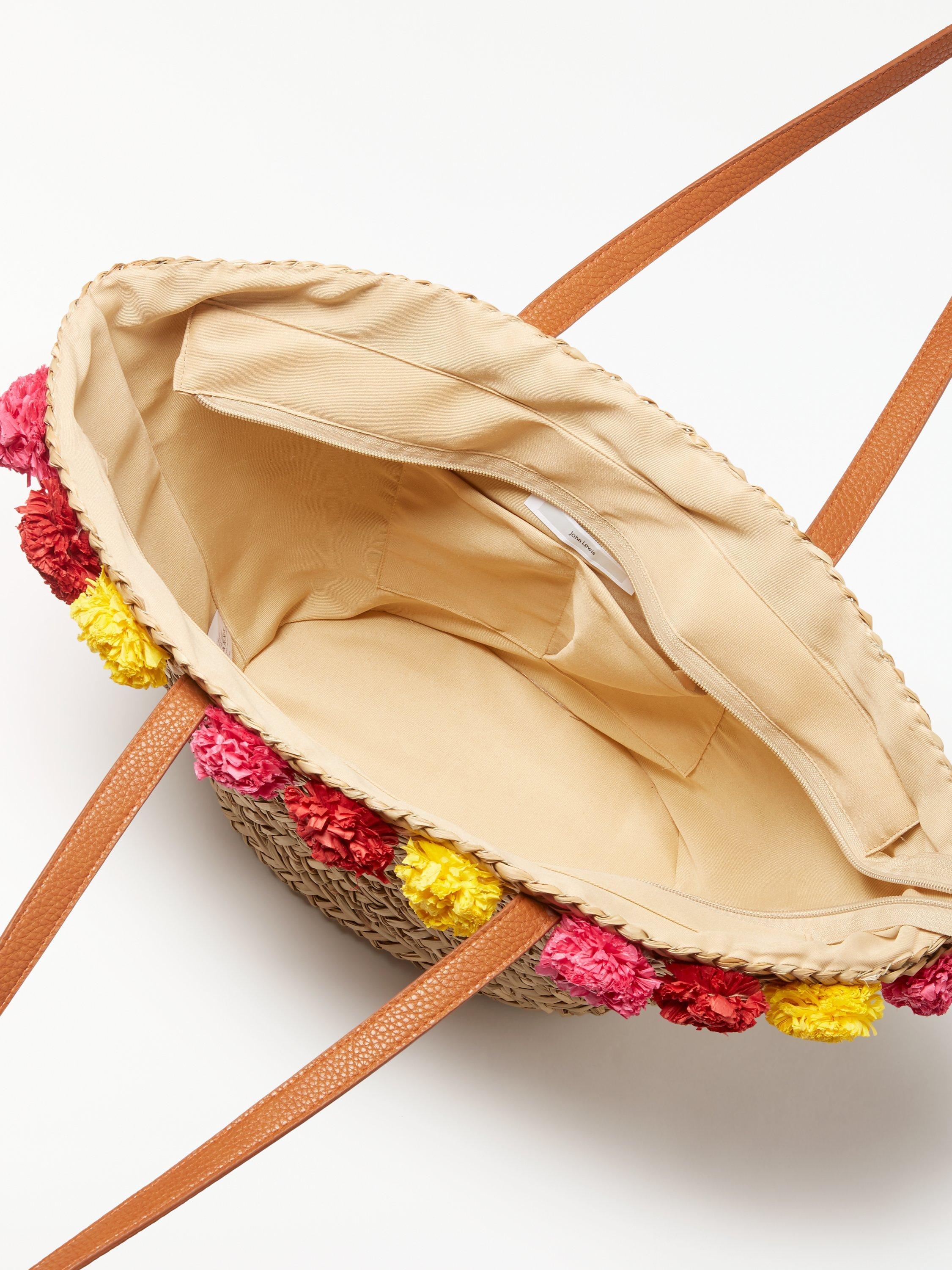 John Lewis & Partners Straw Pom-Pom Grab Bag, Multi
