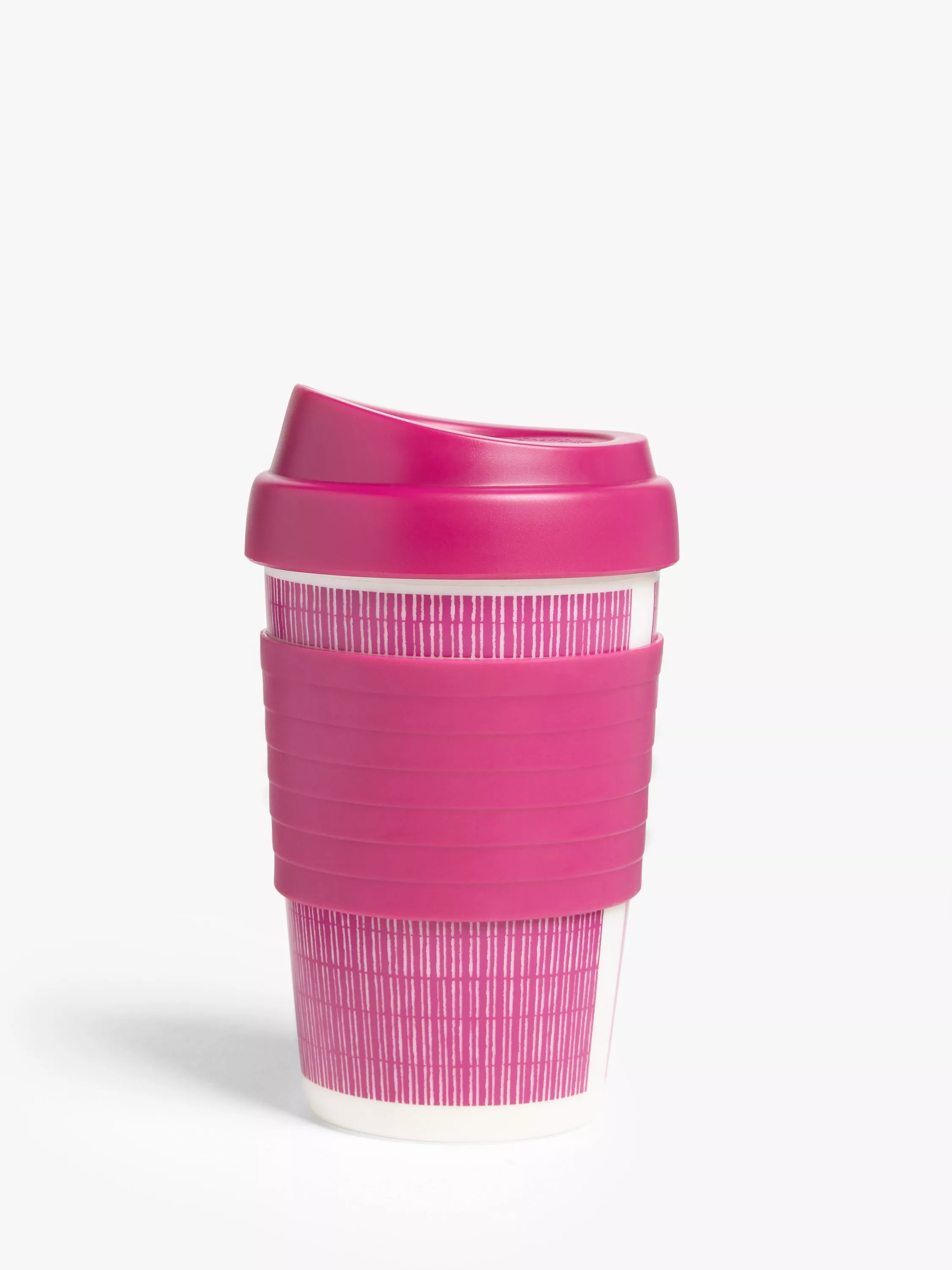 John Lewis & Partners Striped Plastic Reusable Travel Cup, 340ml, Pink