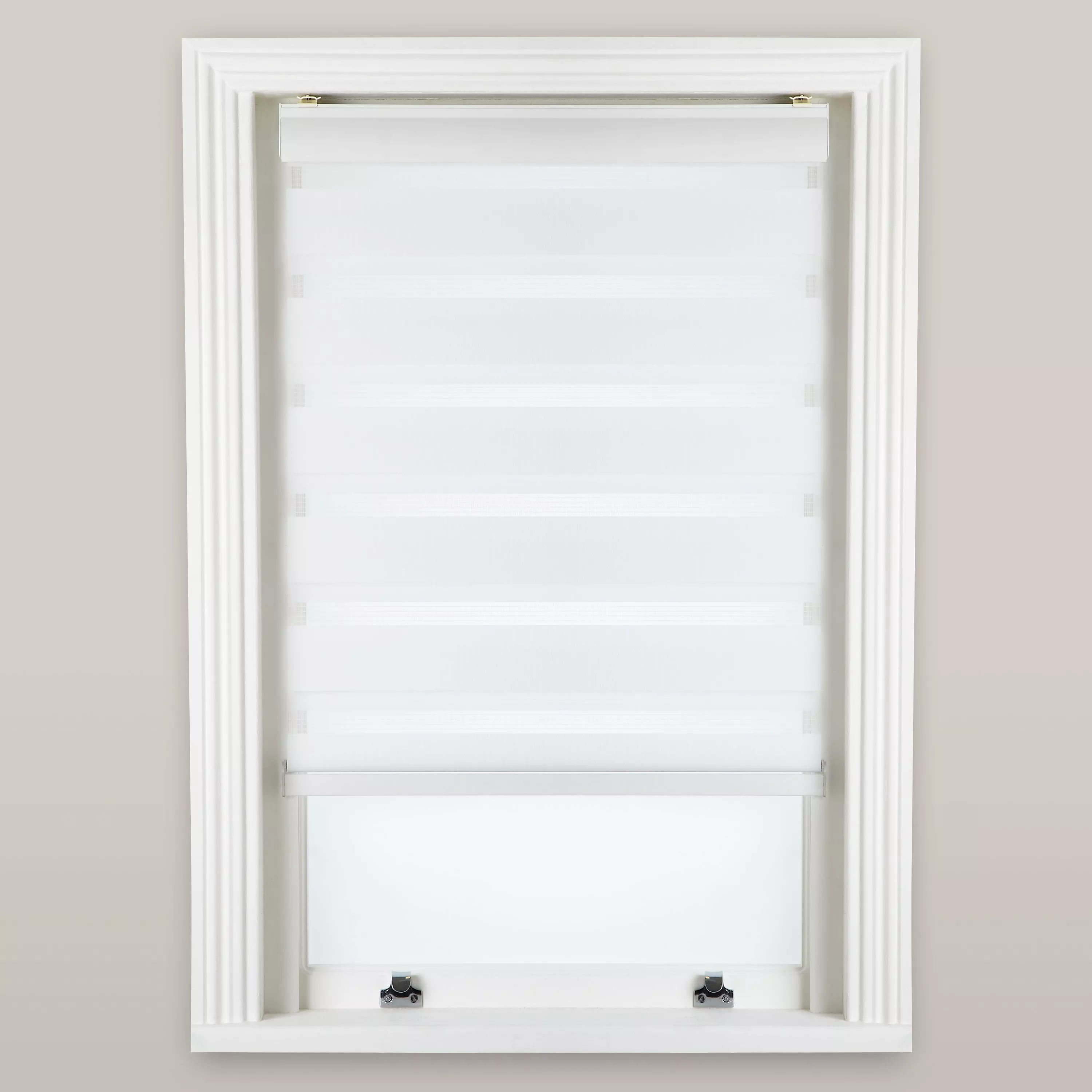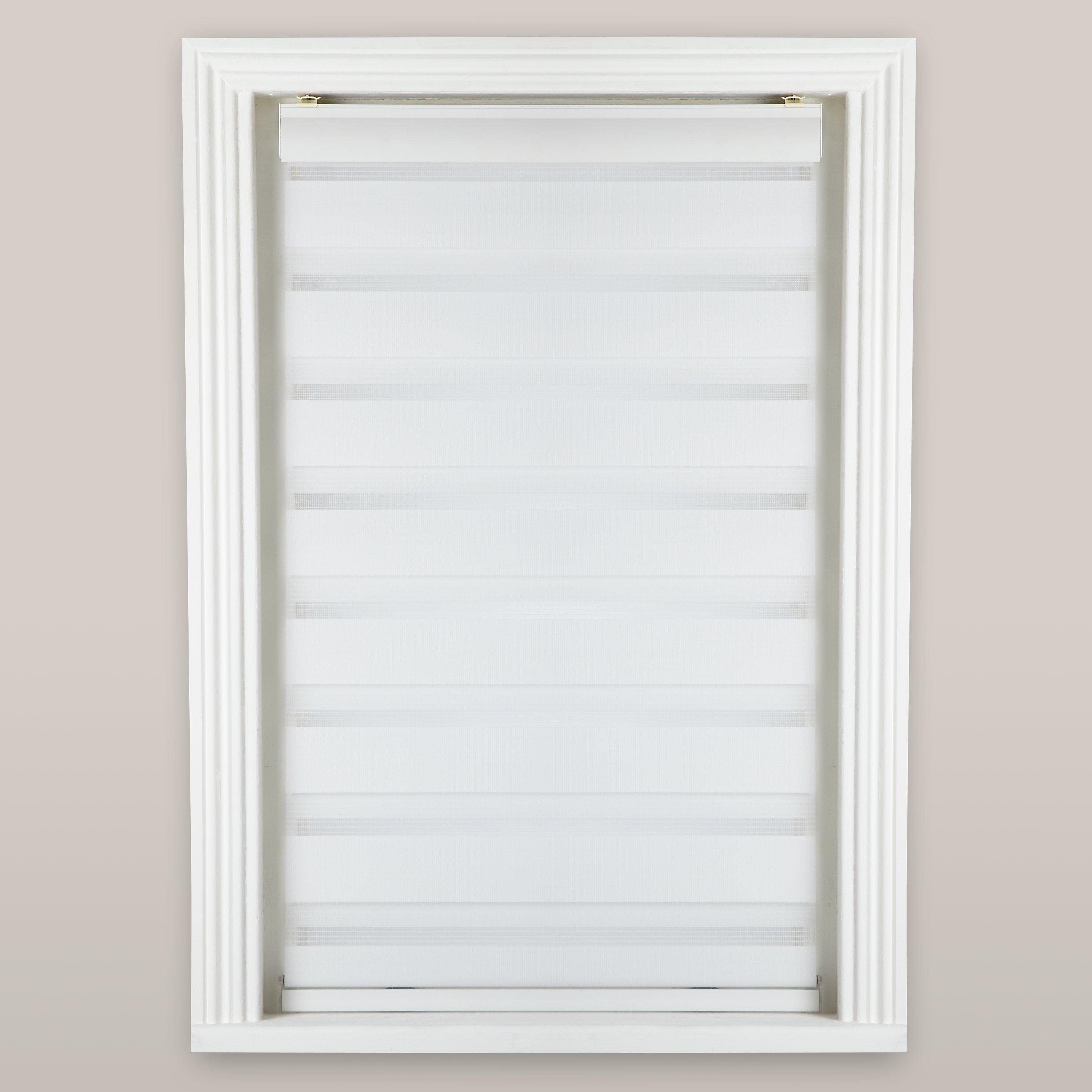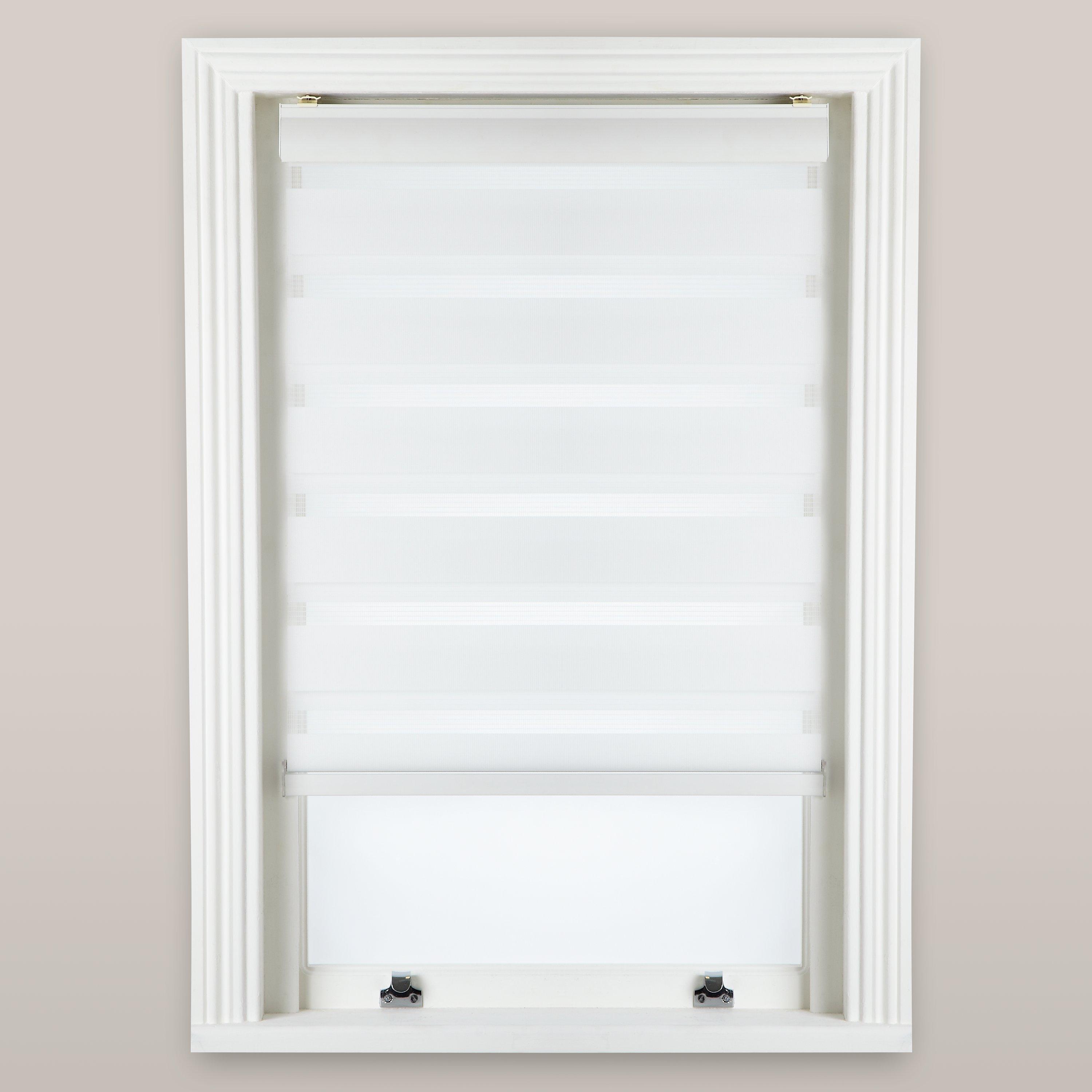 Control the amount of light entering a room with this soft-look blind. The chain side control works like a roller bind but the fabric has stripes of sheer and block colour so that you can adjust it as you please.