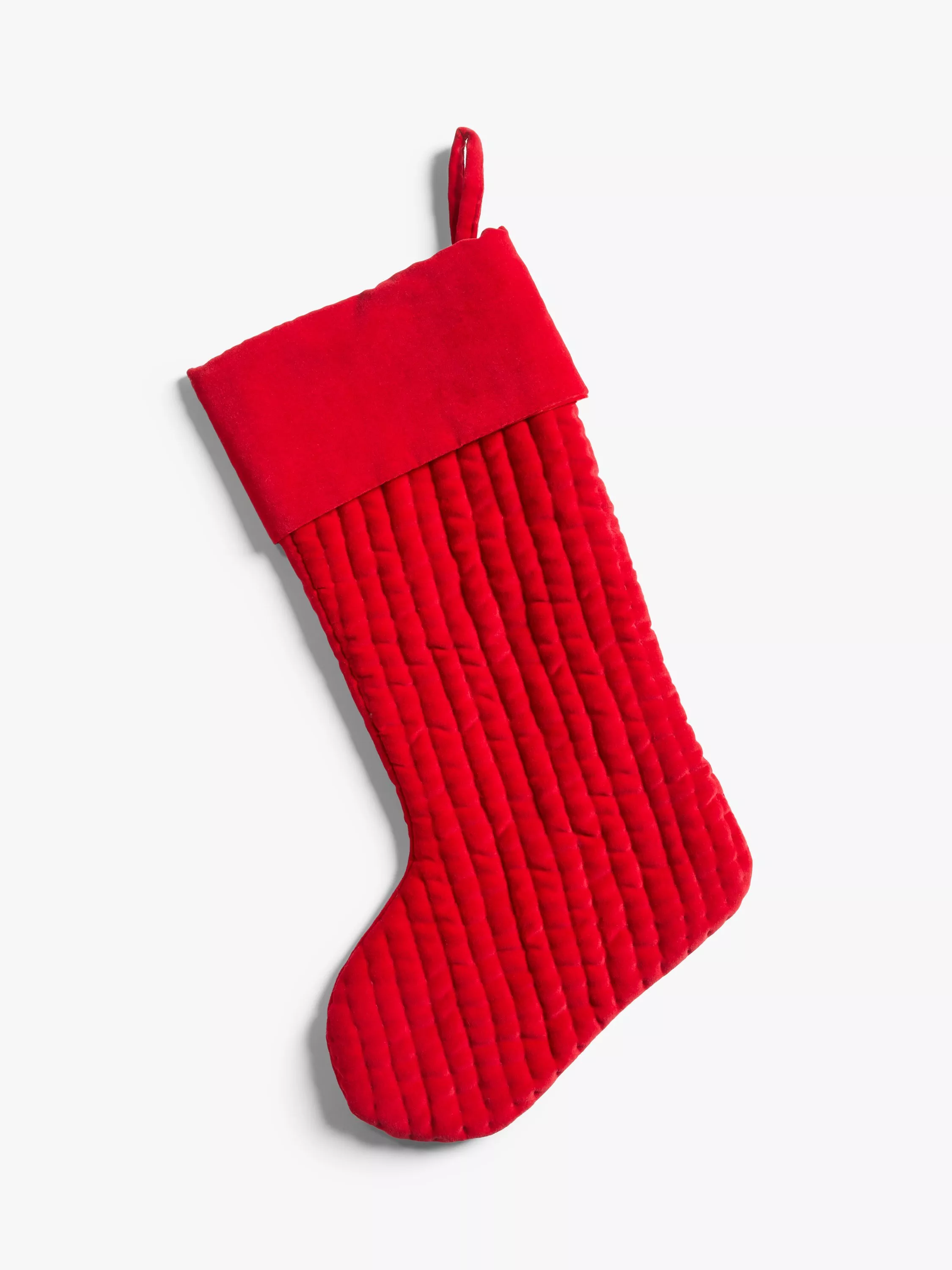 John Lewis & Partners Traditions Ribbed Velvet Christmas Stocking, Red
