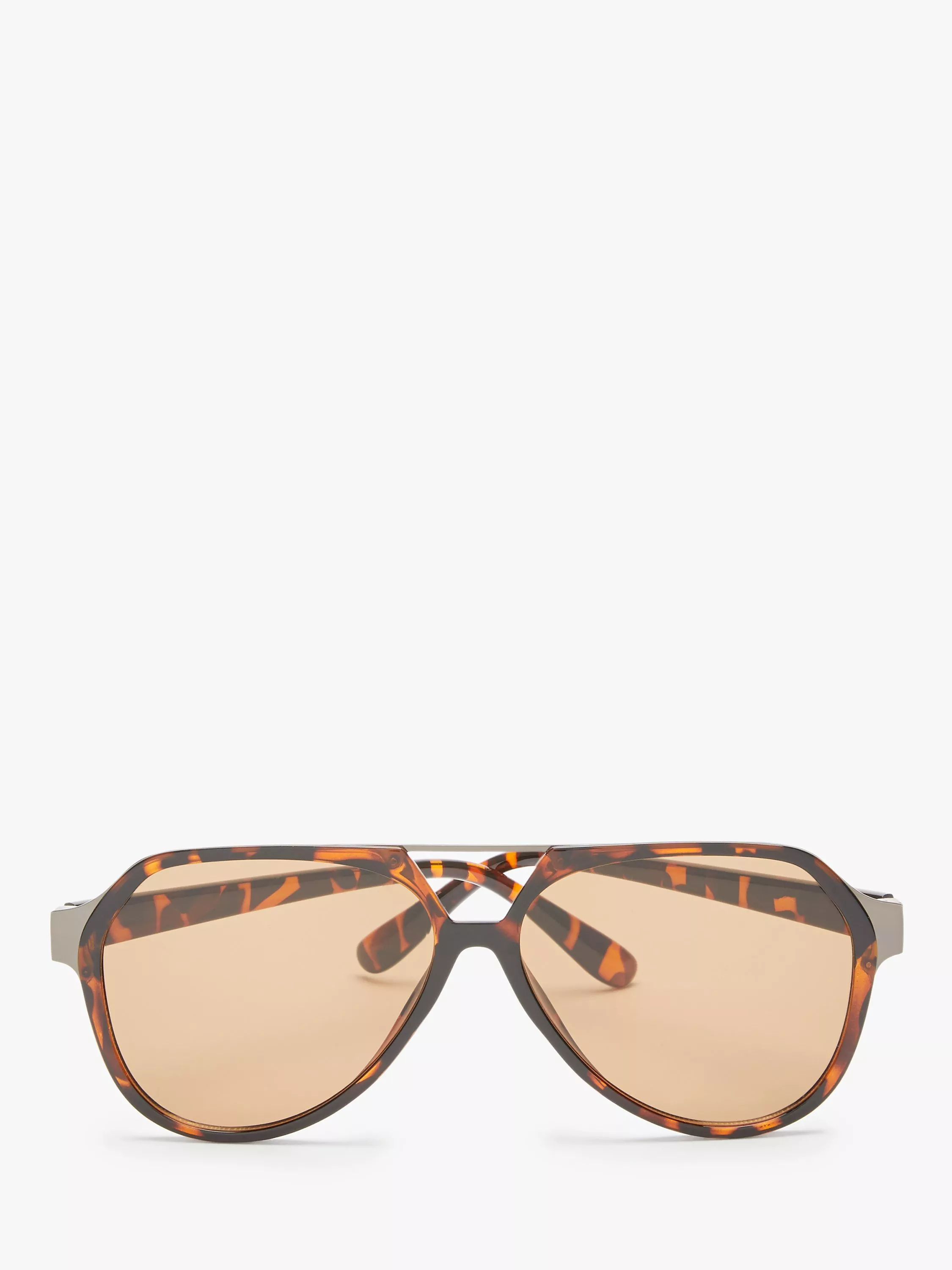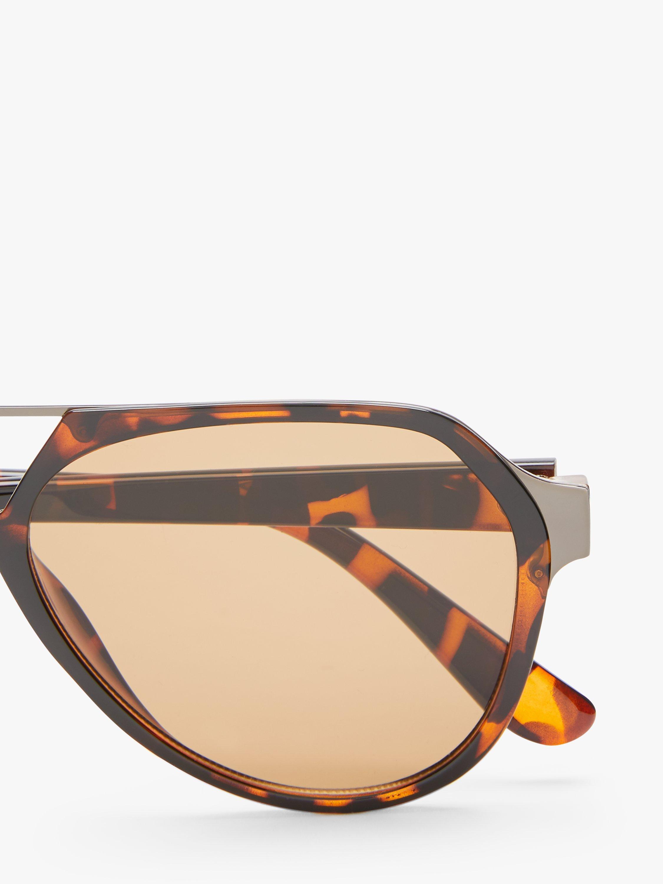 John Lewis & Partners Unisex Flat Aviator Sunglasses, Tortoise/Brown
