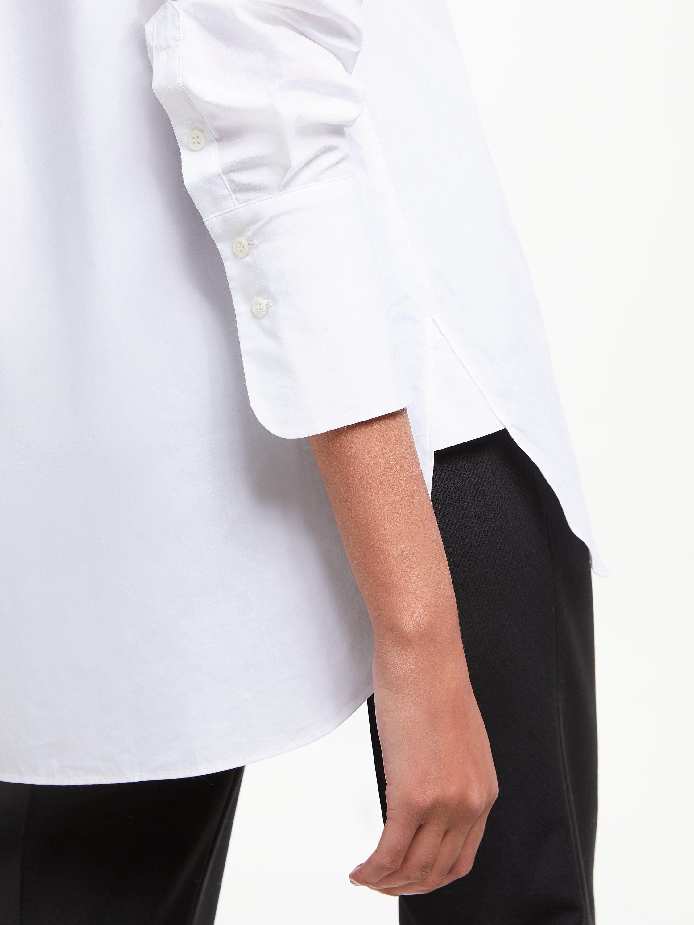 The cuff is slightly deeper with two button, giving it a subtle split cuff look, finished with a box pleat on the back yoke and inserted side seam details to complement the gentle curved hem. Tailored trousers and loafers work just as well as skinnies and trainers with this top - we give you the tools to make your own rules.