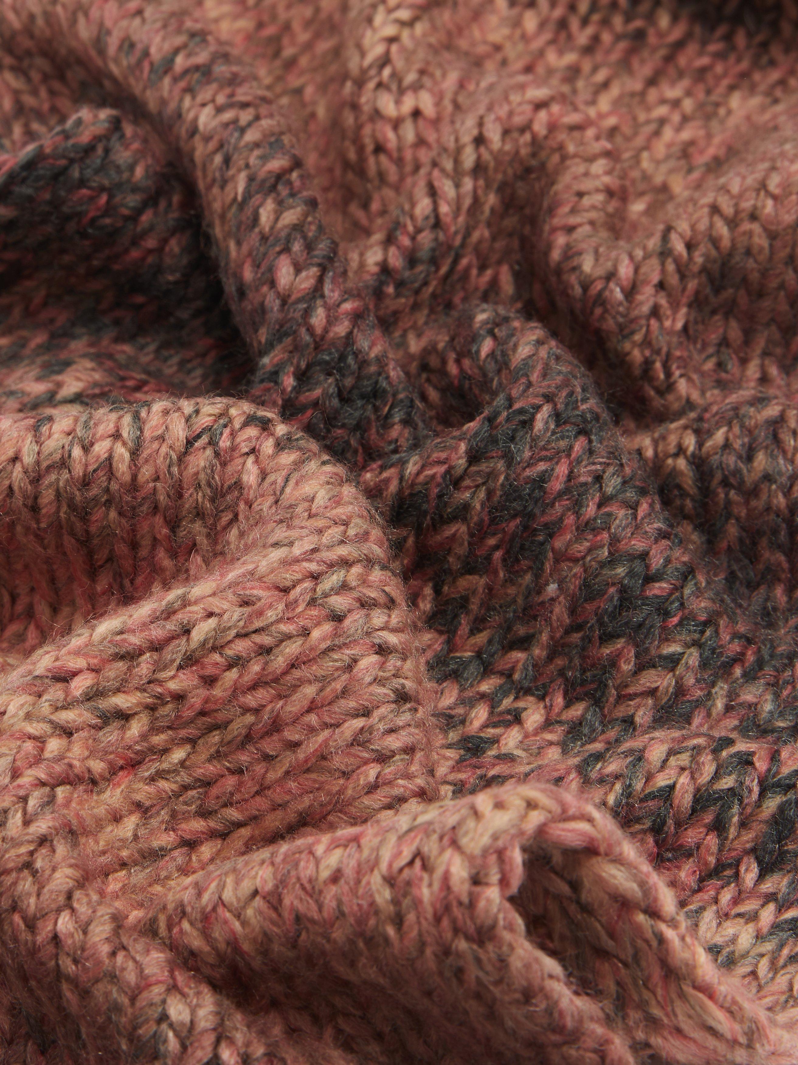 We've produced this long scarf using space-dyed yarn. Each piece is individual and unique due to the nature of the yarn so that your look will be certainly one-off. The chunky knitted structure will keep you warm and snug on cold windy days.