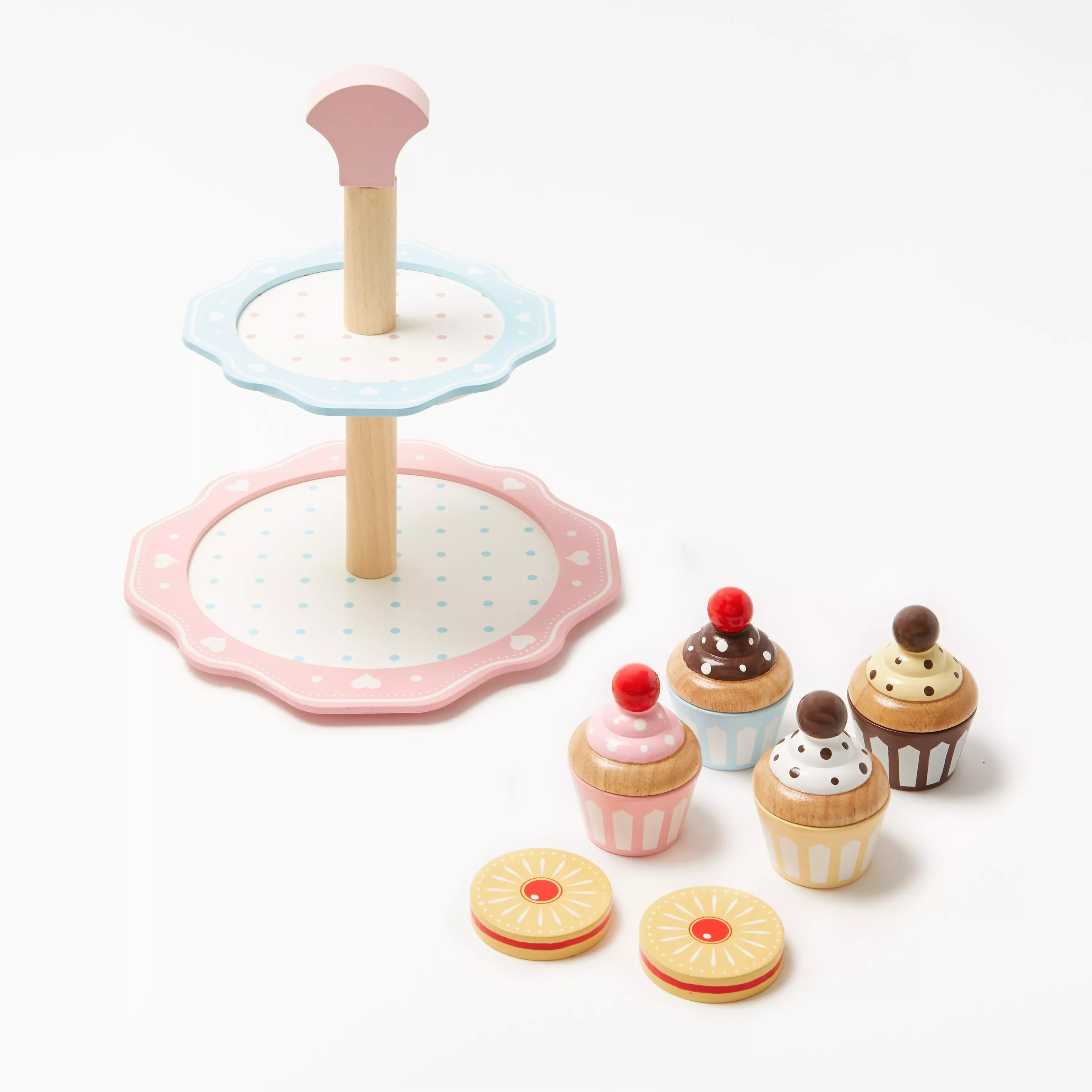 A great toy that really takes the cake! This wooden cake stand includes 4 cakes and 2 biscuits, perfect for a tea party. Little ladies and gentlemen can stage their own tea time and invite family and friends round for a nice cake or biscuit and a civilised chat.