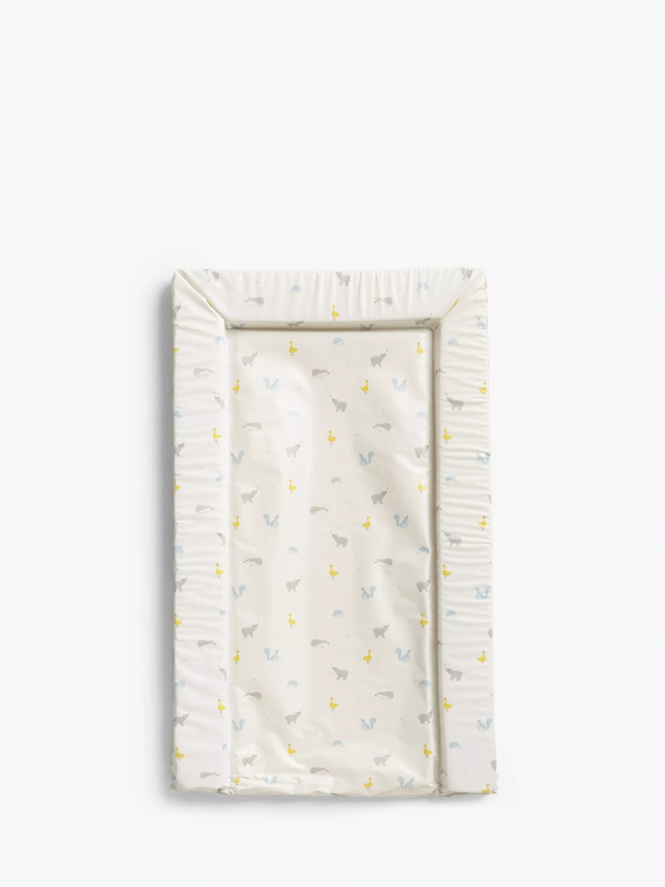 Our wipe-clean changing mat is made from supportive foam padding with a phthalate-free PVC cover. With a friendly woodland animal pattern, it's a smart and safe addition to the nursery.