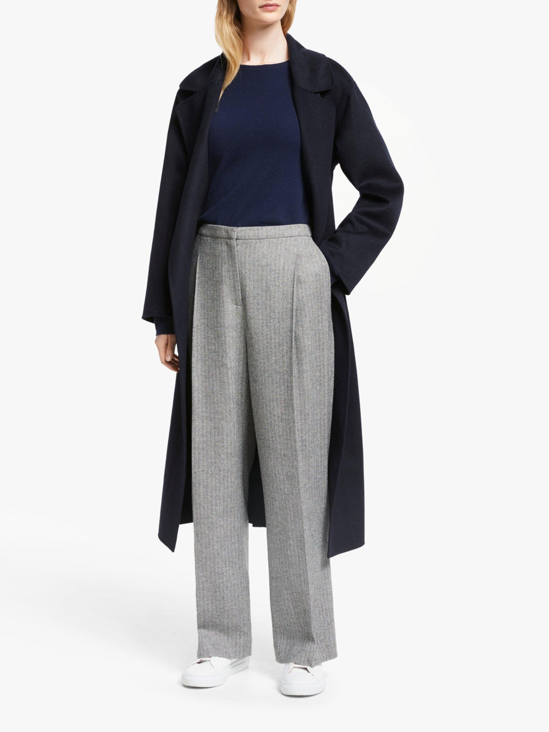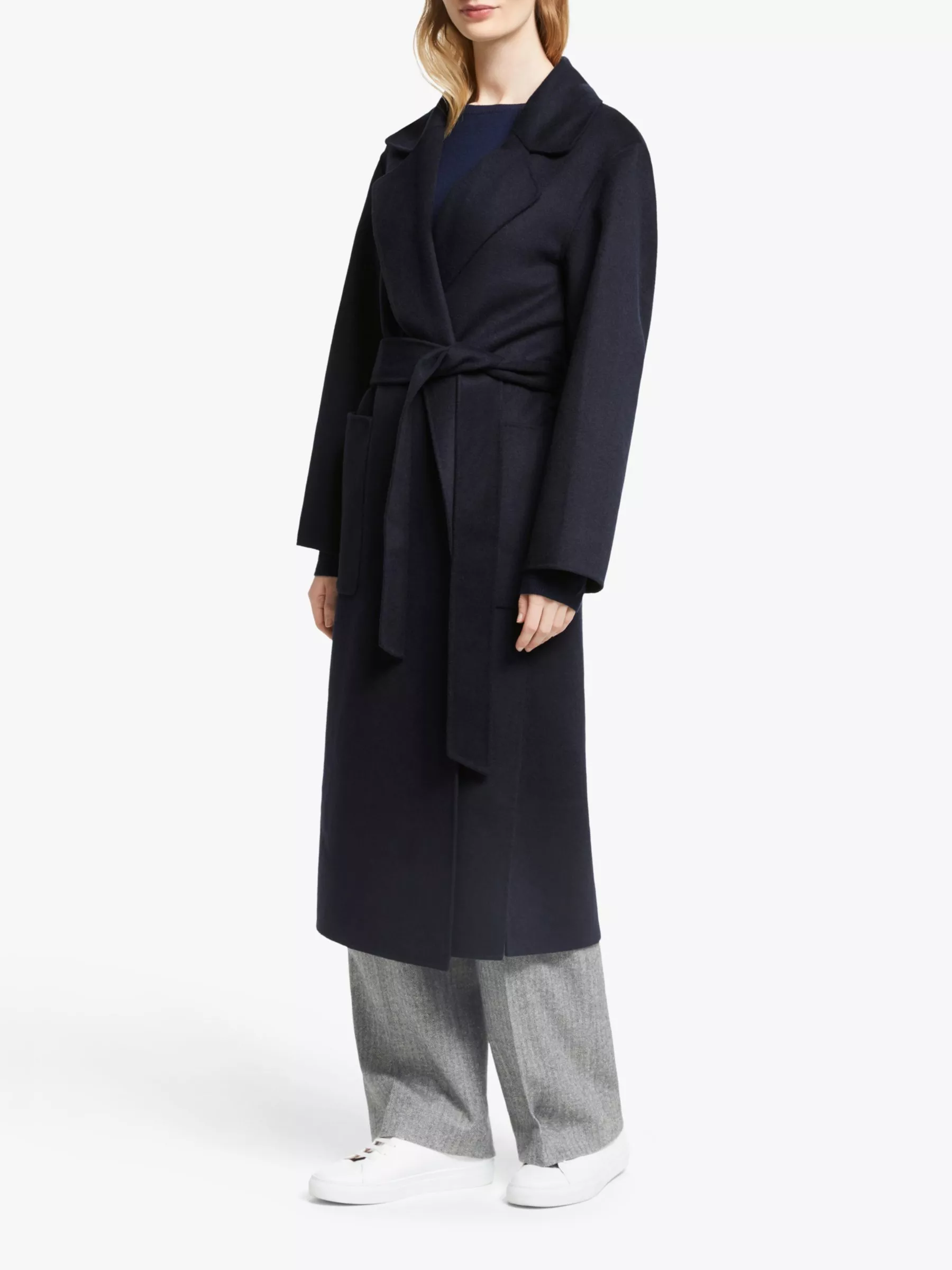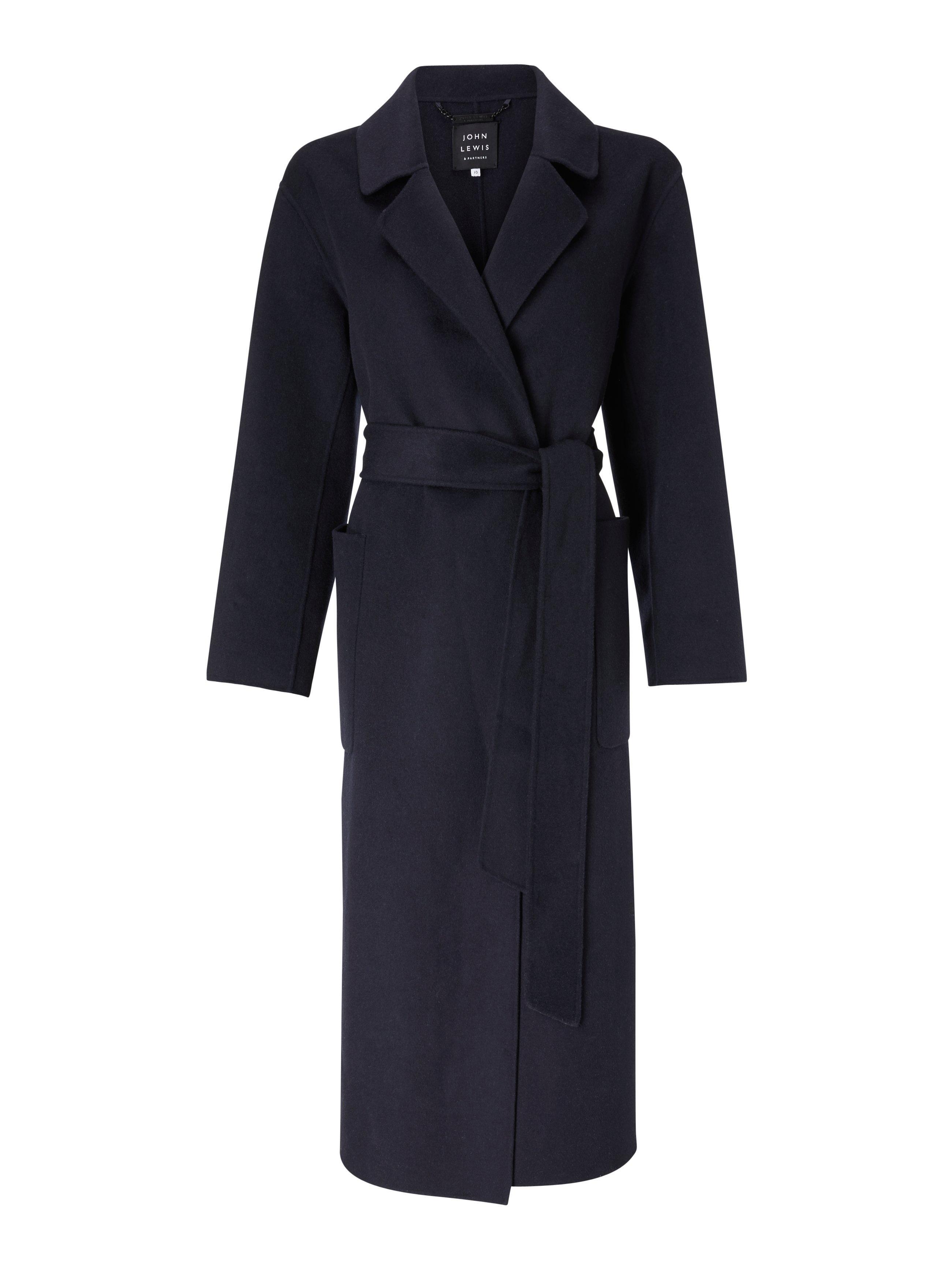 John Lewis & Partners Wool Blend Patch Pocket Maxi Double Faced Wrap Coat, Navy