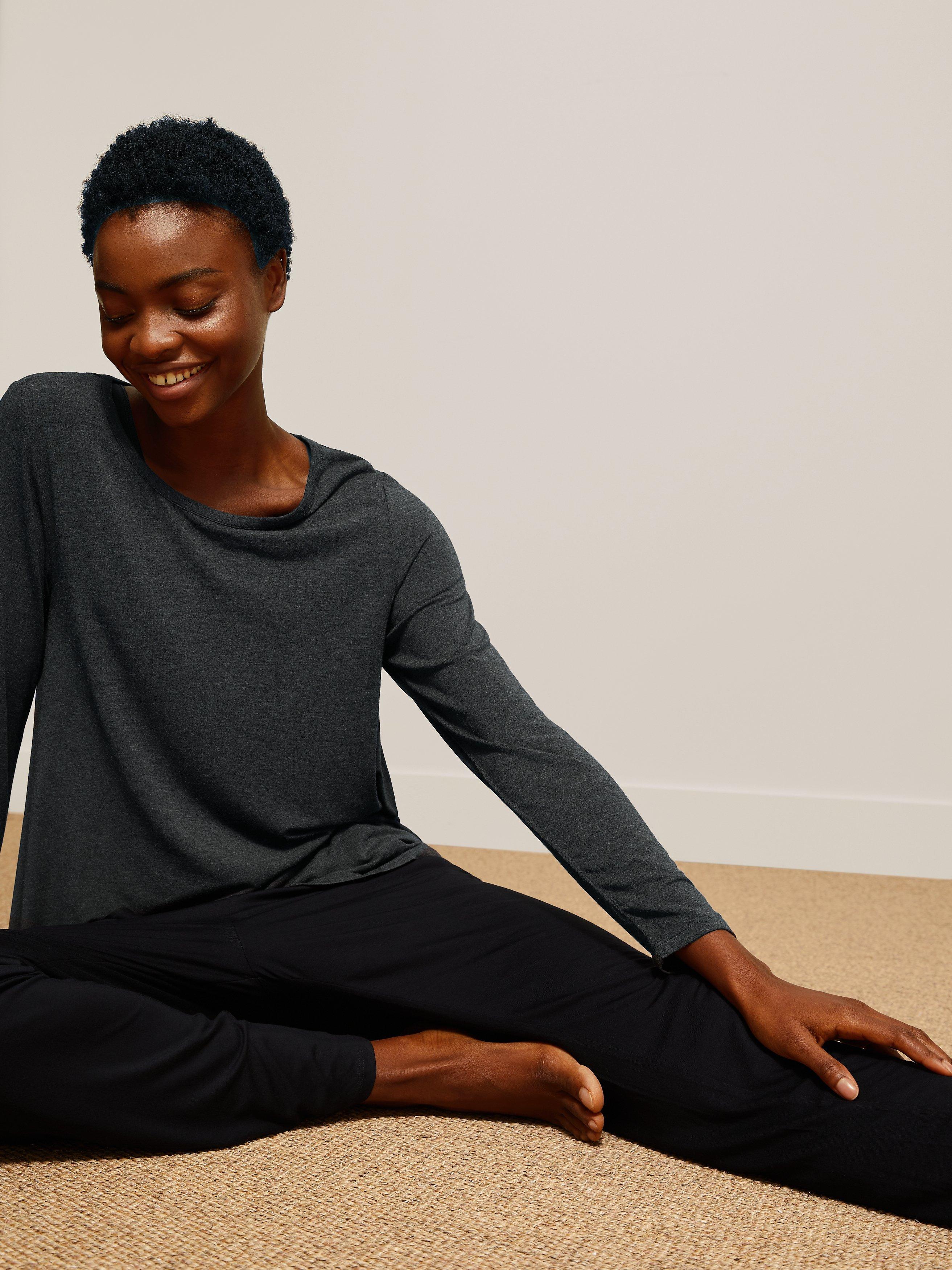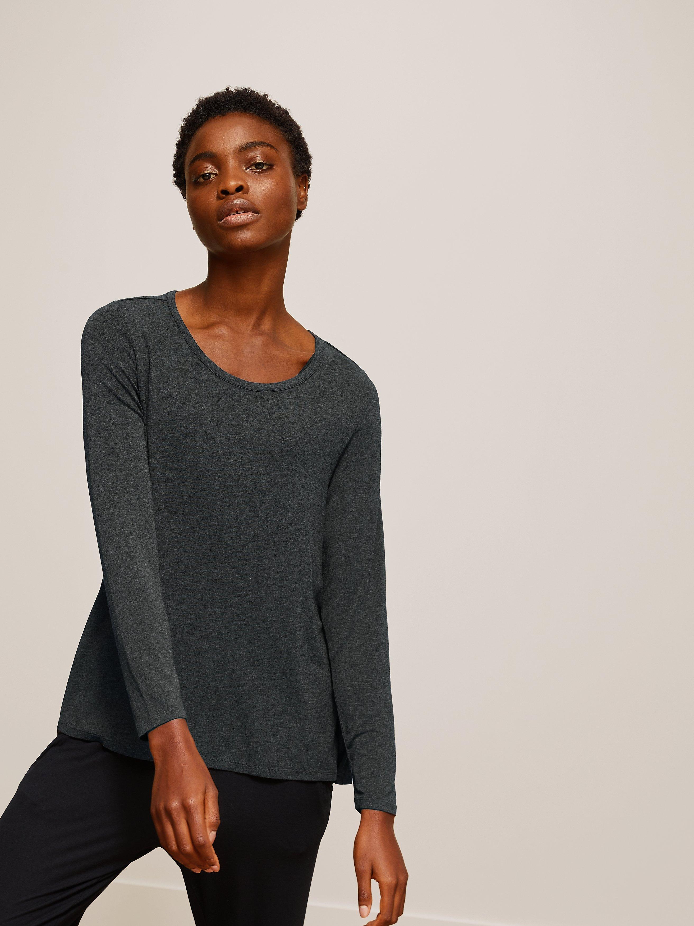 Made from soft, draped jersey, our lounge top is an easy mix and match piece for relaxing in. We've given it a simple long-sleeved silhouette with a flattering scoop neckline while the stretchy jersey is comfy and cool for year-round wear.