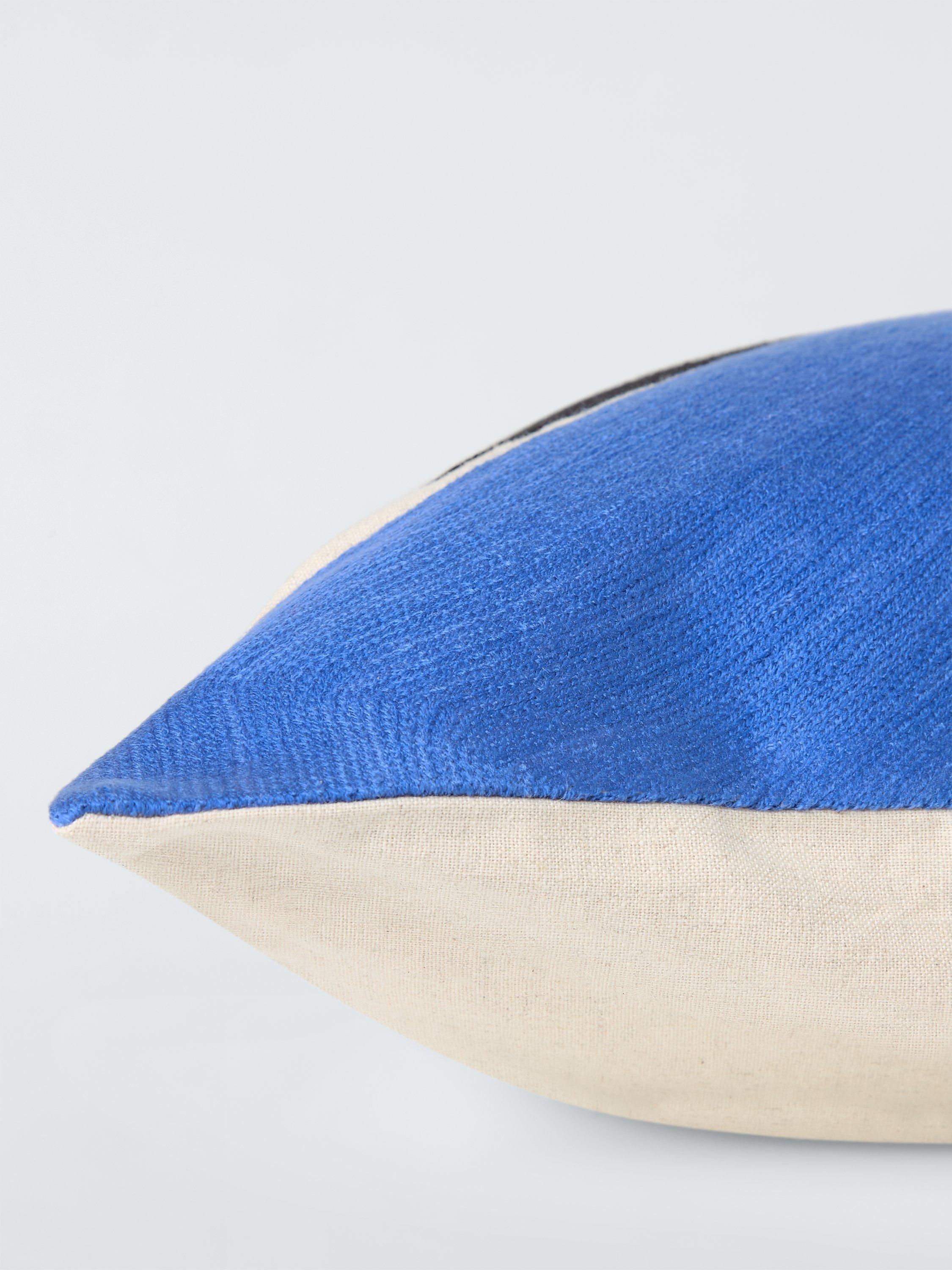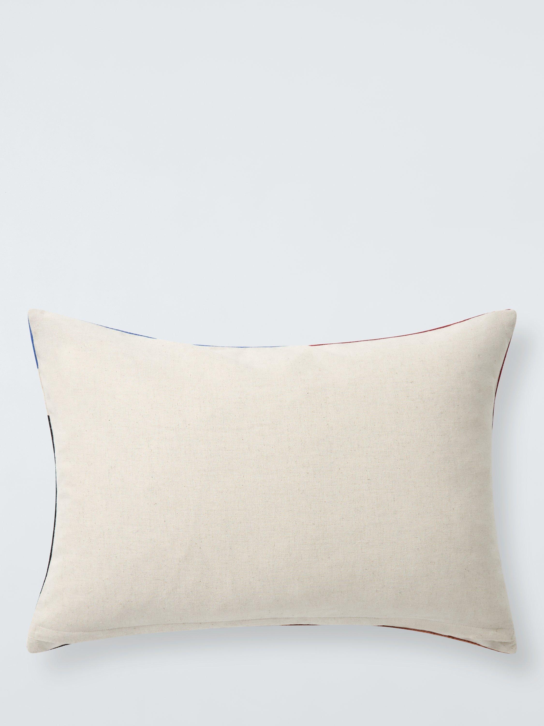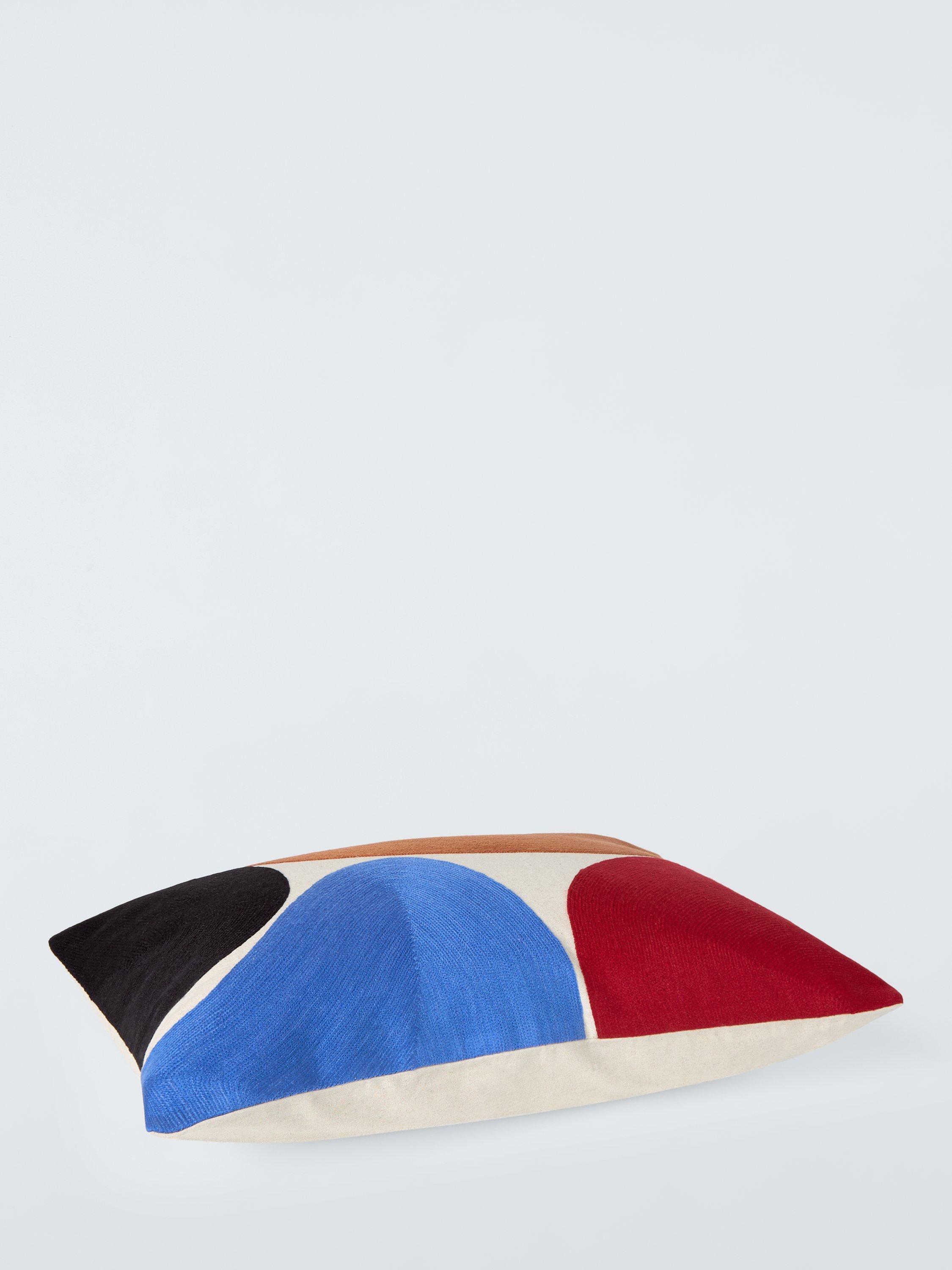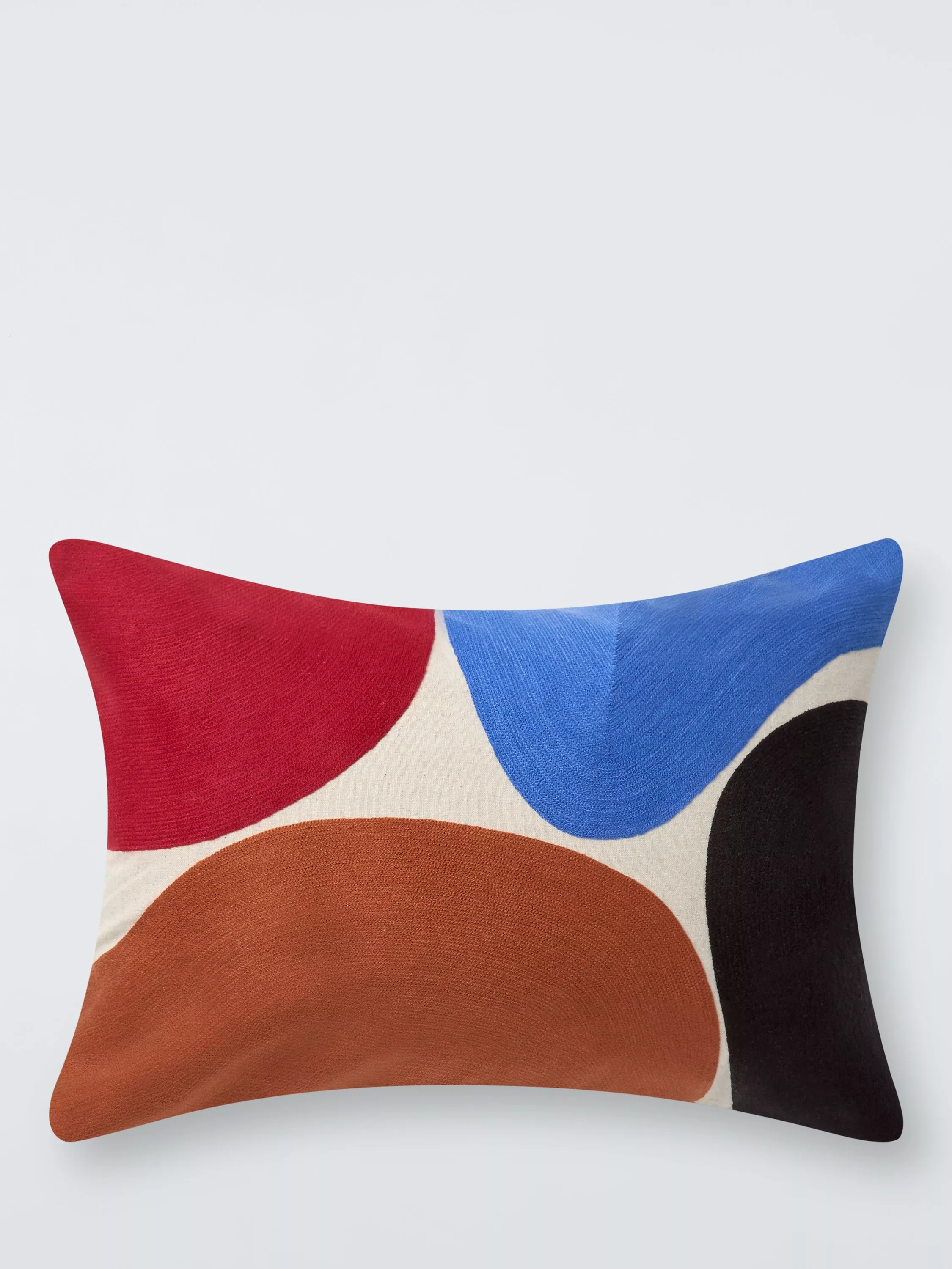 Textured and colourful, this abstract cushion features chainstitched "pebbles" on a natural background.