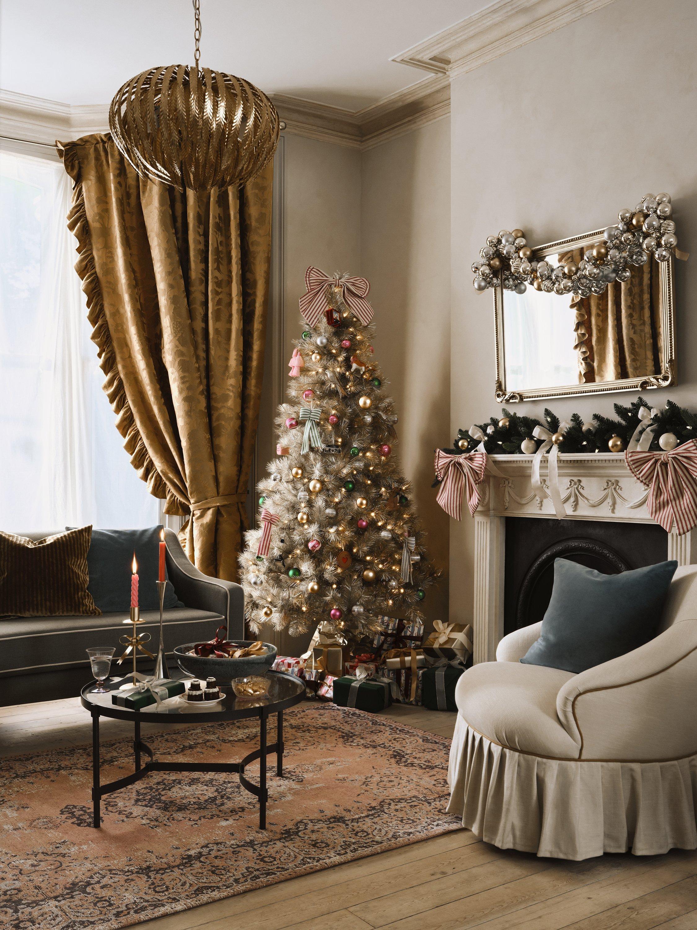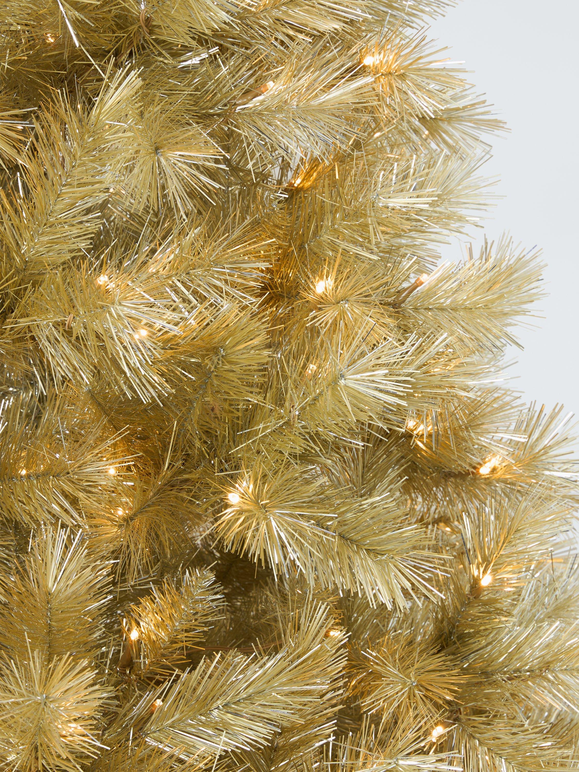 This stunning, champagne-coloured tree includes 786 branch tips that sparkle brightly with 400 clear static LED lights. Dress with gold and silver decorations for an elegant, "put-together" look or choose contrasting colours such as red, green or even black, to make a real statement.