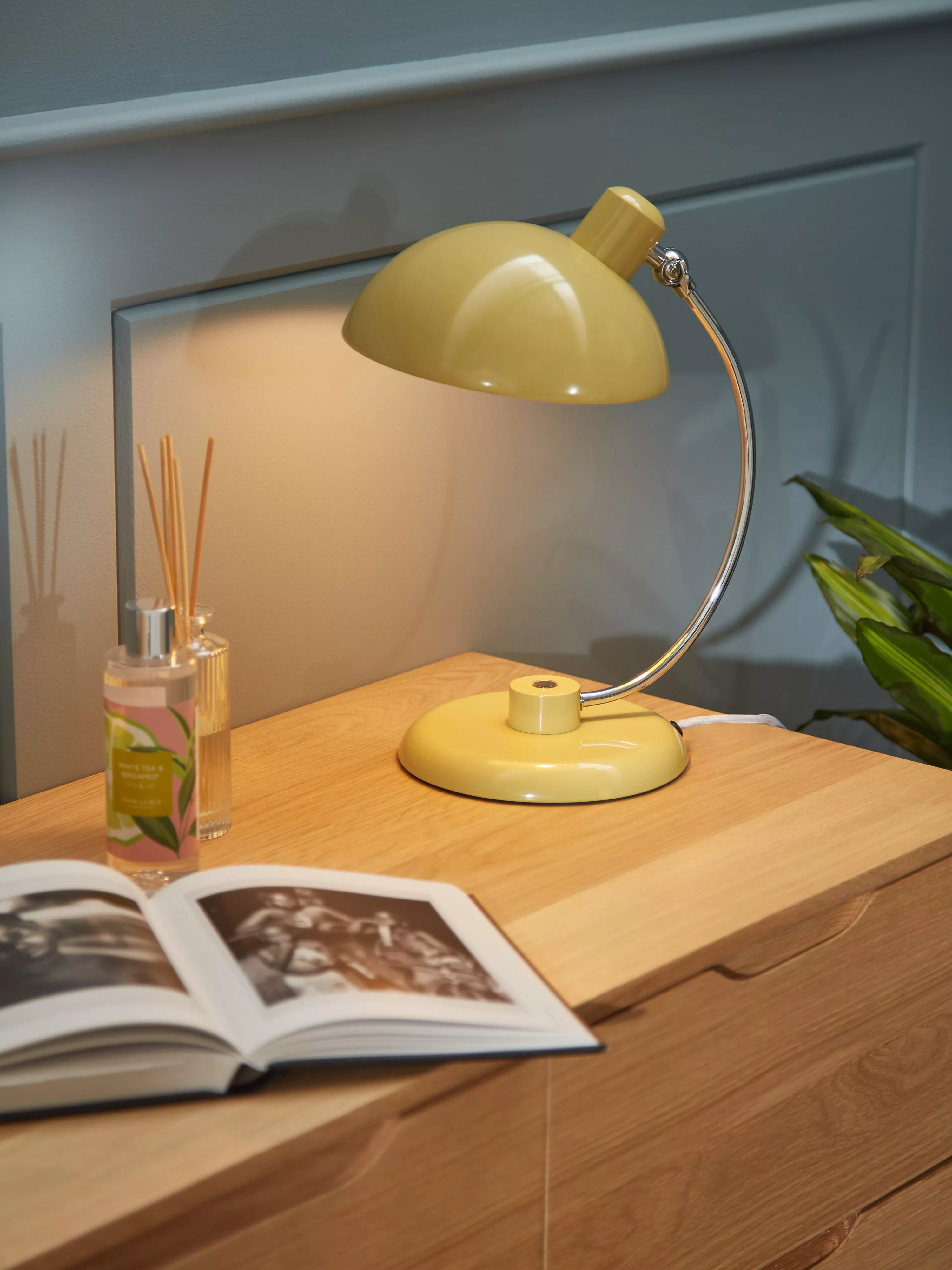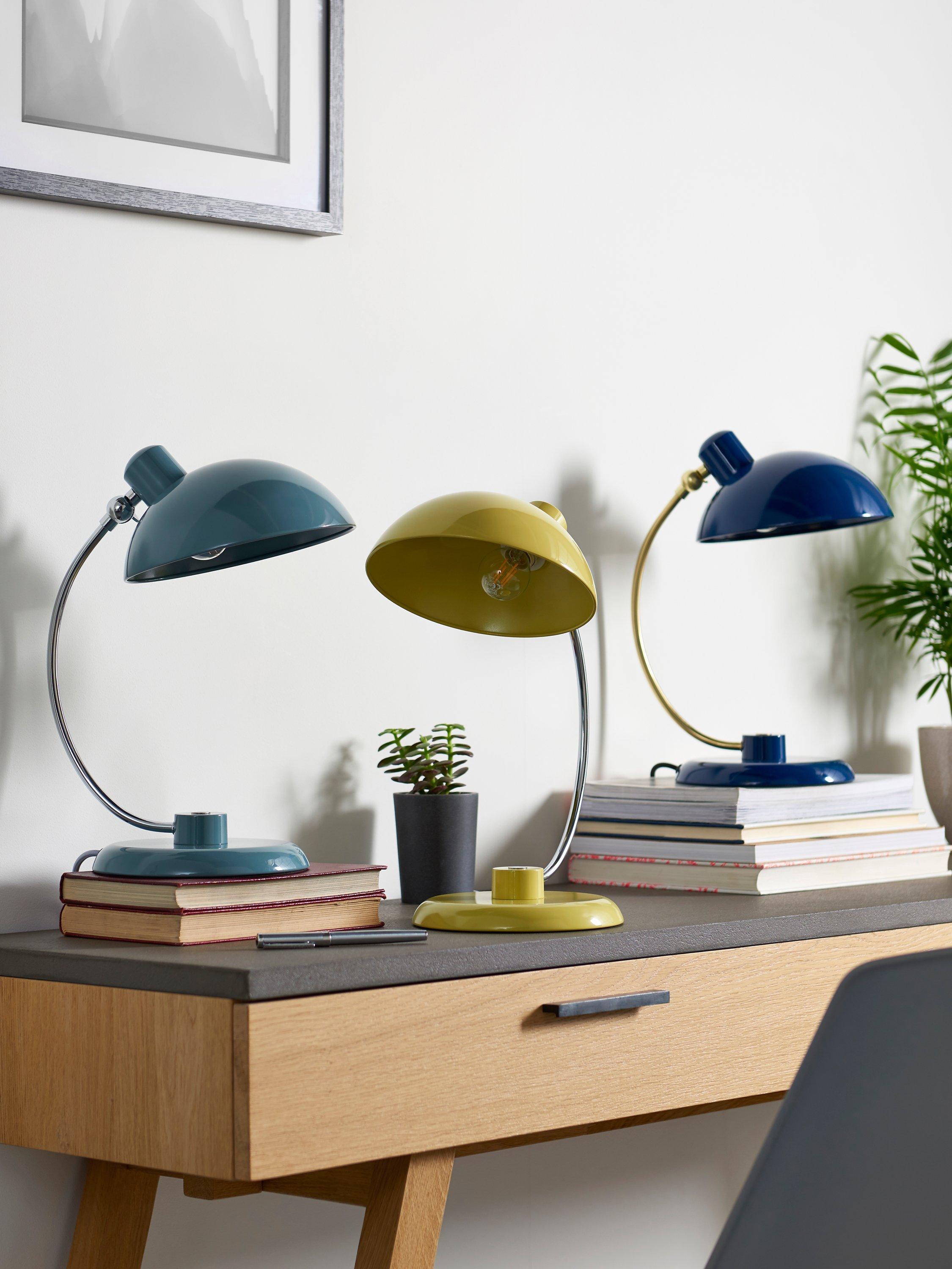 This modern desk lamp is made from painted steel and features mixed plated finishes. There's a touch on/touch off switch on the base and the wide, dome-shaped head can be adjusted to cast light where you need it. A functional design that will bring an accent of colour to your space.