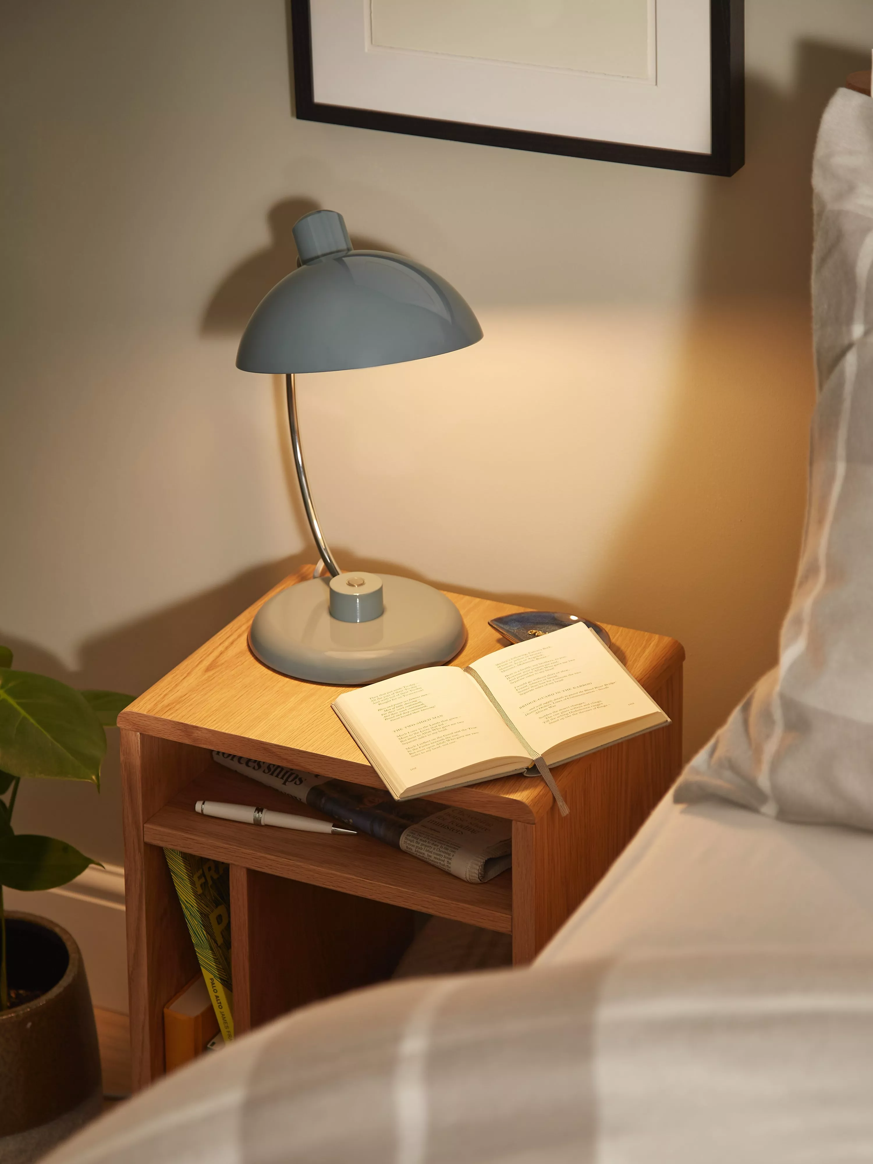 This modern desk lamp is made from painted steel and features mixed plated finishes. There's a touch on/touch off switch on the base and the wide, dome-shaped head can be adjusted to cast light where you need it. A functional design that will bring an accent of colour to your space.