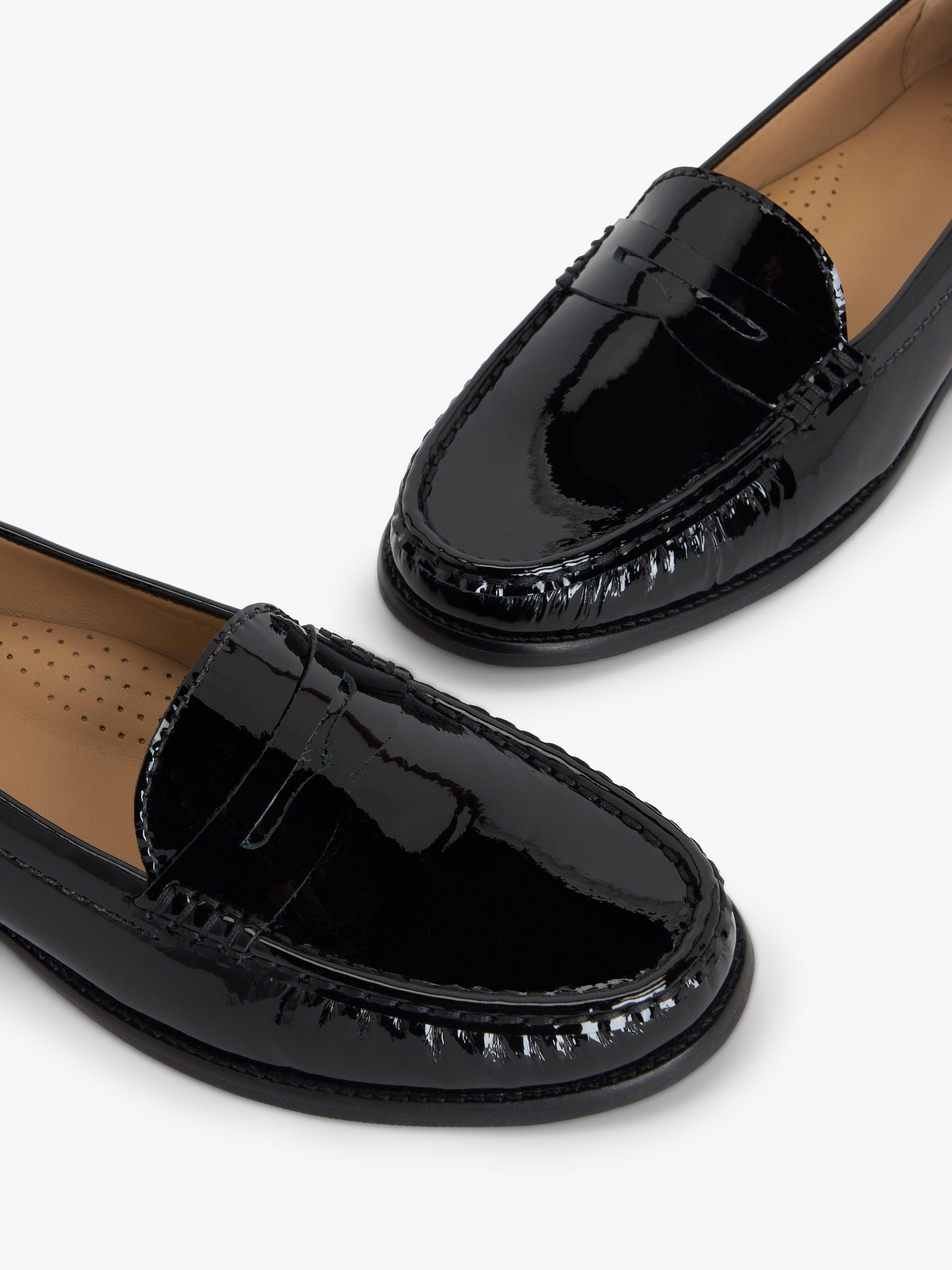 Designed as a beautiful classic leather loafer, our Pennie style has a smart patent finish and a low block heel.