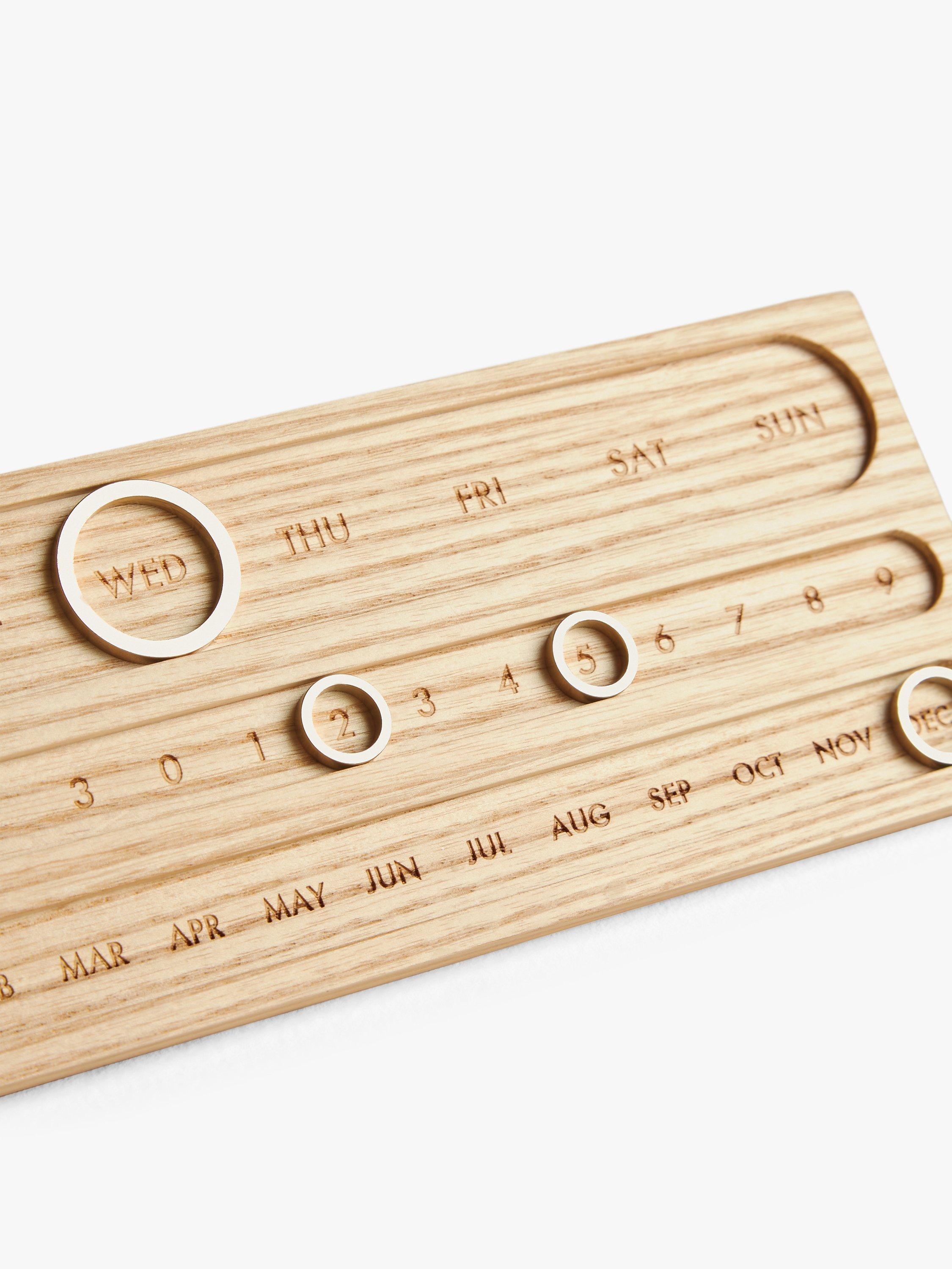 Made using ash wood which is known for its density, this desk calendar features a line for the day of the week as well as the date.