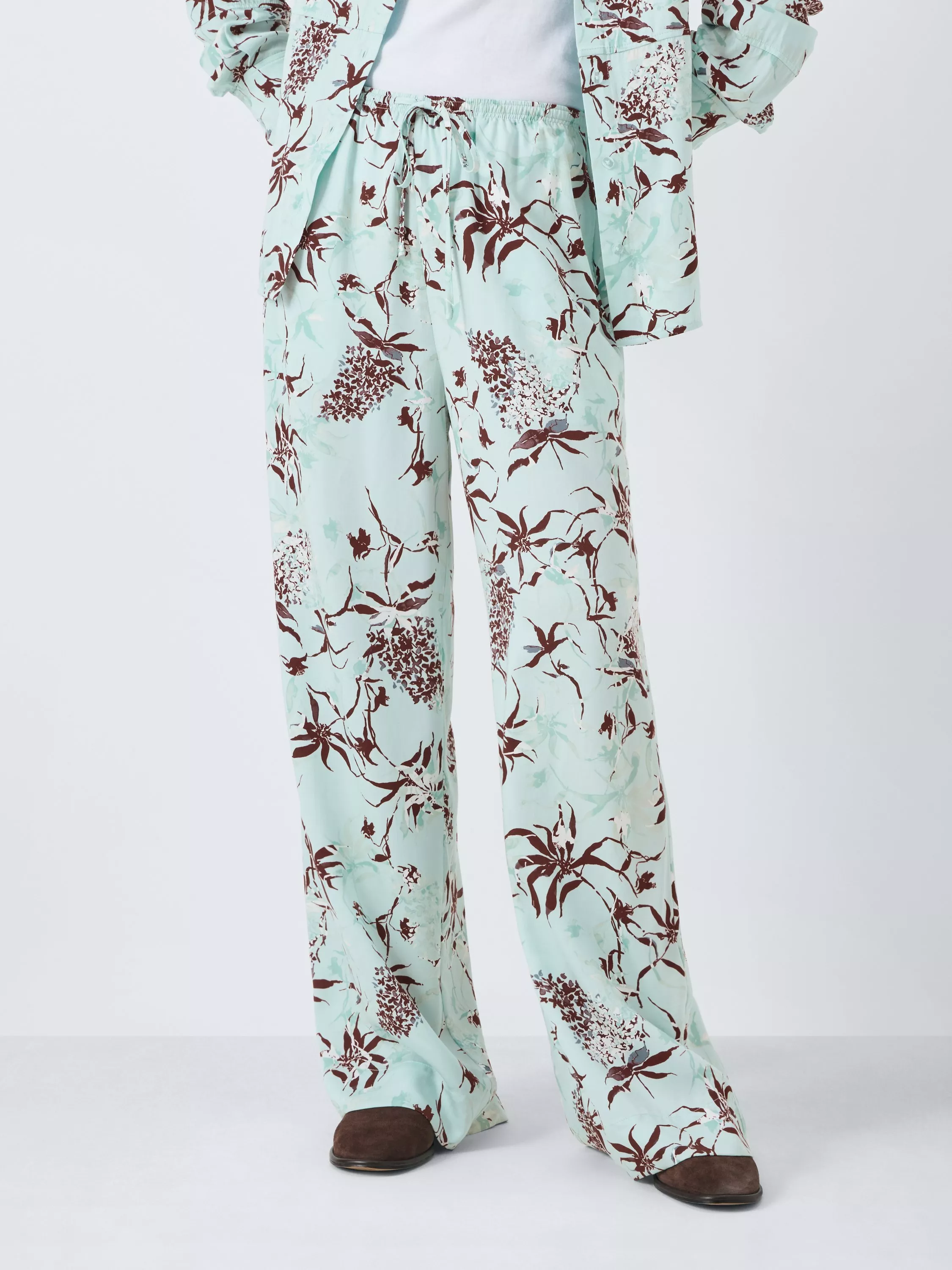 Statement dressing from the waist down, our Phlox Palm Print trousers feature a bold floral print against a light blue base. Cut in a relaxed pyjama style and made from 100% Tencel lyocell for high comfort, pair them with the matching shirt for a compelling co-ord.