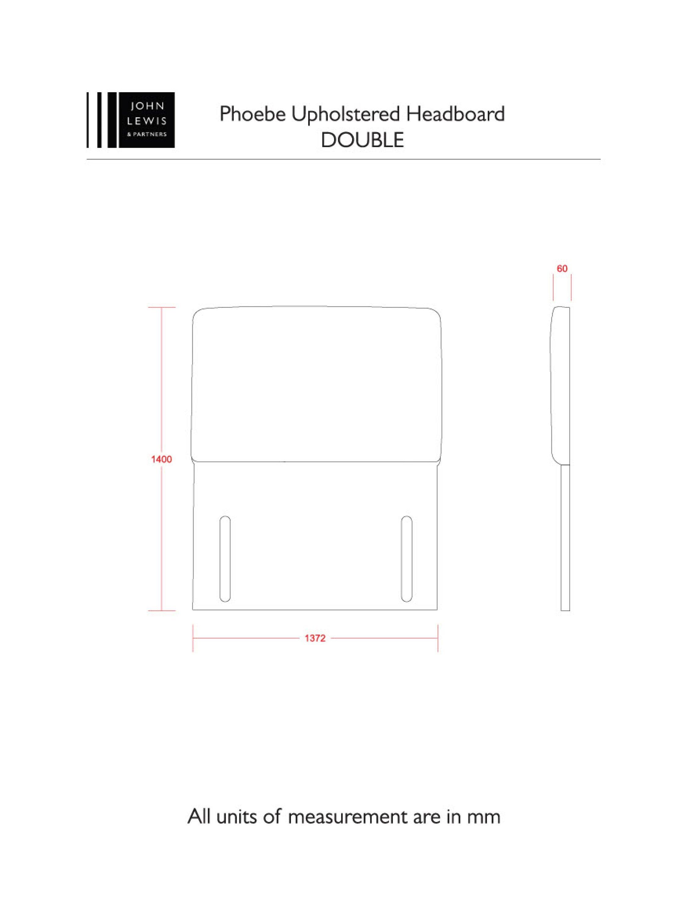 John LewisPhoebe Full Depth Upholstered Headboard, Double, Brushedweave Pewter