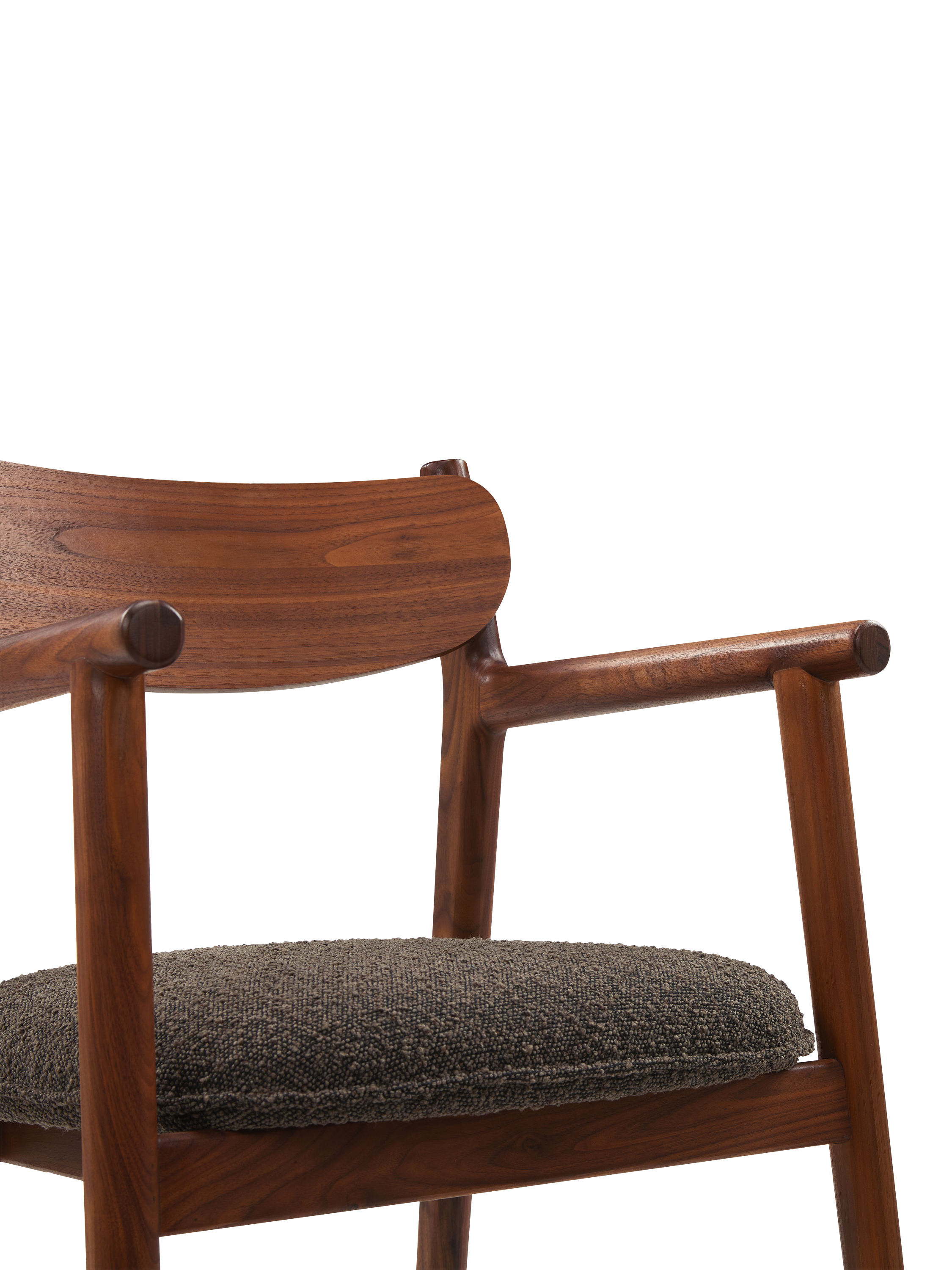 The Pierro dining chair features an ergonomic design with a curved backrest and padded seat for comfort.
