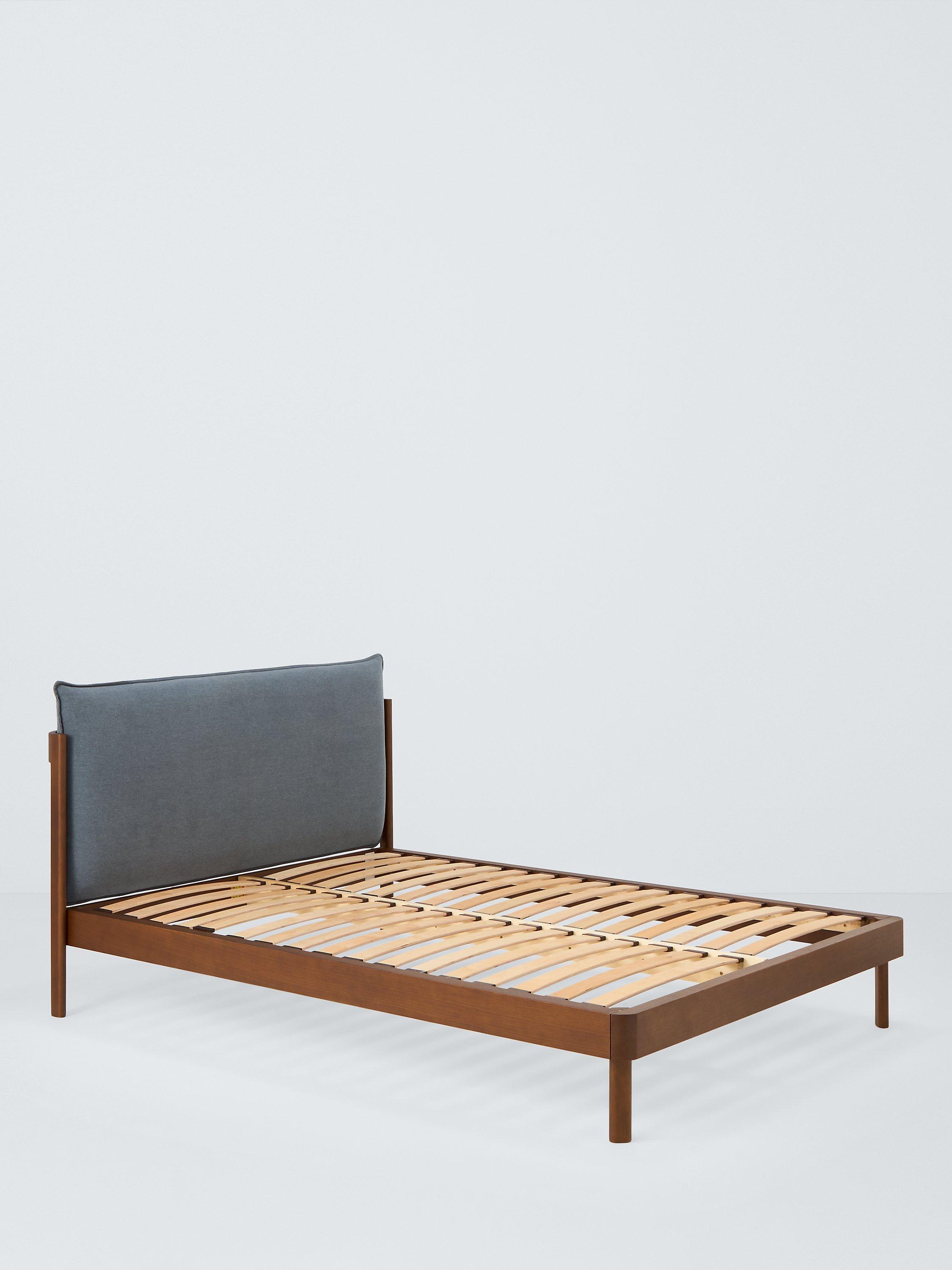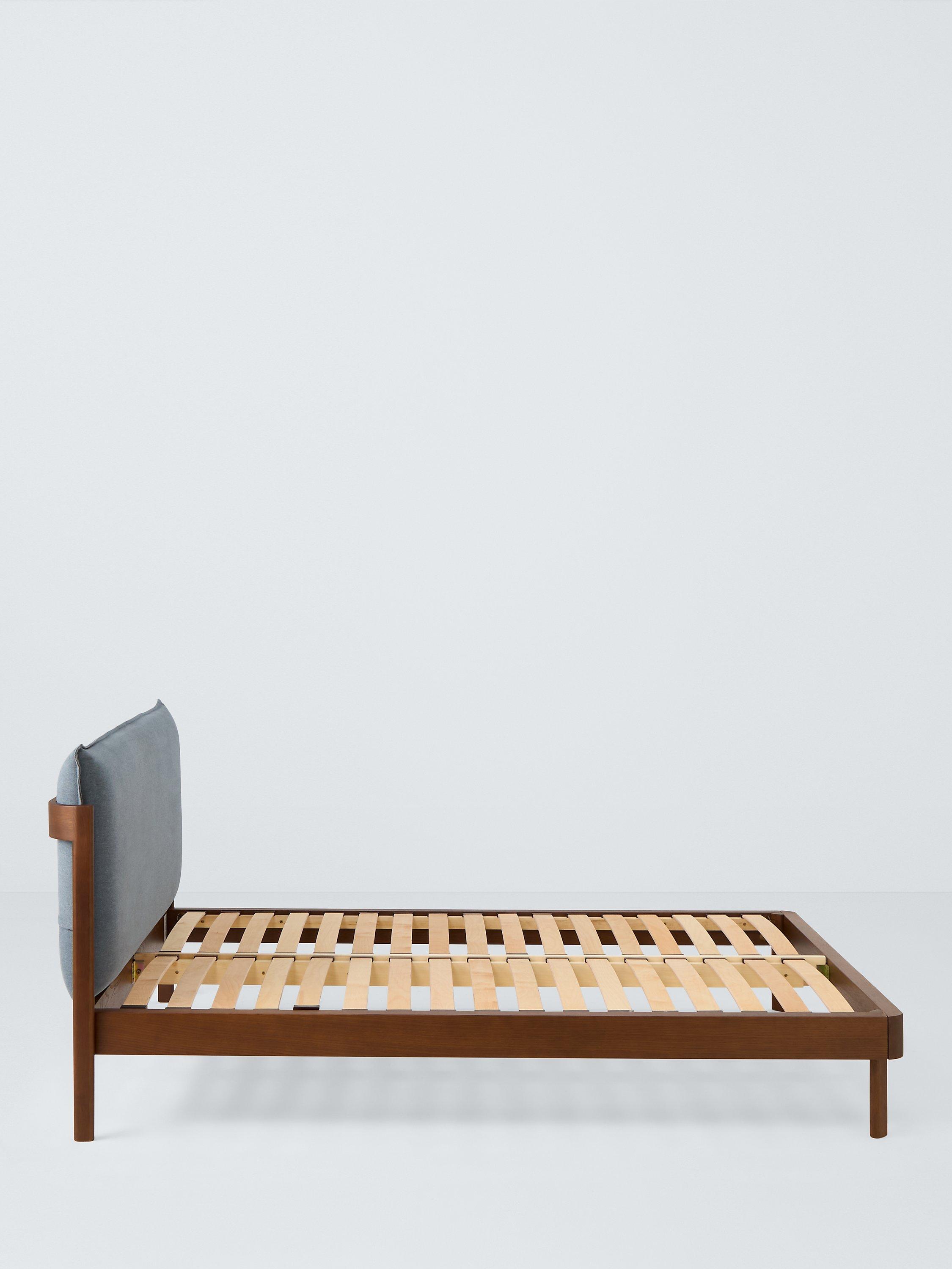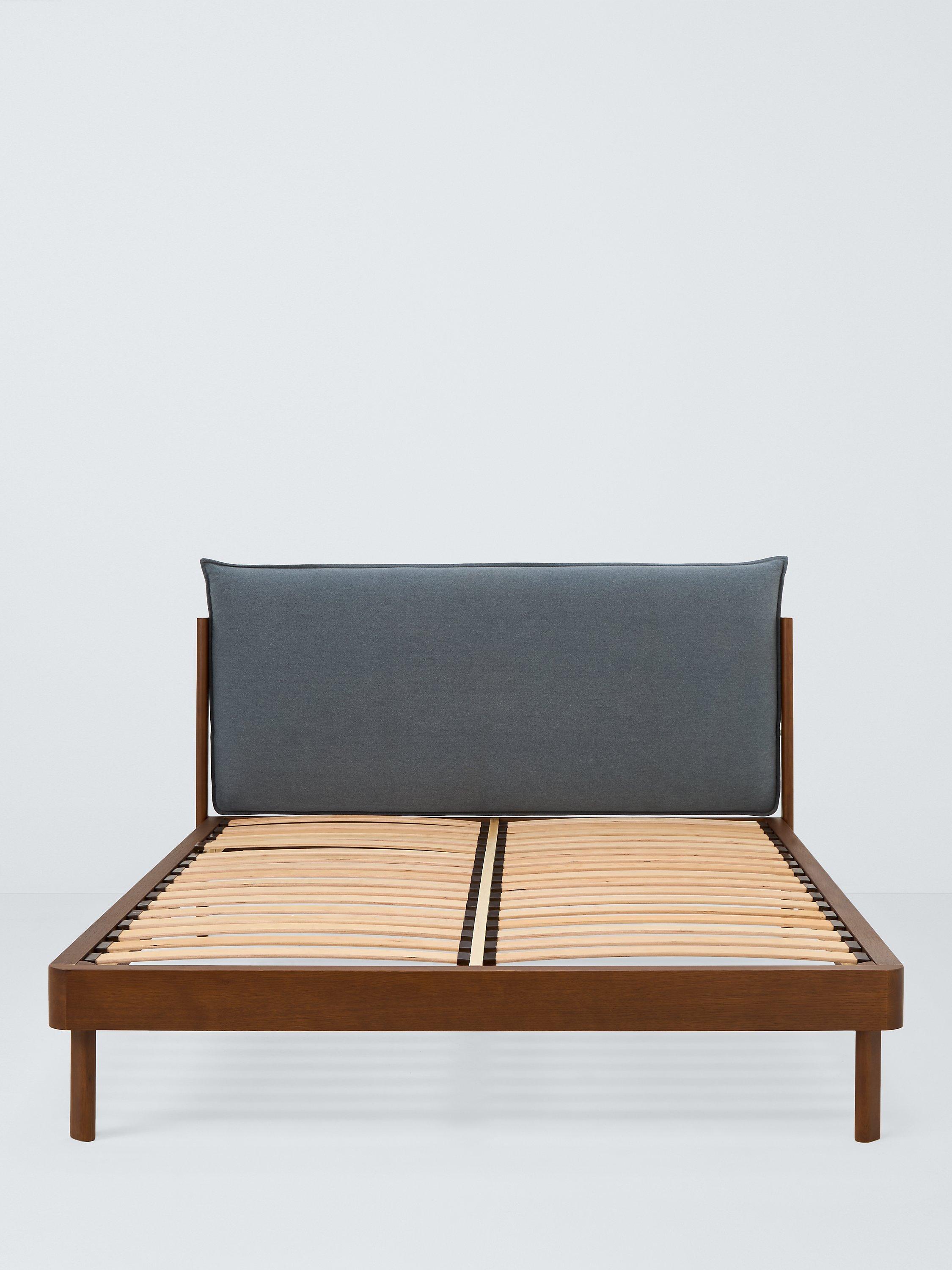 Designed for comfort. Our Pillow bed frame is built from hard-wearing solid oak and features a soft, cushioned headboard. The look is relaxed and contemporary, and we've added sprung slats to the base to provide additional support to you and your mattress. Coated in a matt lacquer for durability and available in a natural or dark wood stain.