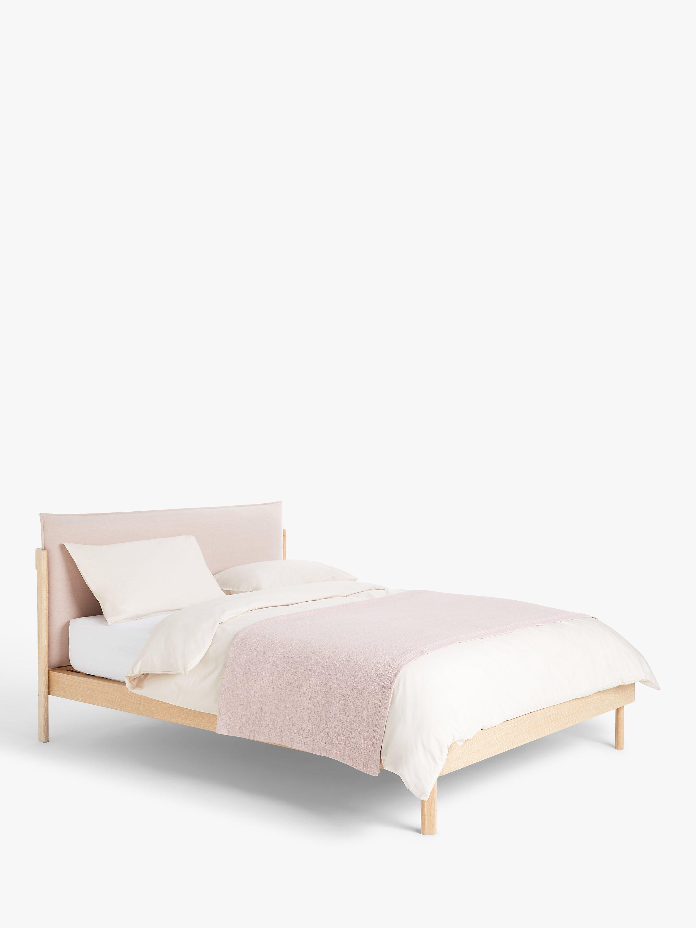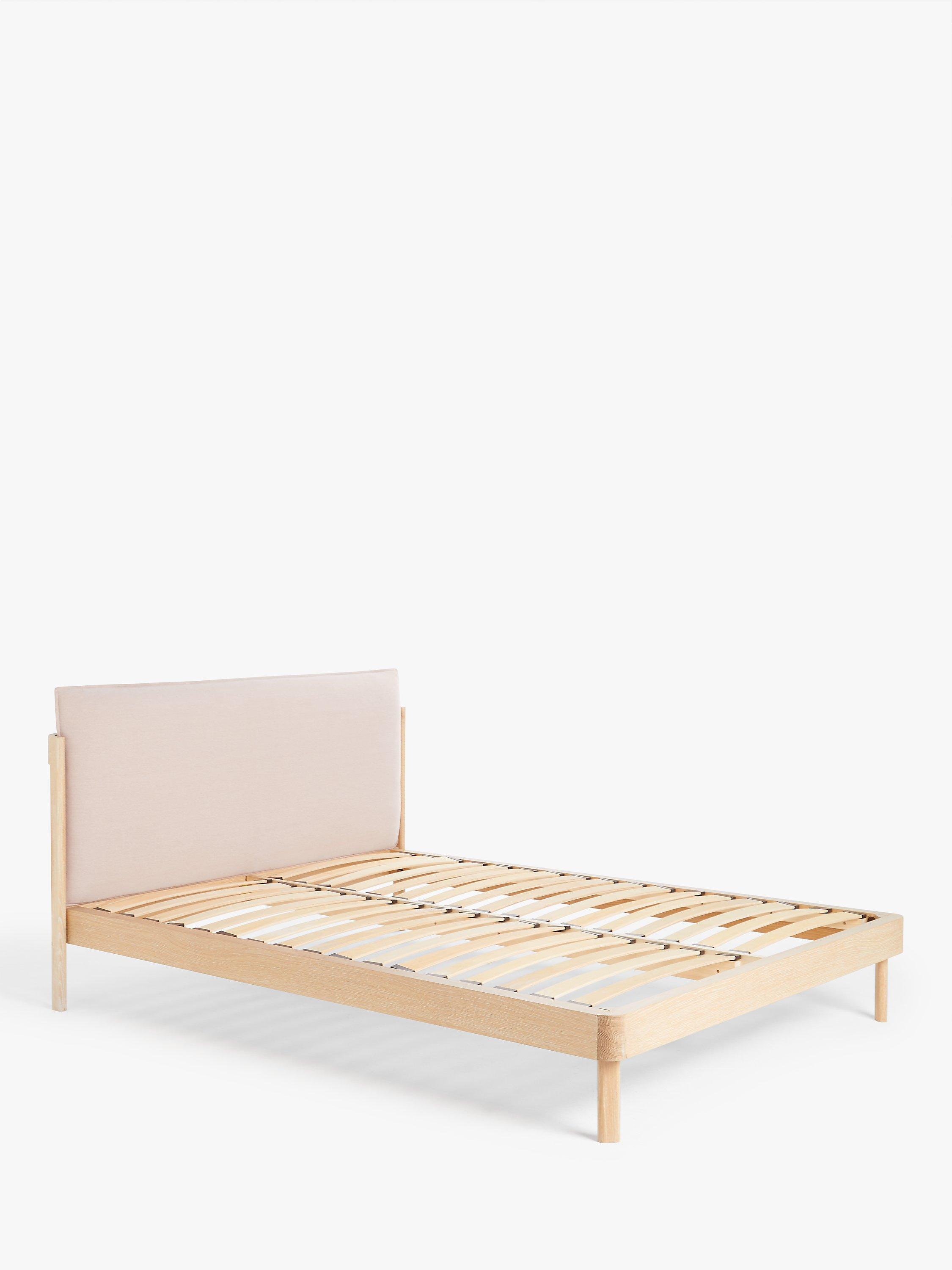 Designed for comfort. Our Pillow bed frame is built from hard-wearing solid oak and features a soft, cushioned headboard. The look is relaxed and contemporary, and we've added sprung slats to the base to provide additional support to you and your mattress. Coated in a matt lacquer for durability and available in a natural or dark wood stain.