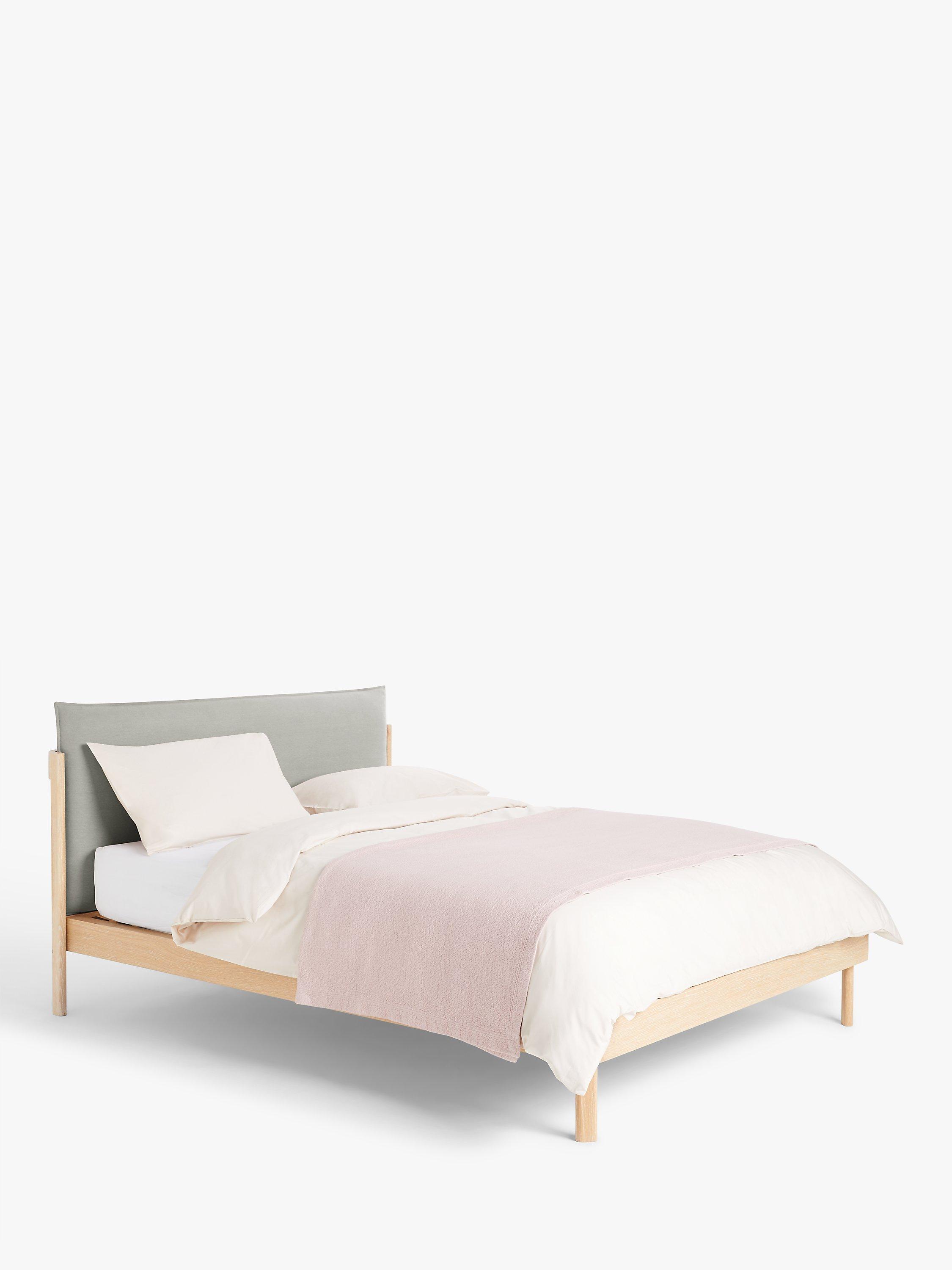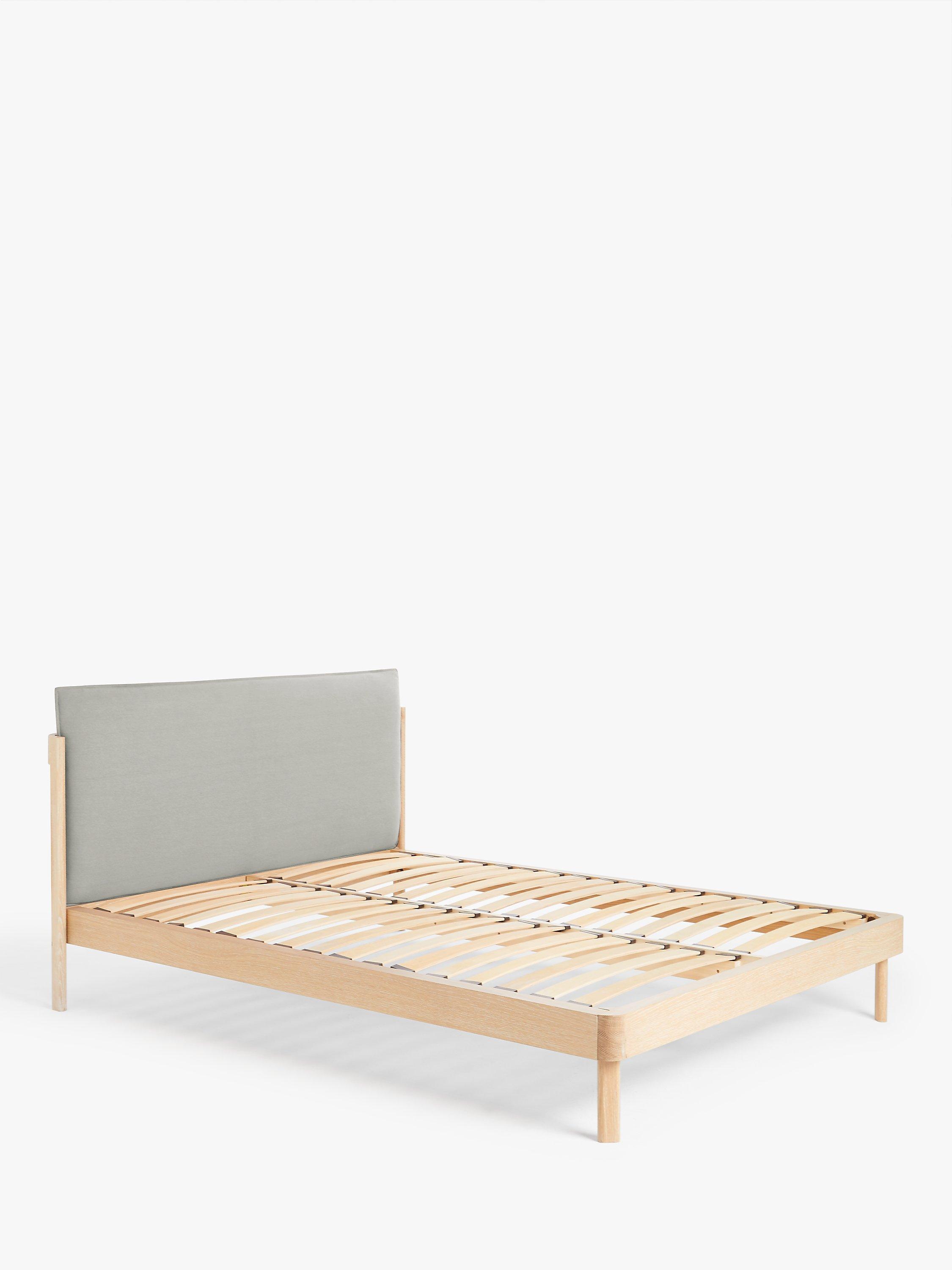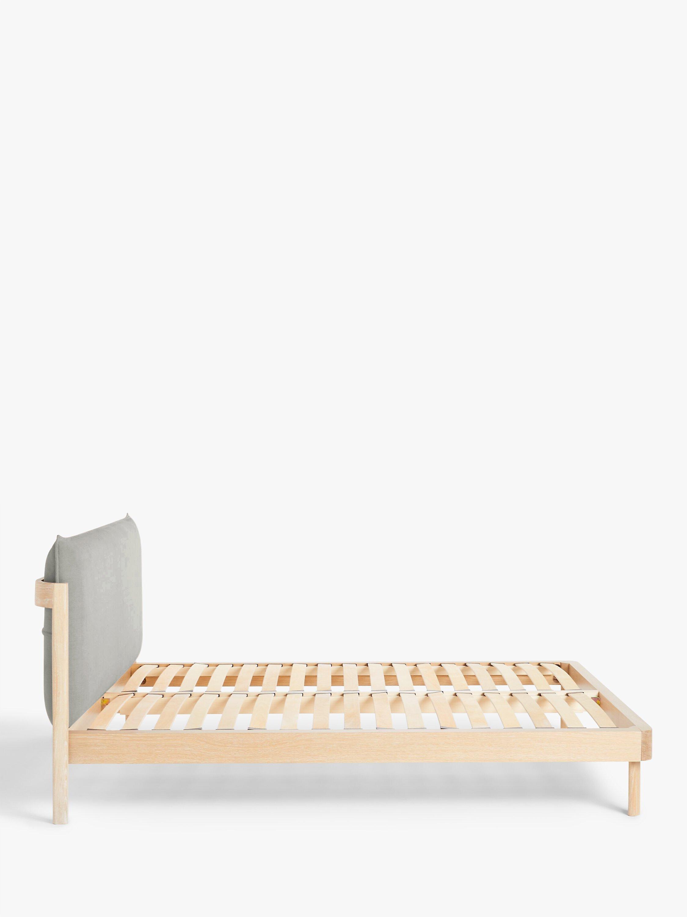 Designed for comfort. Our Pillow bed frame is built from hard-wearing solid oak and features a soft, cushioned headboard. The look is relaxed and contemporary, and we've added sprung slats to the base to provide additional support to you and your mattress. Coated in a matt lacquer for durability and available in a natural or dark wood stain.