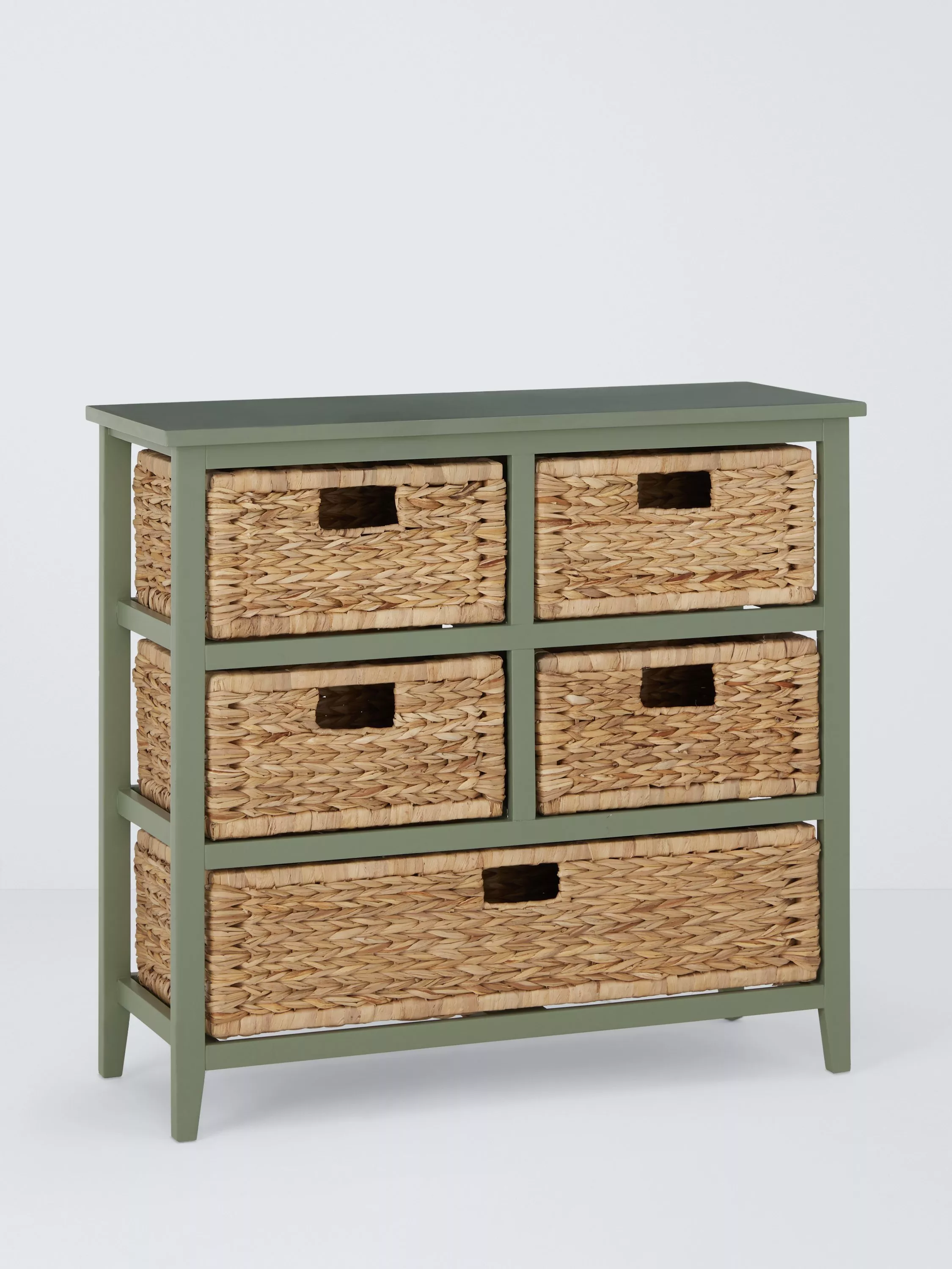 A handmade, 5-drawer pine and MDF storage unit with drawers woven from bulrush. It's attractive enough to use in the bathroom, utility room or even the bedroom and is perfect for storing anything from towels and linens to toiletries.