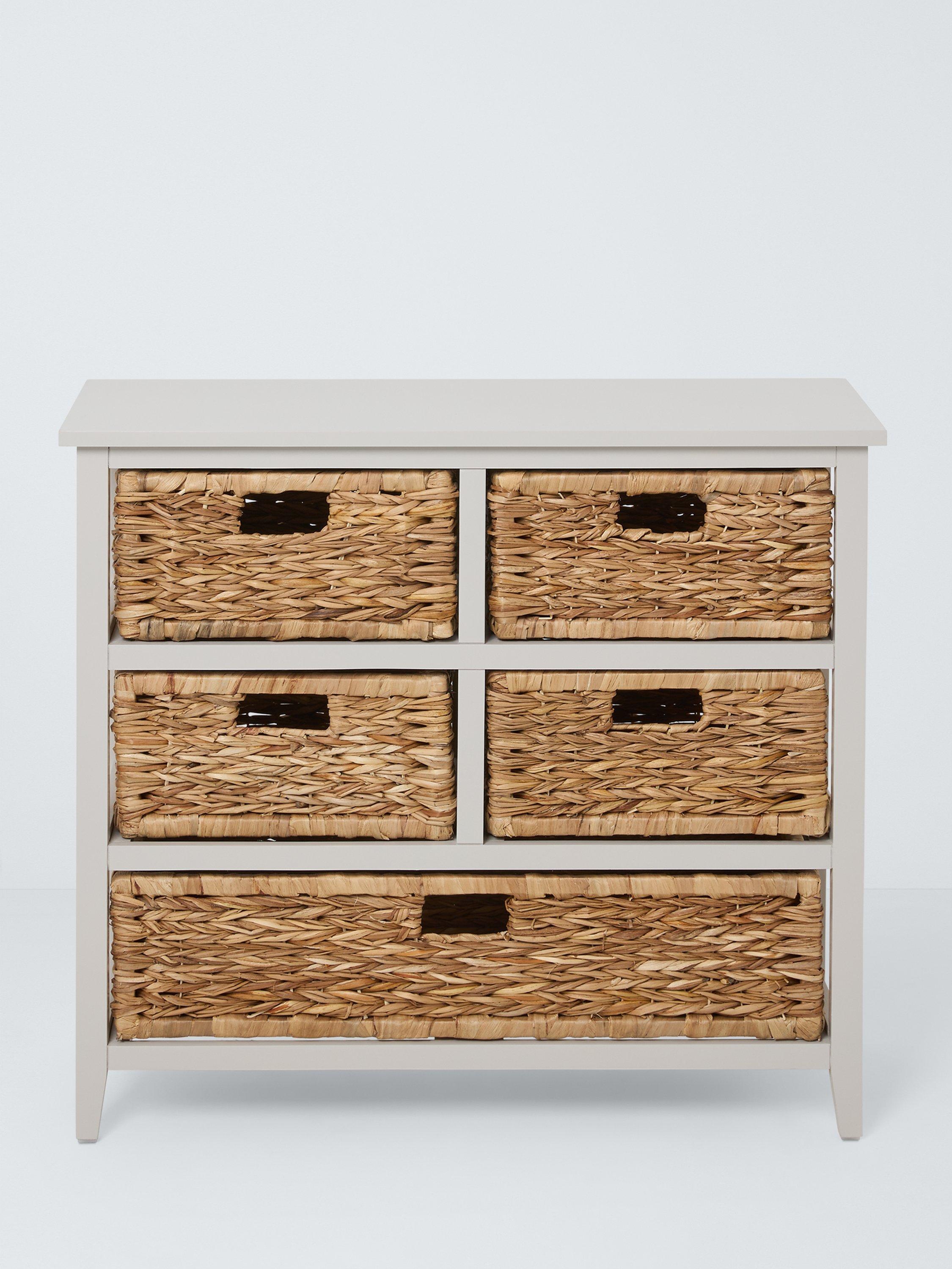 A handmade, 5-drawer pine and MDF storage unit with drawers woven from Bulrush. It's attractive enough to use in the bathroom, utility room or even the bedroom and is perfect for storing anything from towels and linens to toiletries.