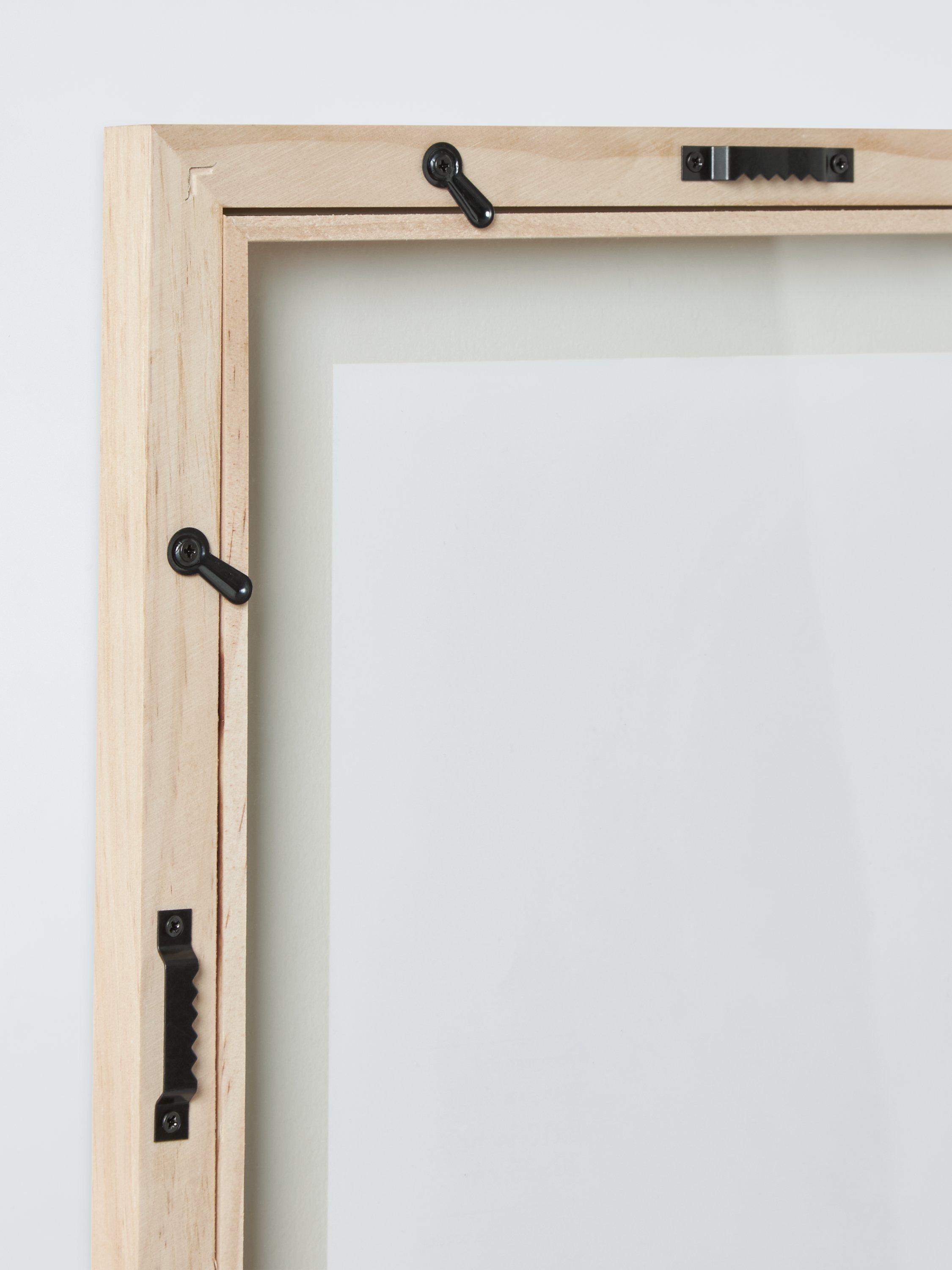 A beautiful pine wood outer frame holds a double glass insert so that your picture is suspended in this floating frame. This allows you to frame any size image within the overall glass size, however small. This design is ideal for framing unusual objects like leaves and pressed flowers as well as standard prints.
