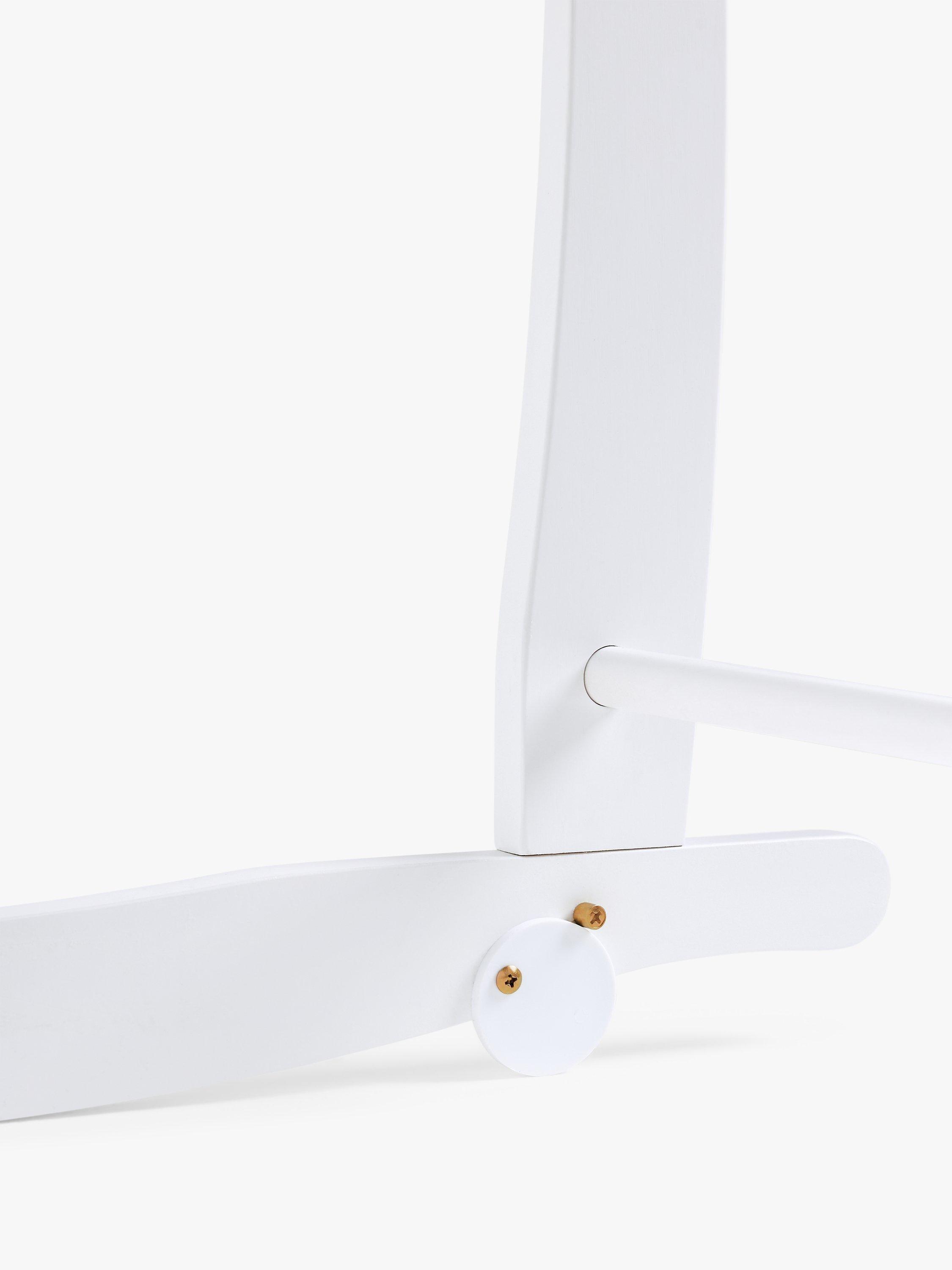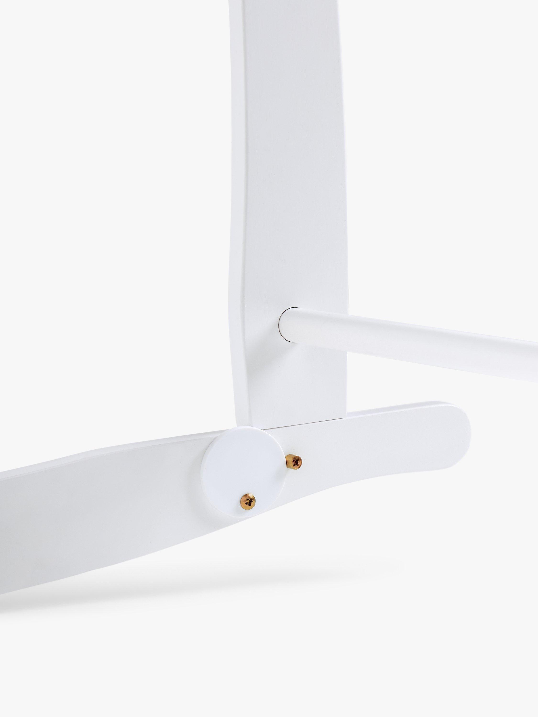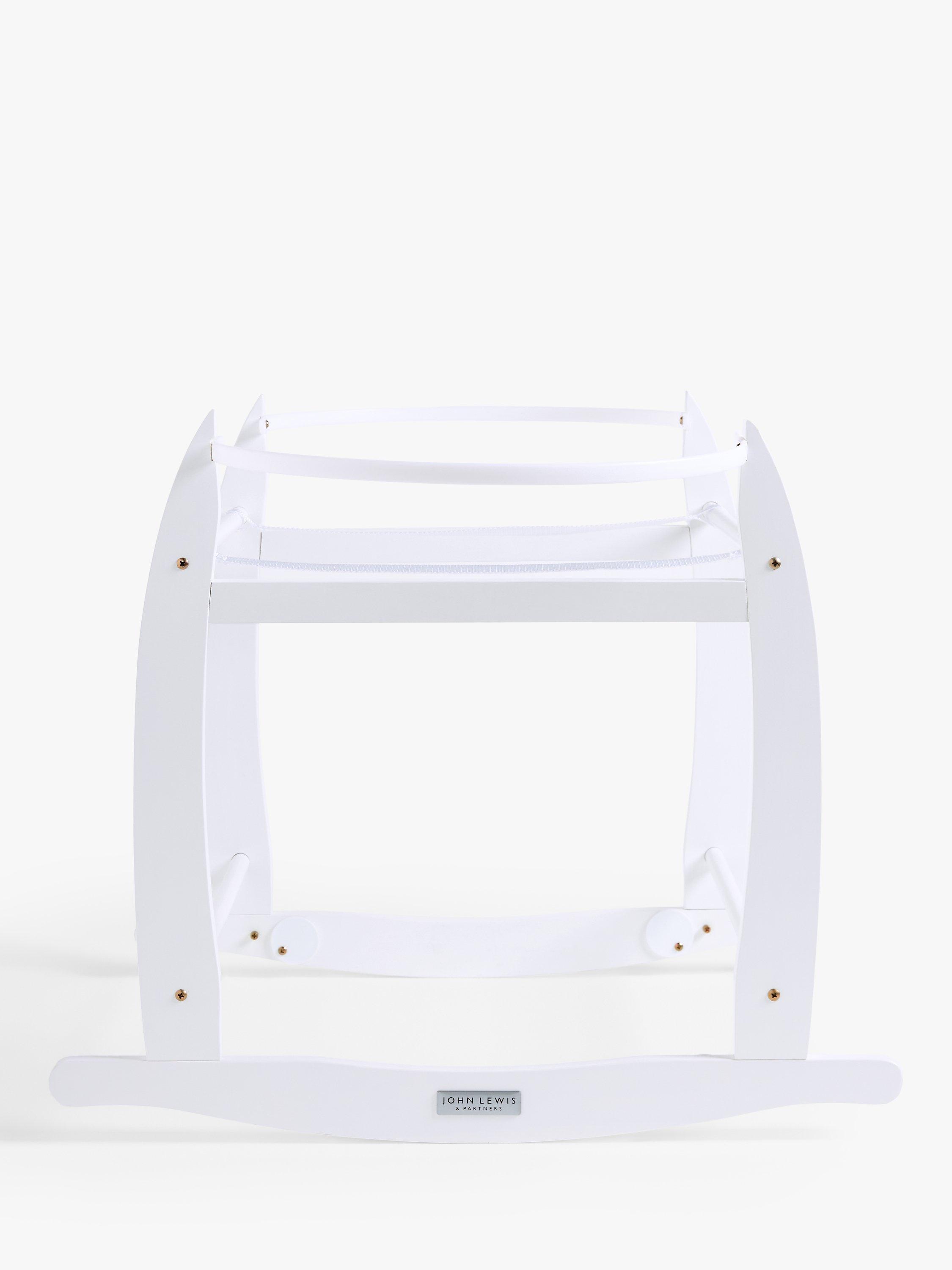 This Moses basket stand is made from solid pinewood and has a natural finish. The stand features curved legs that allow you to rock your little one to sleep and a safety railing at the top and bottom.