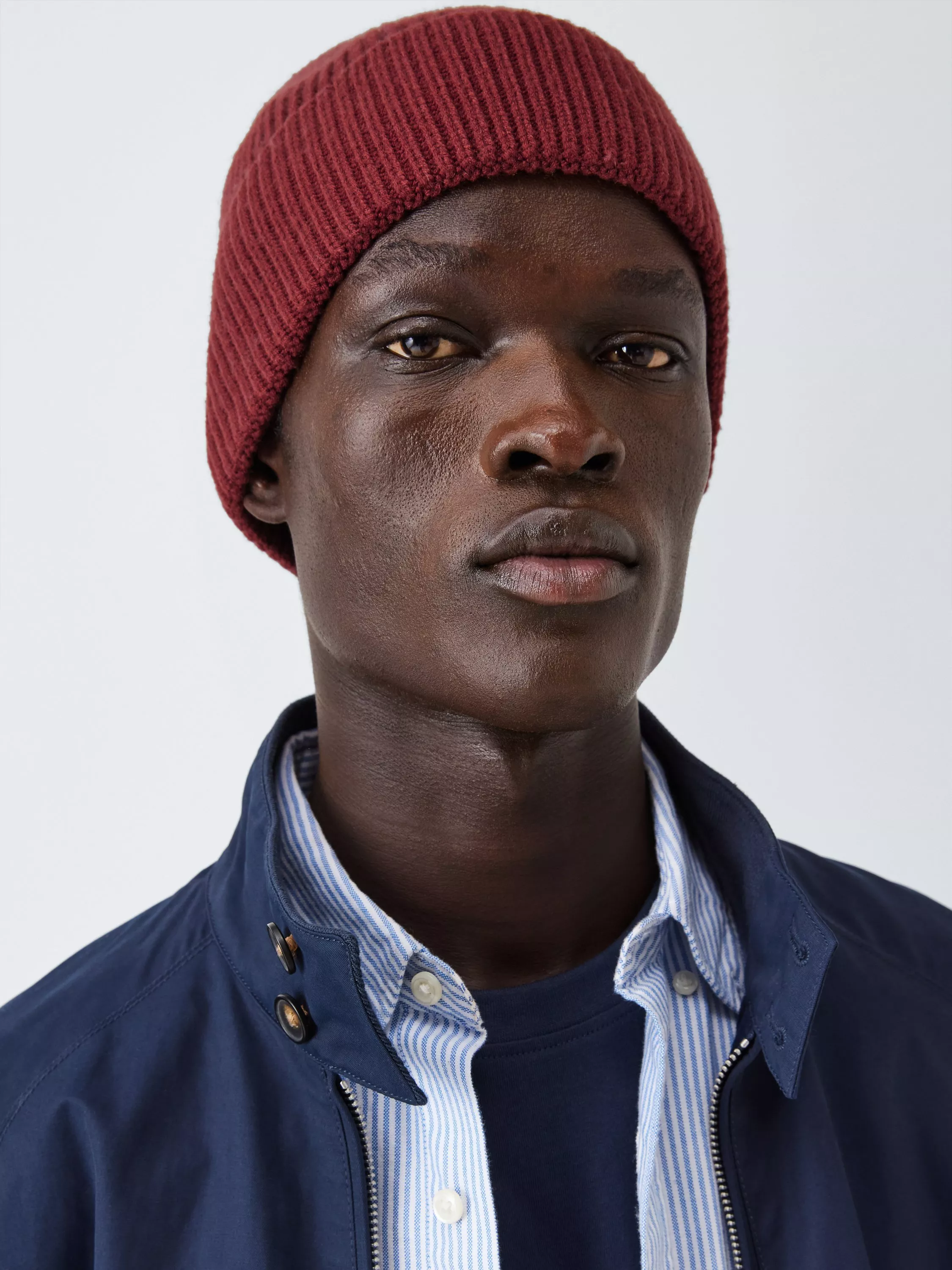 A classic beanie with a ribbed structure and the usual turn up that allows it to be worn as you see fit.