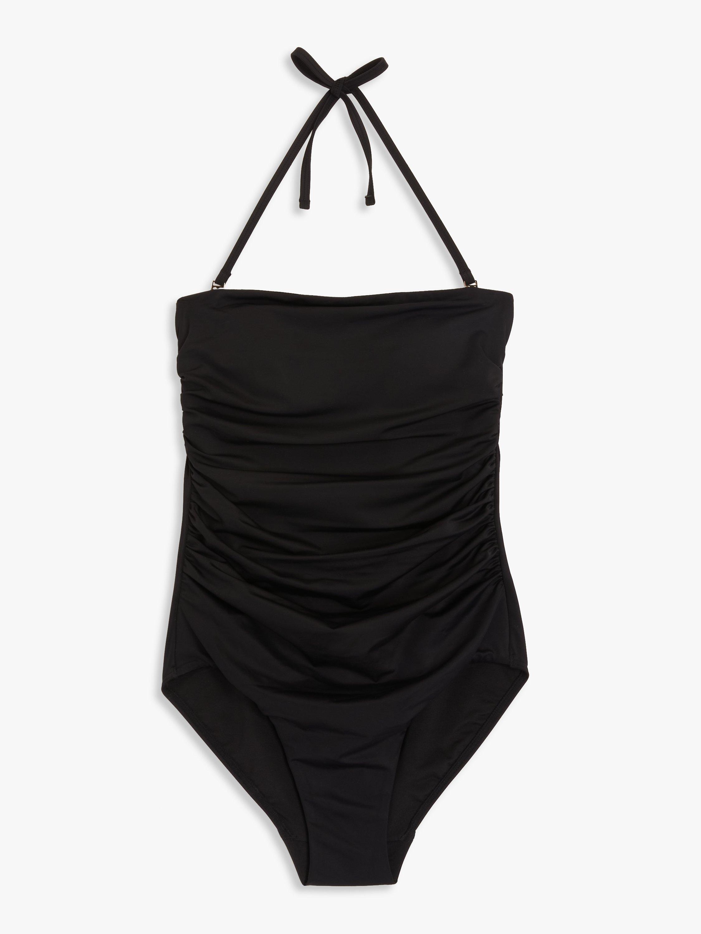 Our plain bandeau swimsuit has ruching across the tummy that gives medium shaping control, helping give you a little confidence boost if you feel you need it (not that you do). It comes with detachable straps so if you want more support for swimming you can wear it as a halterneck and ditch the straps when you're lounging.