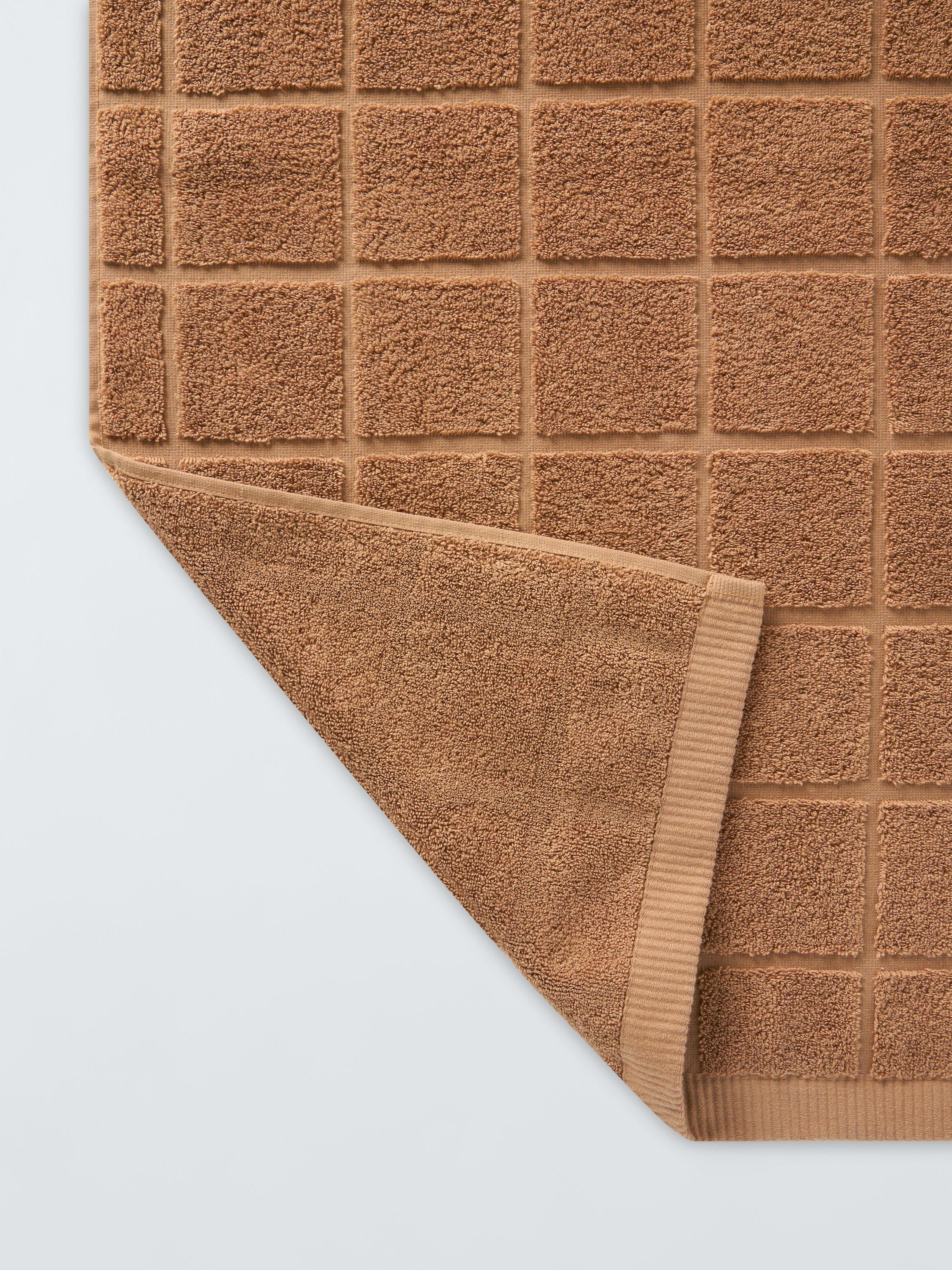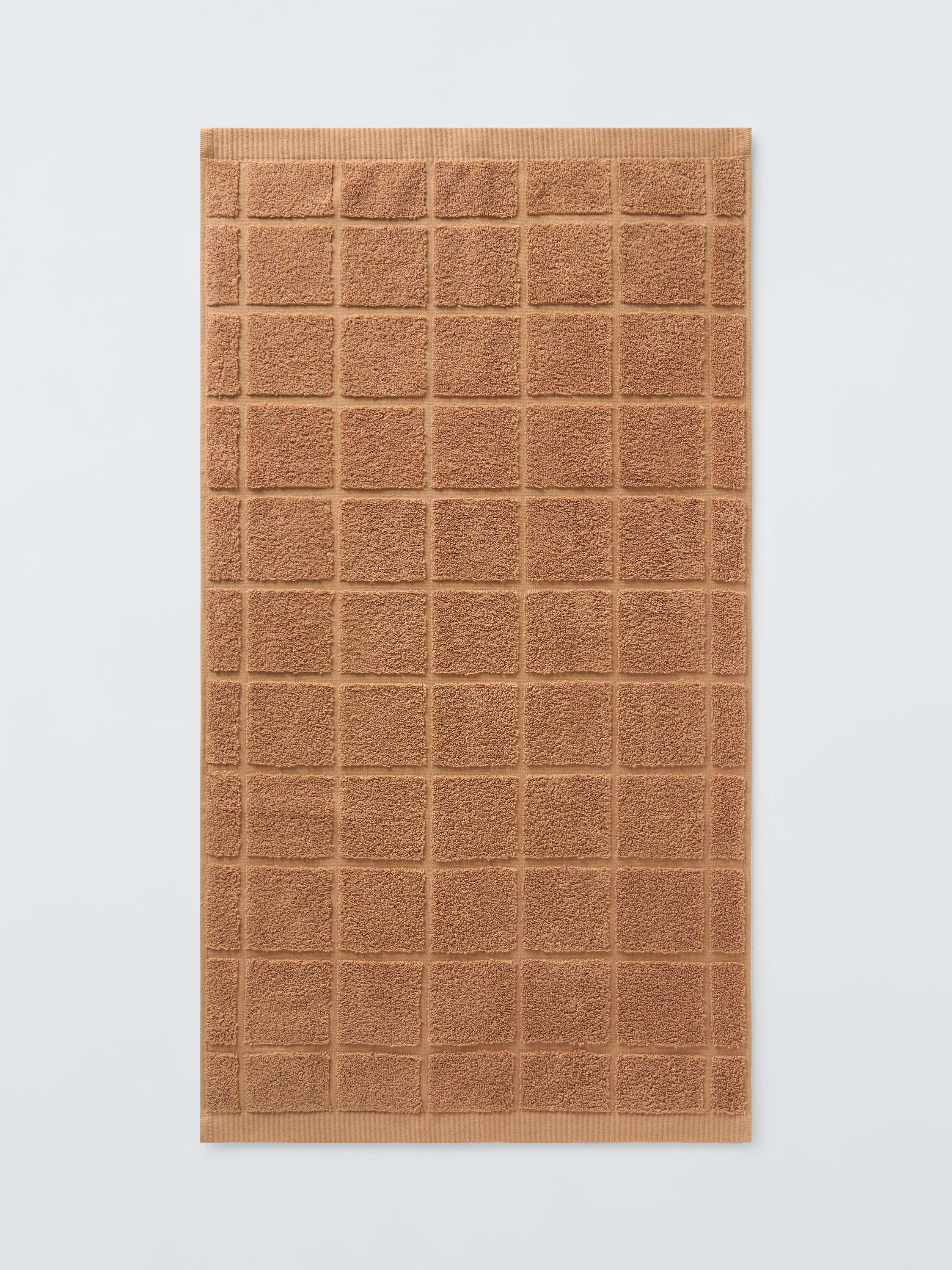 Plain-coloured towels with soft, looped pile squares on one side to change up your bathroom style.