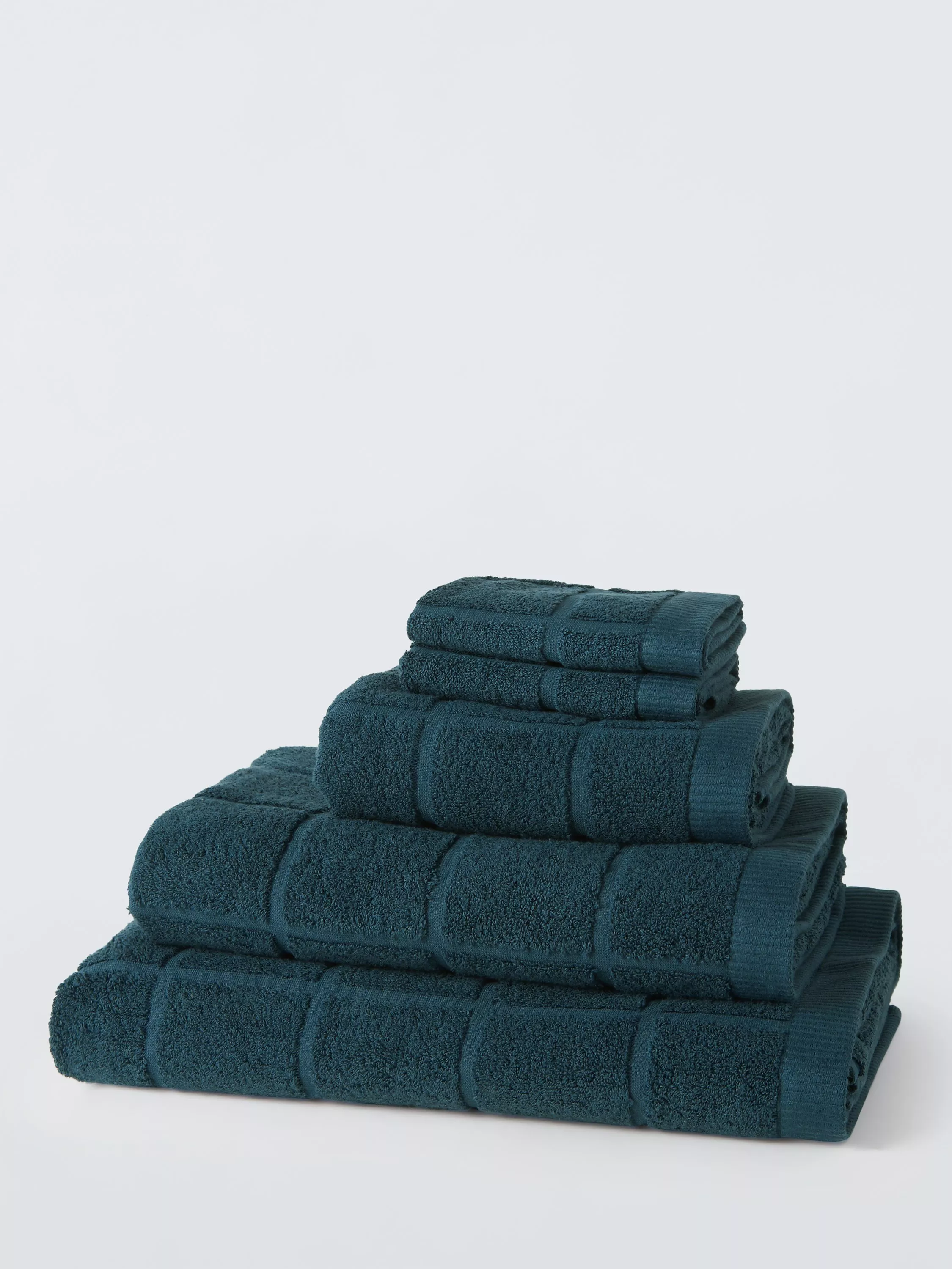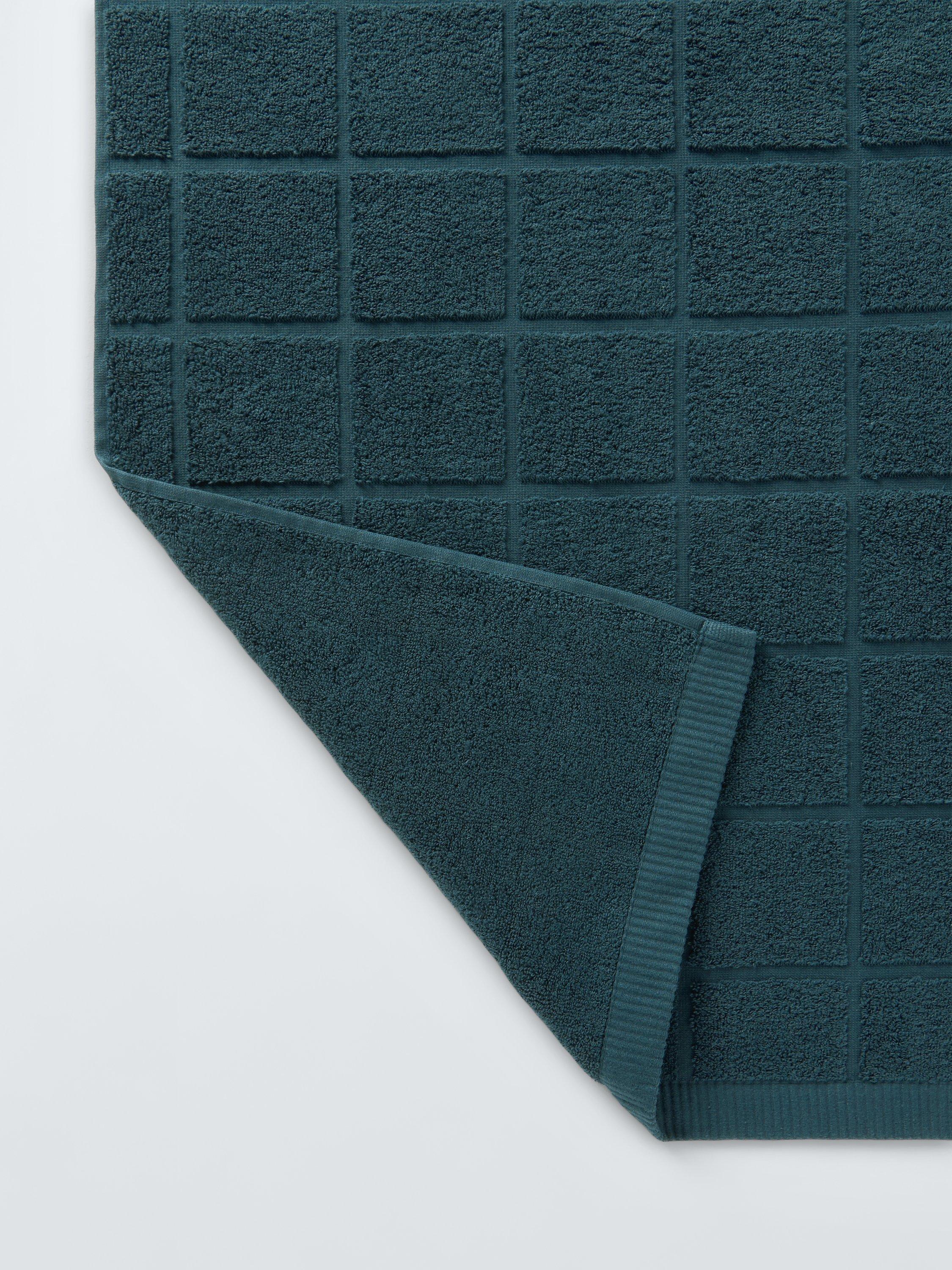 Plain-coloured towels with soft, looped pile squares on one side to change up your bathroom style.