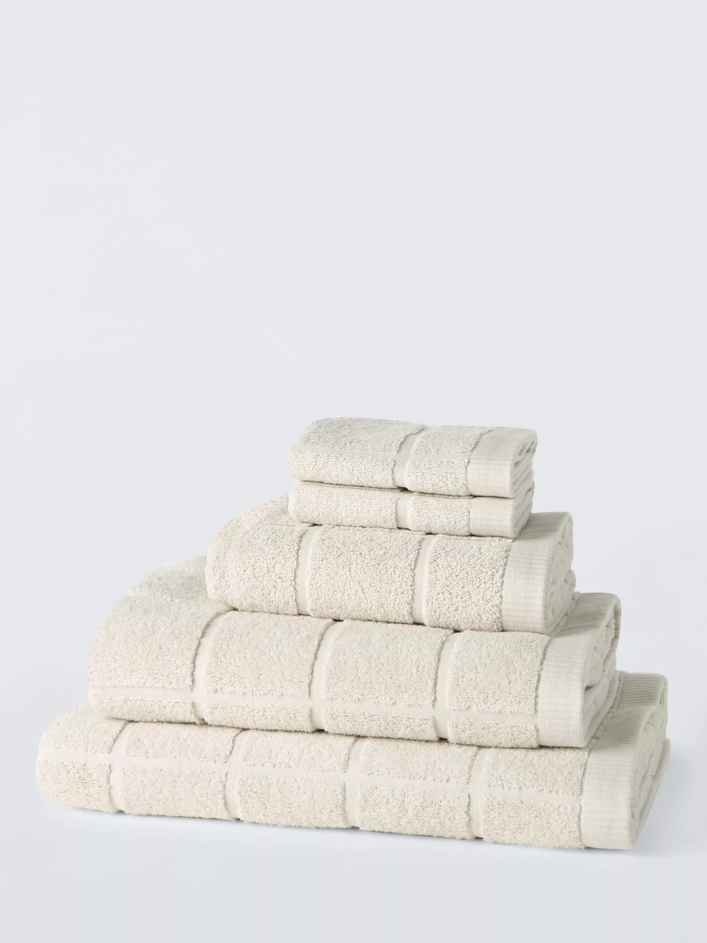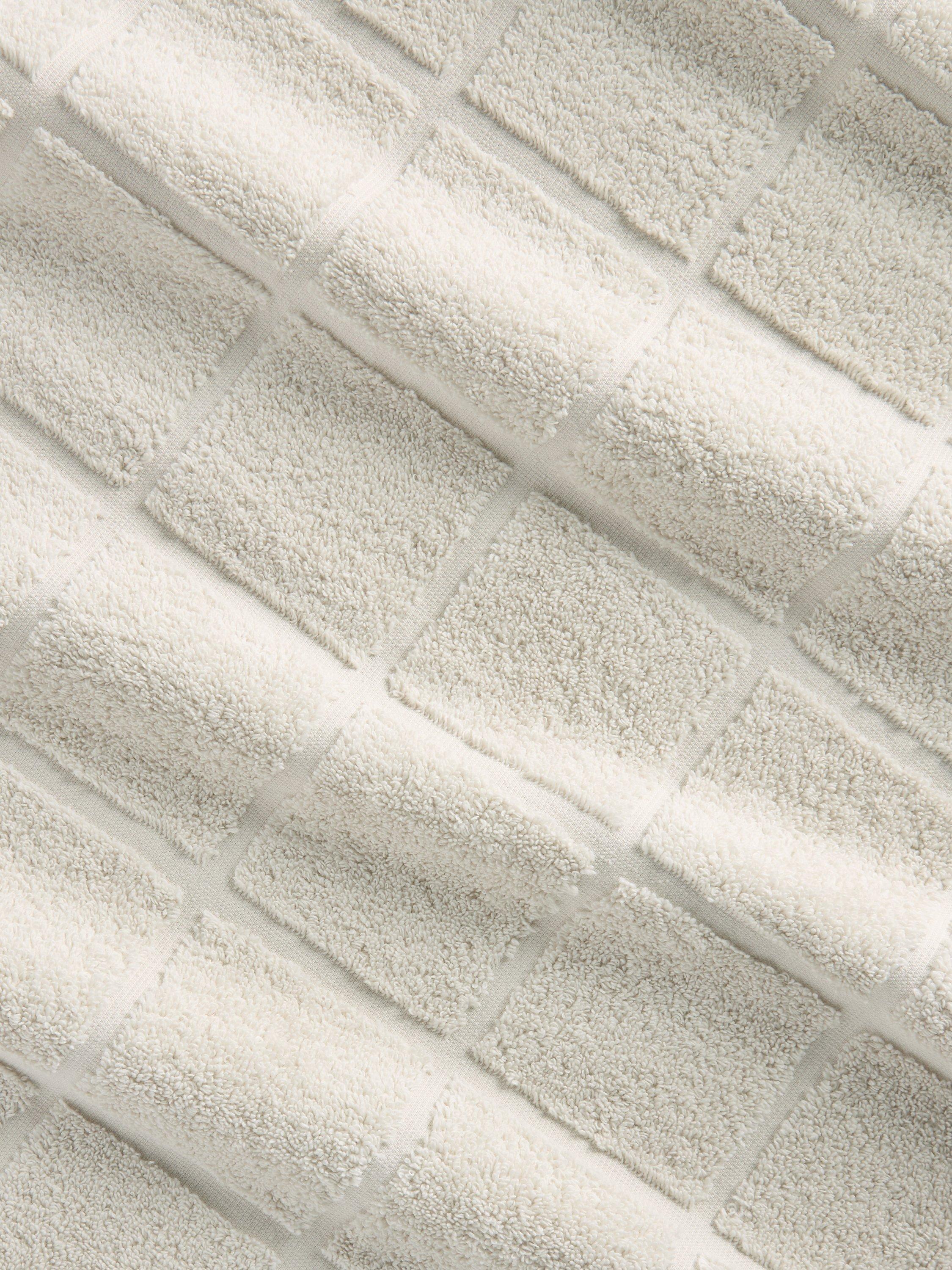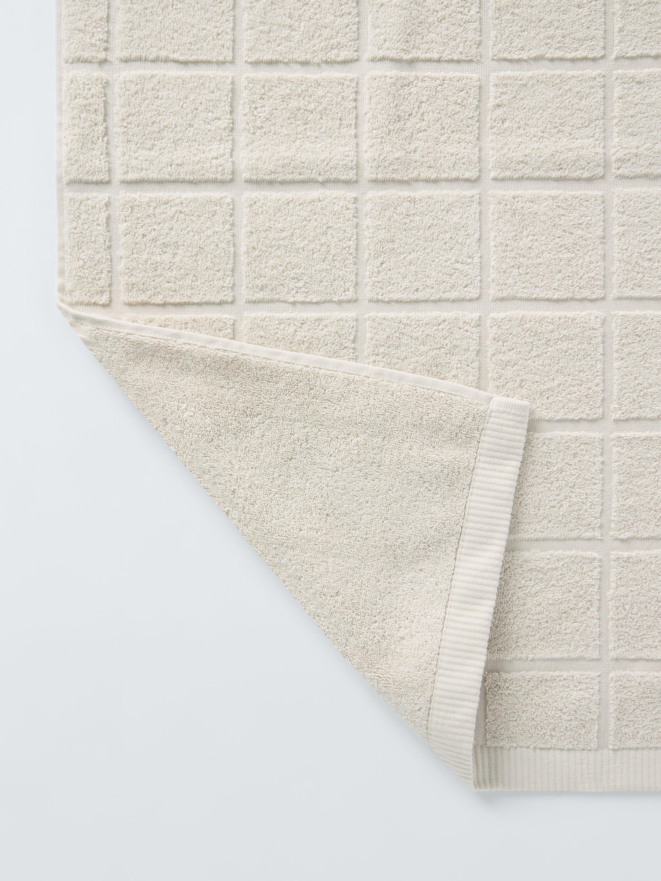 Plain-coloured towels with soft, looped pile squares on one side to change up your bathroom style.
