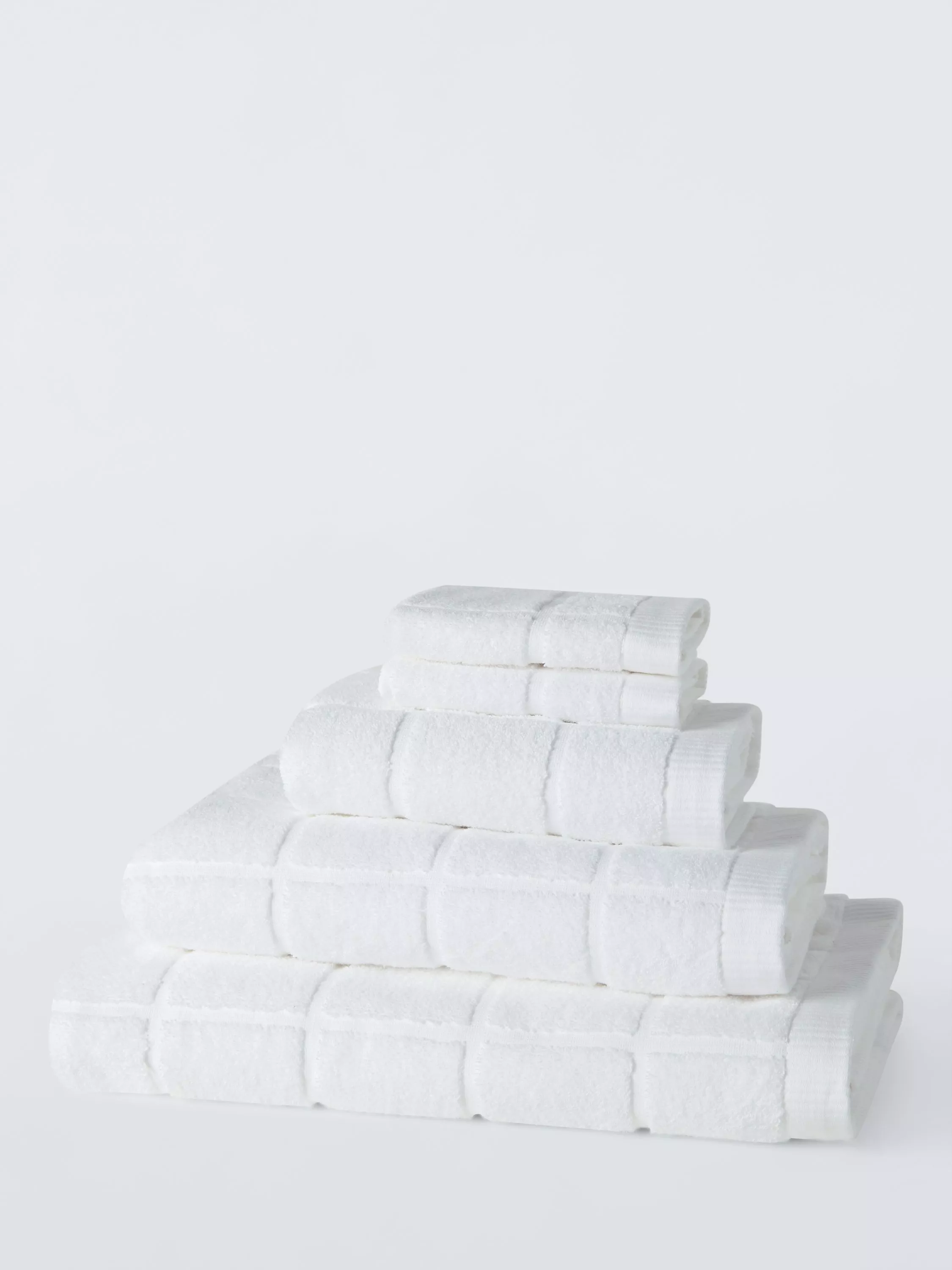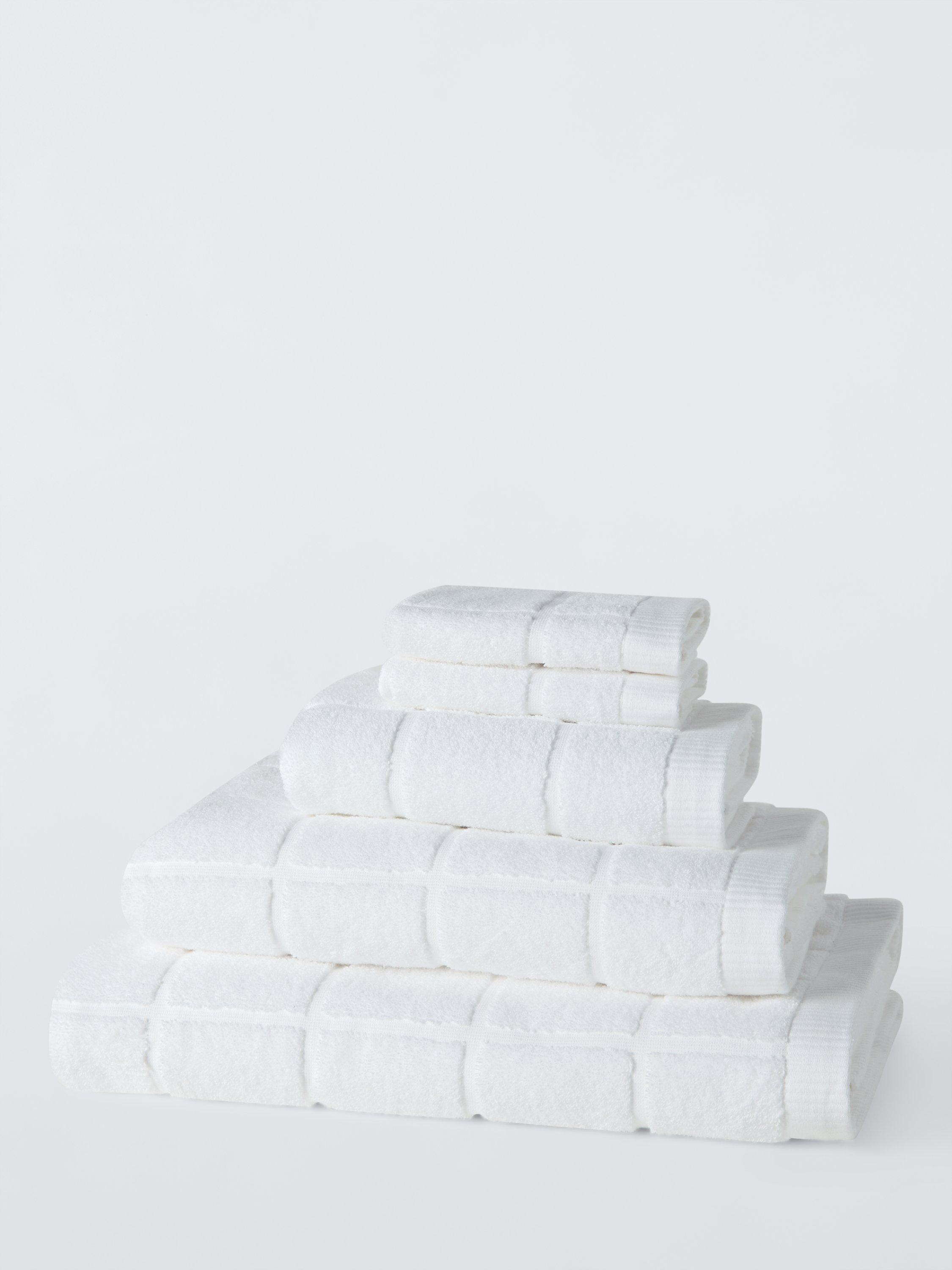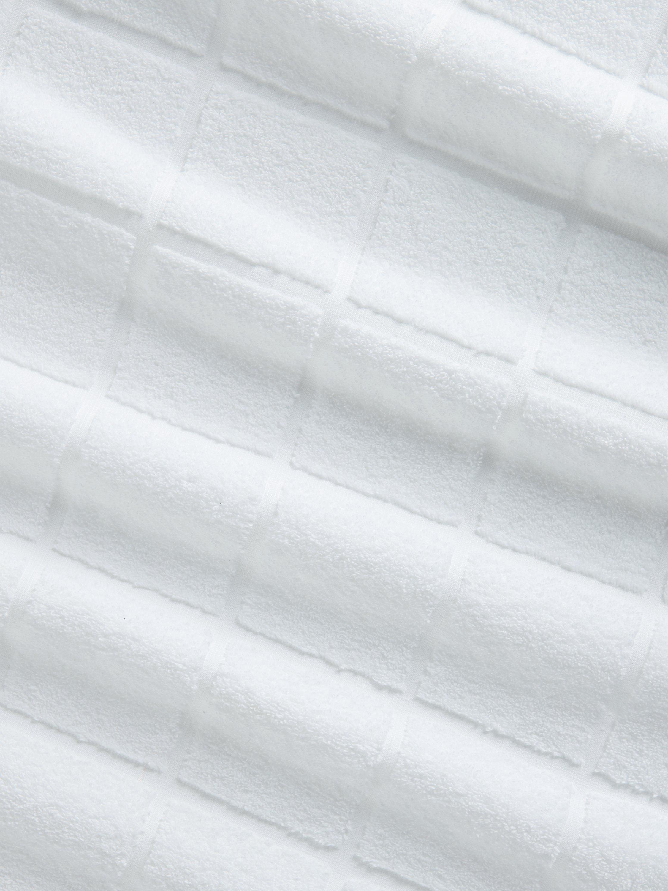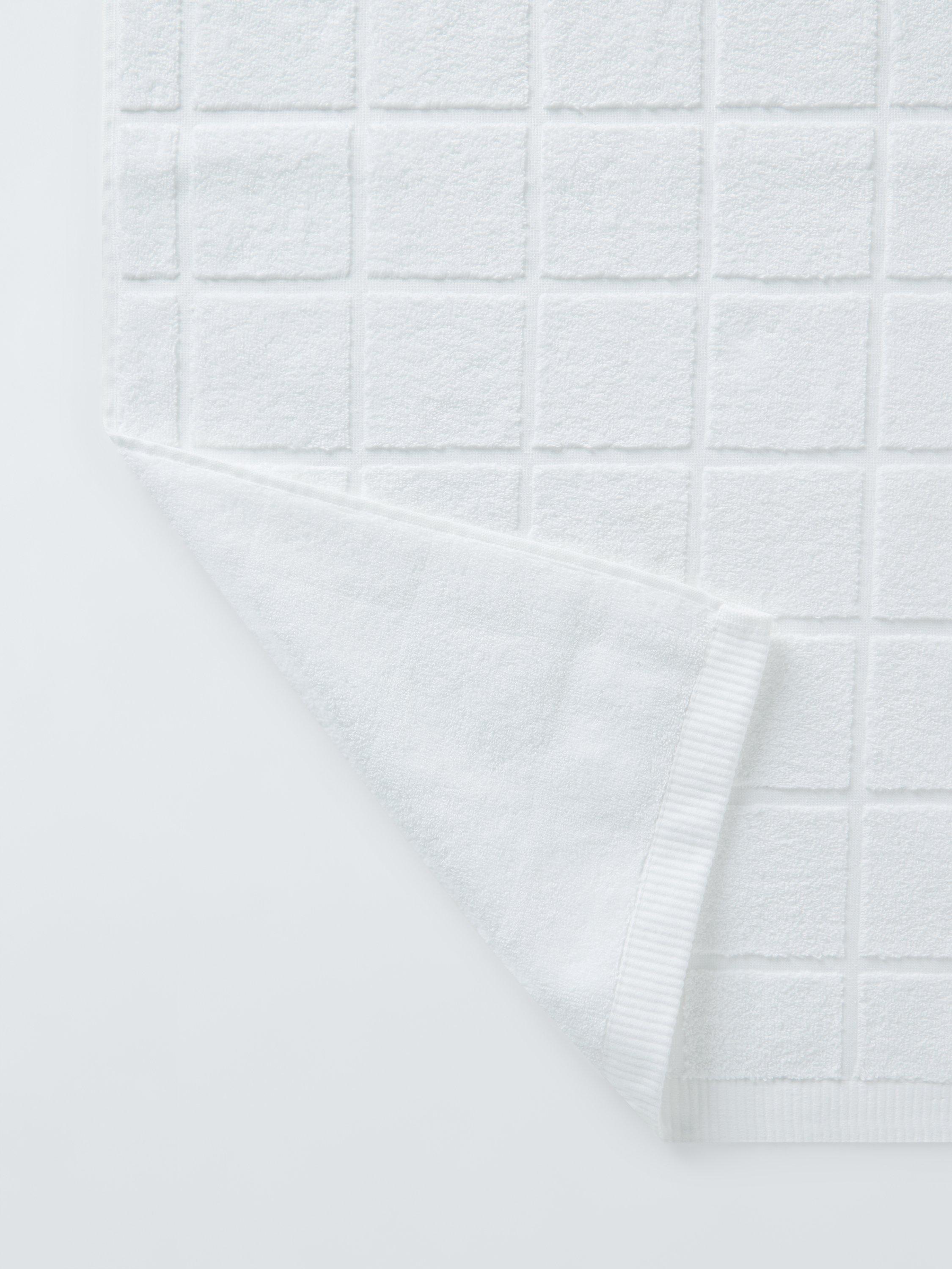 Plain-coloured towels with soft, looped pile squares on one side to change up your bathroom style.